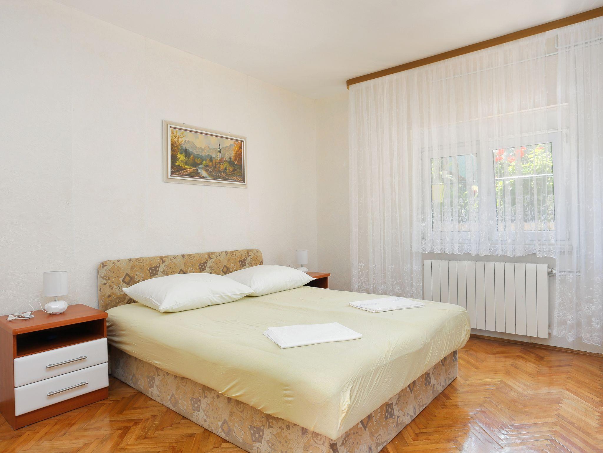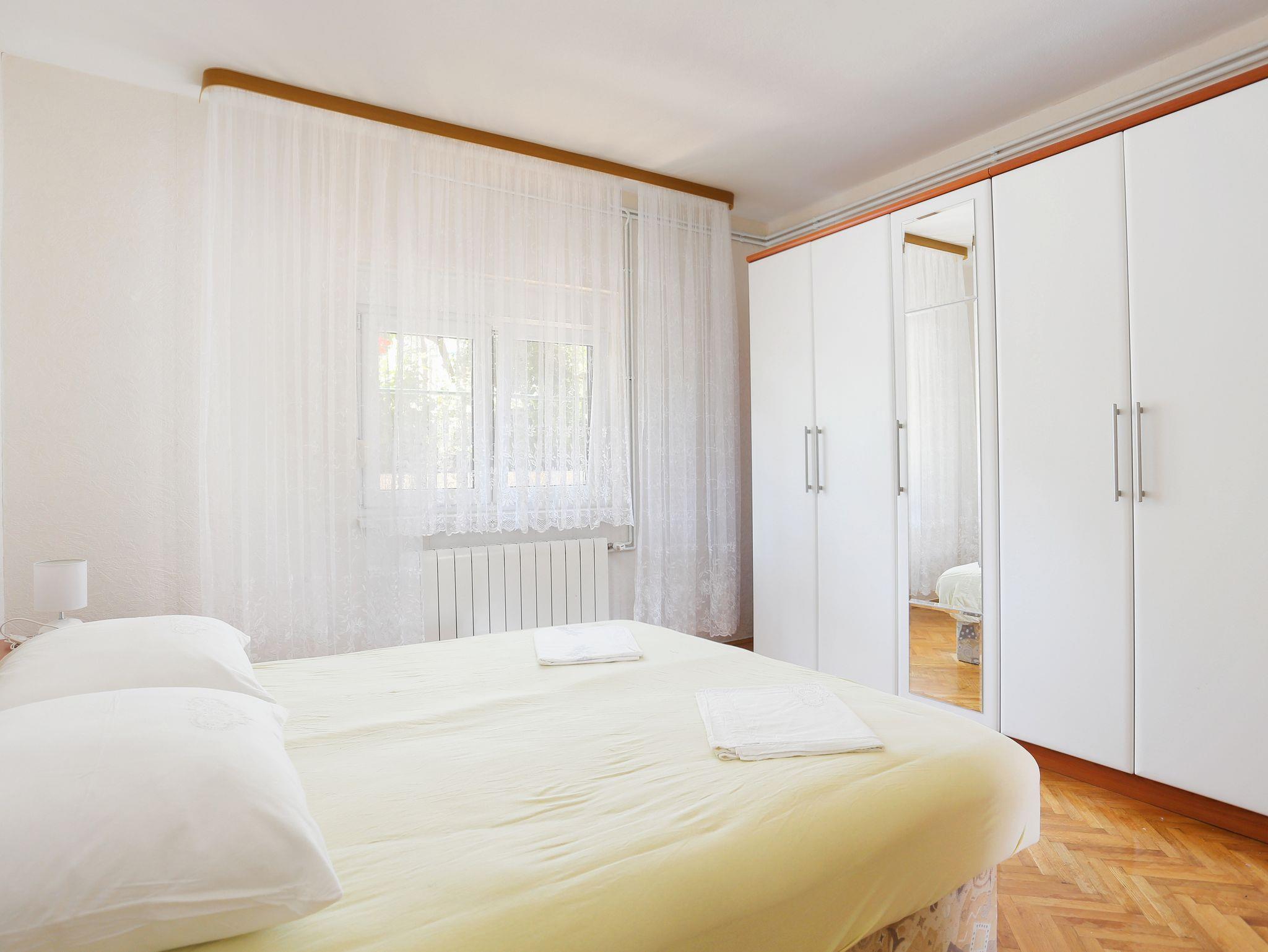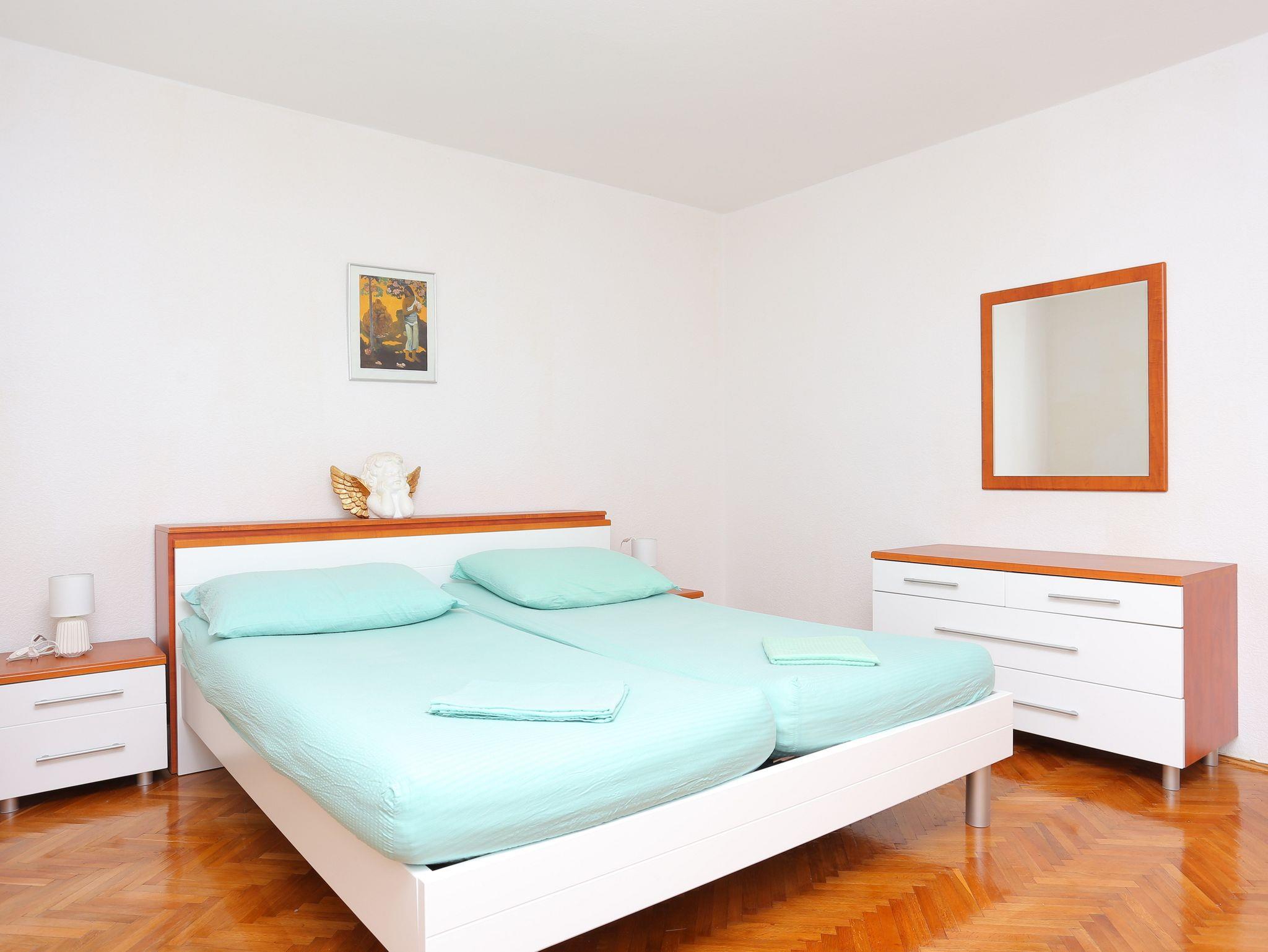 Ferienwohnung bietet Platz für 6 Gäste. Die Betten sind in Schlafzimmern, die es 2 gibt, und in Wohnzimmer, innerhalb einer Gesamtfläche von 92m2, angeordnet. Die Gäste haben einen eigenen Balkon zur Verfügung, auf der sie in warmen Sommernächten genießen können. Das Apartment bietet Meerblick. Es ist erlaubt, Speisen auf dem Gemeinschafts-Grill vorzubereiten. In der Unterkunftseinheit besteht die Möglichkeit des Mitbringens von Haustieren gegen Aufpreis. IM PREIS INBEGRIFFEN: Kurtaxe, Endreinigung, Parkplatz, Internet, Bügeleisen, Bügelbrett, Föhn. VERBINDLICHE ZUSÄTZLICHE KOSTEN: Aufzahlung für Kurzaufenthalte (prozentualer Zuschlag pro Nächtigungsanzahl: 30% - 1, 20% - 2, 10% - 3). UNVERBINDLICHE ZUSÄTZLICHE KOSTEN: Klimatisierung (10,00 € pro Nacht), Haustiere (10,00 € pro Nacht). Die Verfügbarkeit zusätzlicher Dienstleistungen in Ihrem reservierten Termin und die Preise derselben (falls nicht aufgeführt) müssen im Voraus überprüft werden. Zusätzliche Dienstleistungen die in der Zahlungsaufforderung nicht aufgeführt sind werden direkt beim Vermieter bezahlt, angenommen der Gast nutzt auch diese. Ermäßigung auf den Grundpreis: Gratistag 14=13 (bei einem Aufenthalt von 14 Tagen oder mehr erhalten Sie einen Gratistag für den Aufenthalt bis 31.12.26).