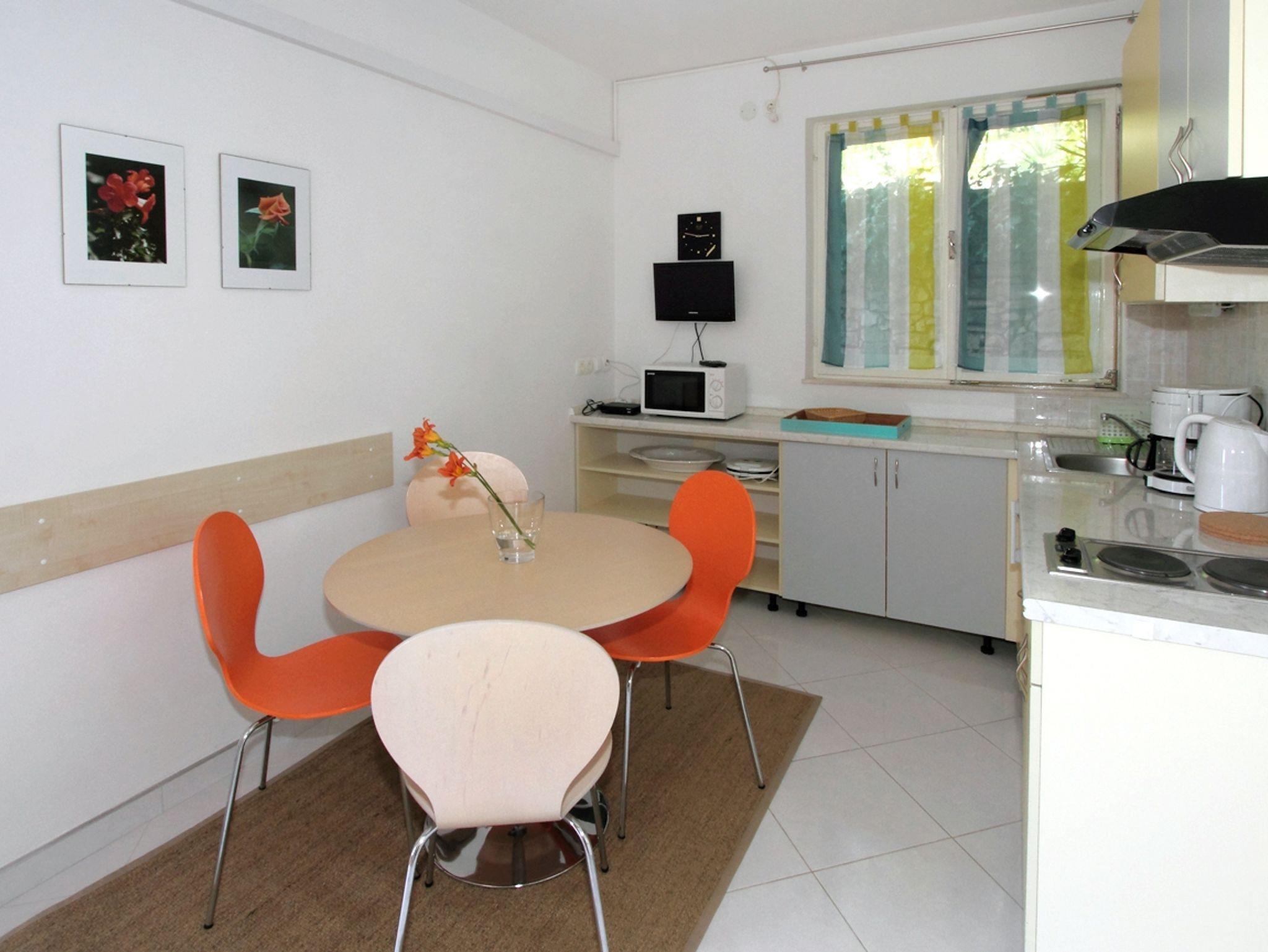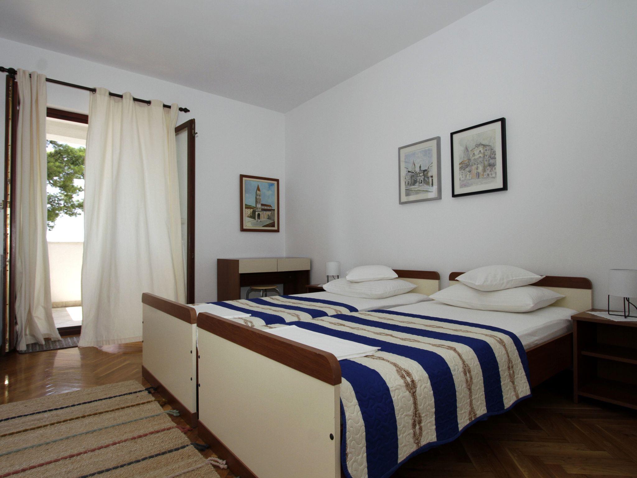 Ferienwohnung bietet Platz für 4 Gäste. Die Betten sind in Schlafzimmern, die es 2 gibt, innerhalb einer Gesamtfläche von 40m2, angeordnet. Die Gäste haben eine eigene Terrasse zur Verfügung, auf der sie in warmen Sommernächten genießen können. Das Apartment bietet Meerblick. IM PREIS INBEGRIFFEN: Kurtaxe, Endreinigung, Klimatisierung, Parkplatz, Internet, Wäschewaschen, Kinderbett, Bügeleisen, Bügelbrett, Föhn. VERBINDLICHE ZUSÄTZLICHE KOSTEN: Aufzahlung für Kurzaufenthalte (prozentualer Zuschlag pro Nächtigungsanzahl: 30% - 1, 20% - 2, 10% - 3). Die Verfügbarkeit zusätzlicher Dienstleistungen in Ihrem reservierten Termin und die Preise derselben (falls nicht aufgeführt) müssen im Voraus überprüft werden. Zusätzliche Dienstleistungen die in der Zahlungsaufforderung nicht aufgeführt sind werden direkt beim Vermieter bezahlt, angenommen der Gast nutzt auch diese. Ermäßigung auf den Grundpreis: Gratistag 14=13 (bei einem Aufenthalt von 14 Tagen oder mehr erhalten Sie einen Gratistag für den Aufenthalt bis 31.12.26).