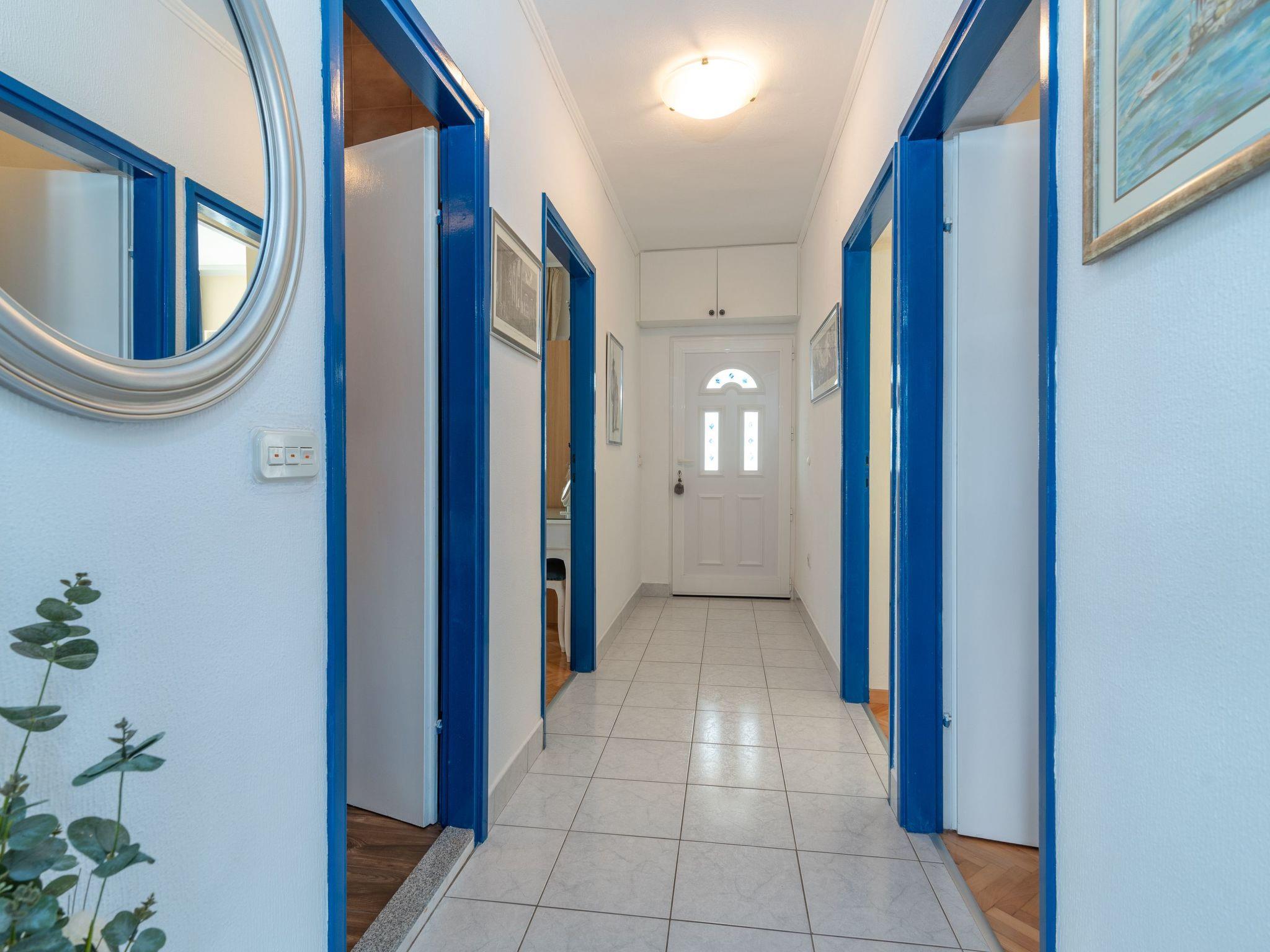 The town centre of Trogir is 4km away and the nearest airport (Split-Resnik) is about 12km away. The apartment is to the south-west of Trogir and Mastrinka on Ciovo, and to the north-east of Slatine. The Arbanija region is known for its beautiful beaches, its forested coasts and many little bays. The nearest motorway access (Prgomet) is 25km away.