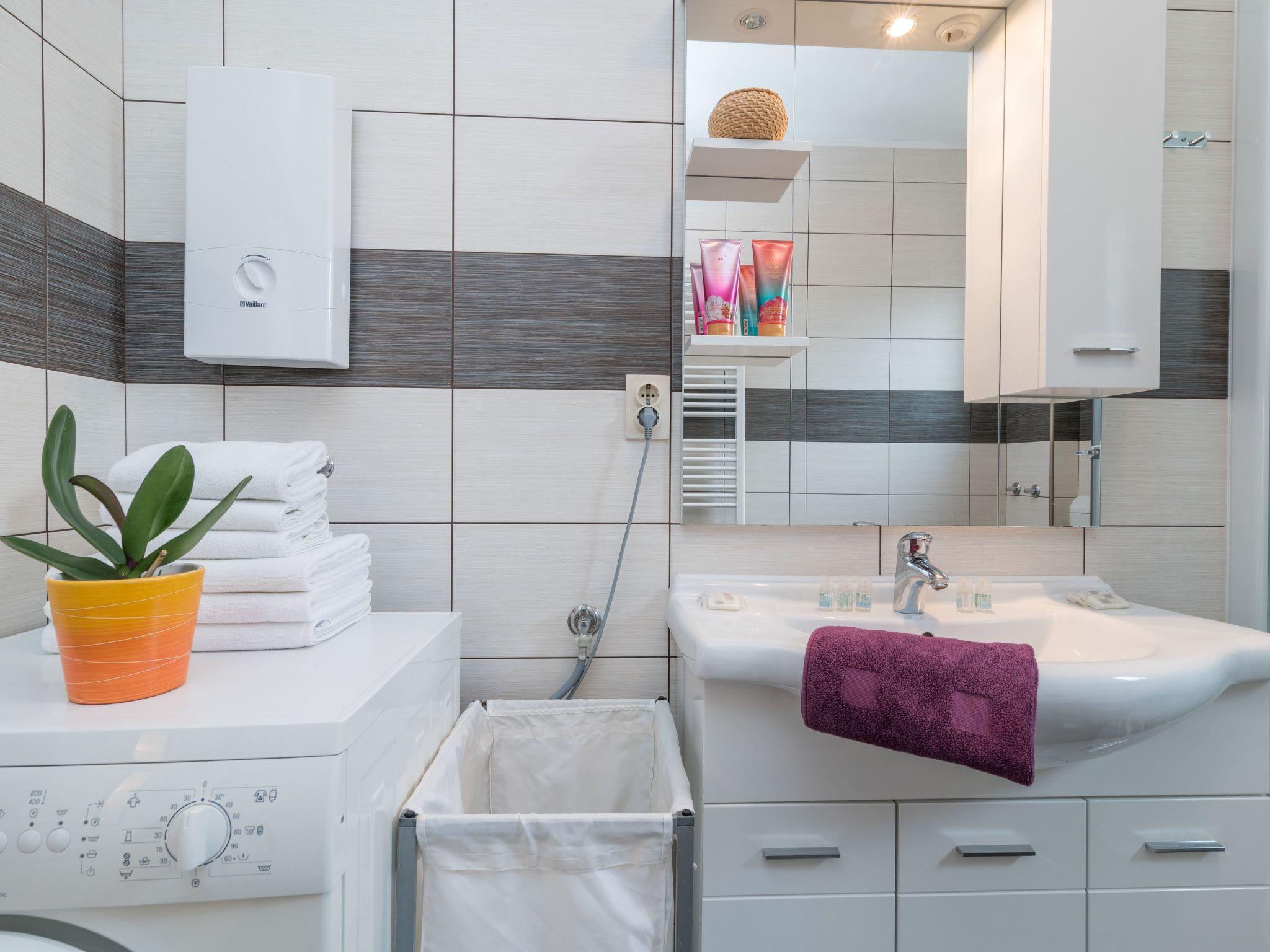 Bed linen, pillows, towels and toiletries are included in the price. Travel beds for babies and high chairs are available free of charge. There is a fully equipped shared laundry room on the ground floor of the building and its use is also free of charge. The building is completely covered with free wireless Internet.