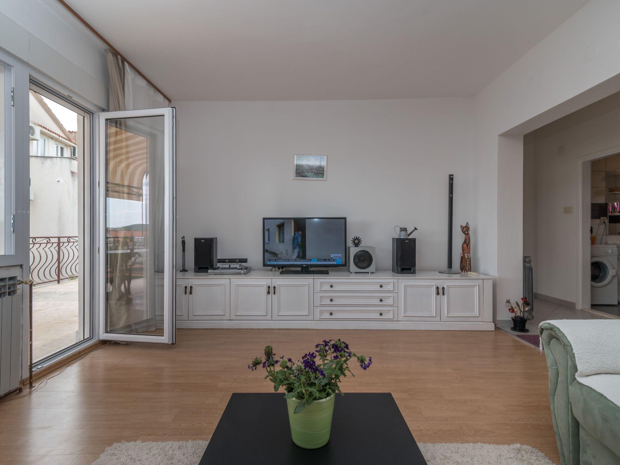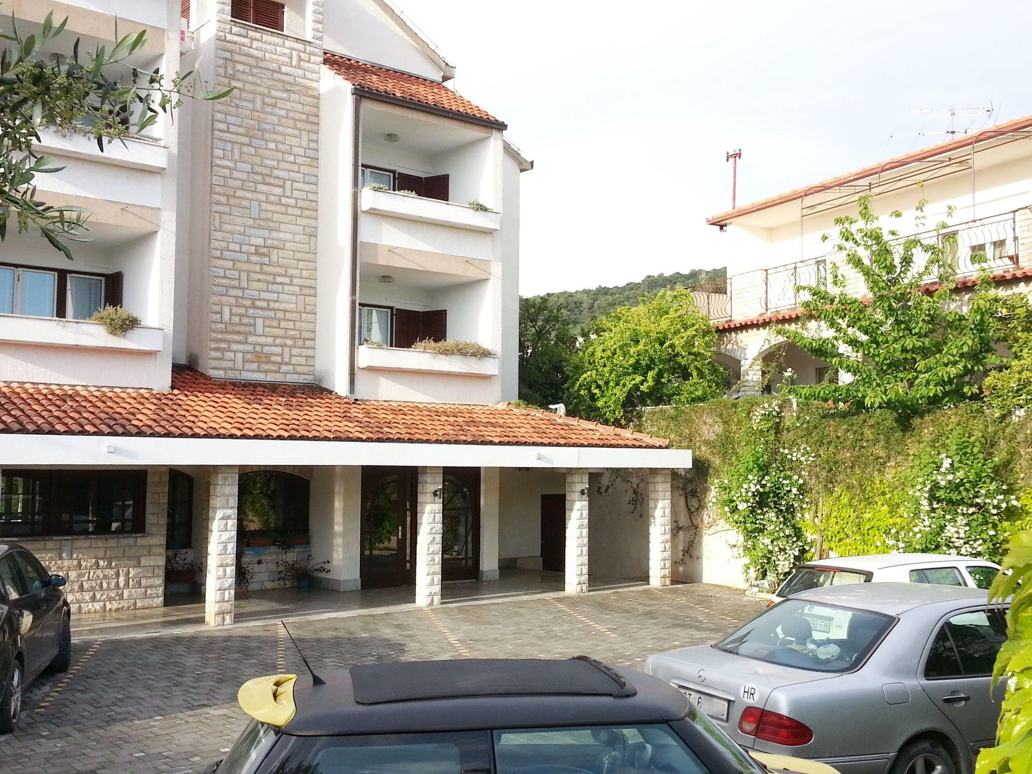 This holiday apartment is located in the Dalmatian coastal town of Okrug Gornji, only approximately a two-minute walk from the beach, shops, restaurants, a bakery, etc.