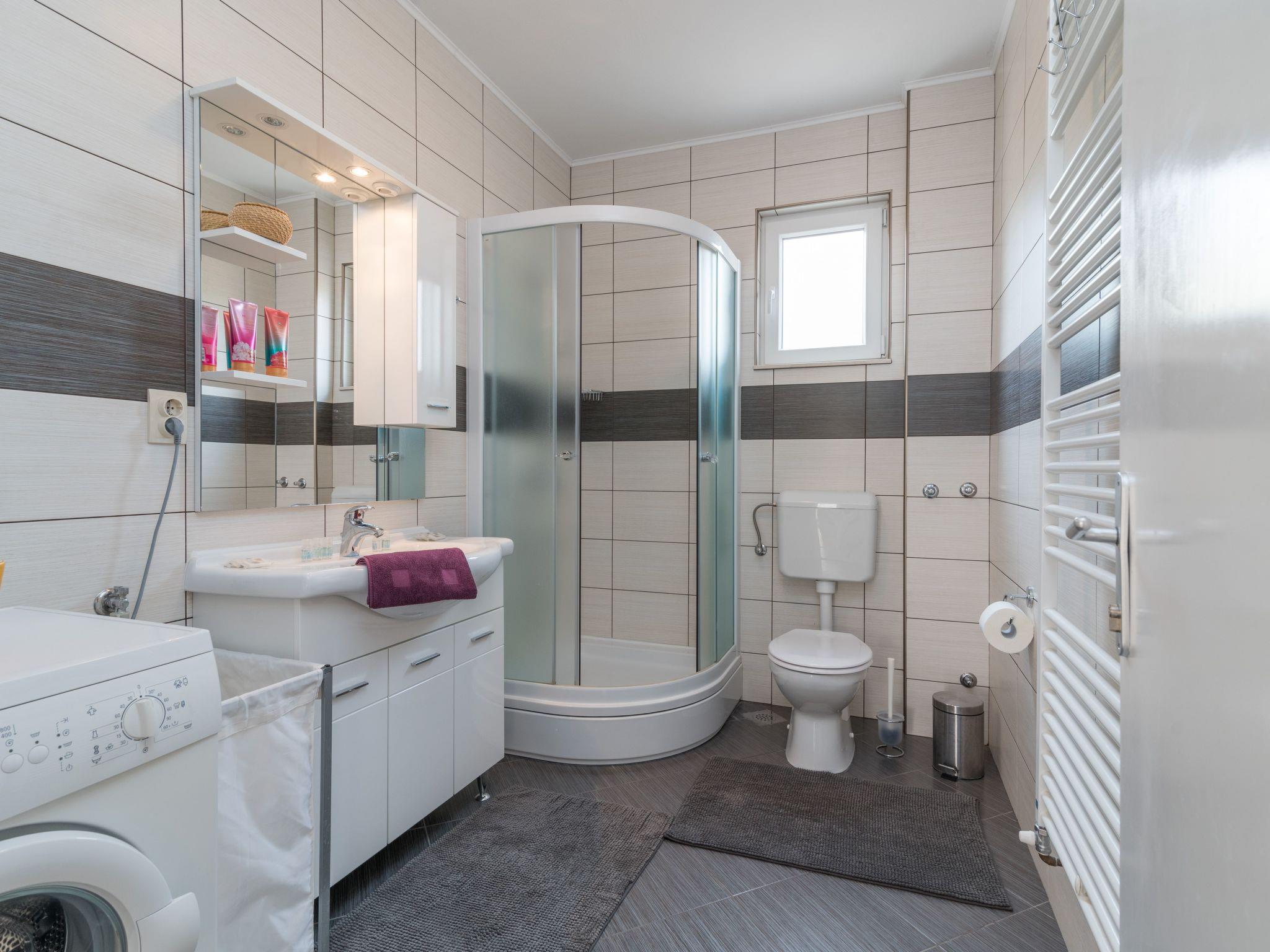 The main beach is 2 min walking distance from the property. Over there you can find many shops, restaurants, ATM's, car and bike rental services, water sports, etc. The beach is accessible via a ramp so that, e.g. prams and handcarts can be taken along. The town centre is approximately 2 km away and can be also reached by walking (20 minutes). There is also a taxi boat that stops just 70 meters away from the property that will take you to Trogir centre. Split is 30 km away. The nearest airport is Split Airport, 8 km from the property.