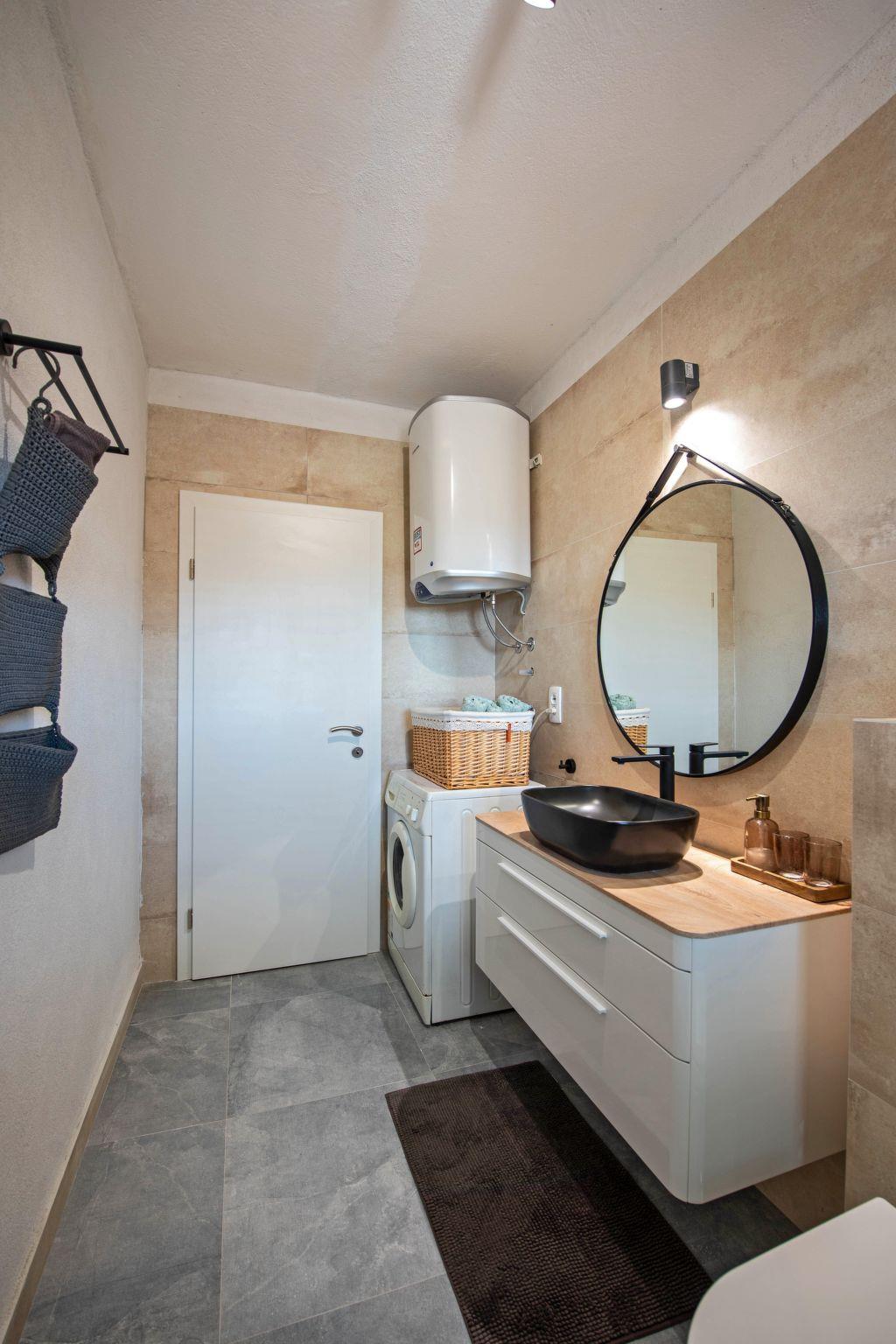 Your holiday apartment occupies the first floor of a three-storey family house and provides a living and dining room, a fully-equipped kitchen, two bedrooms and a bathroom. The air-conditioned living room has a comfortable sofa, satellite TV with a USB port, a radio and a dining table with four chairs. Next to it the built-in kitchen comprises a four-zone gas stove, an electric oven, a fridge with a freezer compartment, a microwave, a toaster and even a washing machine. One of the two bedrooms has a 160 x 200cm double bed, while the second has two beds measuring 90 x 190cm. Both bedrooms have bedside tables, reading lamps and cupboards with ample storage space for your clothing and luggage. The sofa in the living room can be converted into an additional double bed (180 x 190cm). The daylight bathroom has a bath with a shower attachment, a washbasin with a wall mirror, a hairdryer, a toilet and a washing machine. There is a free and reliable wireless Internet connection in the apartment.