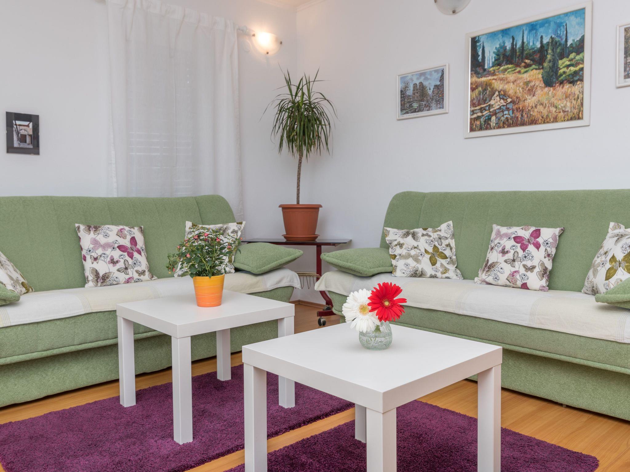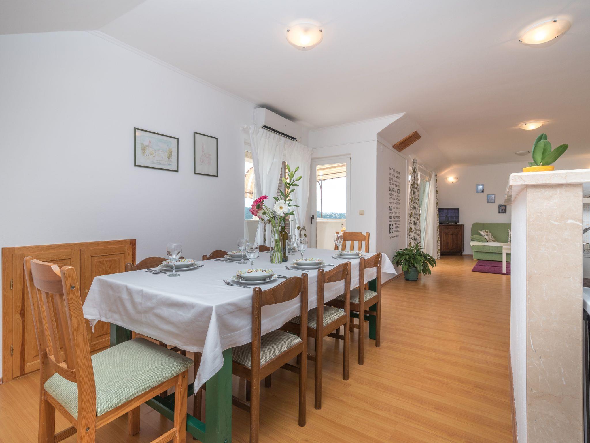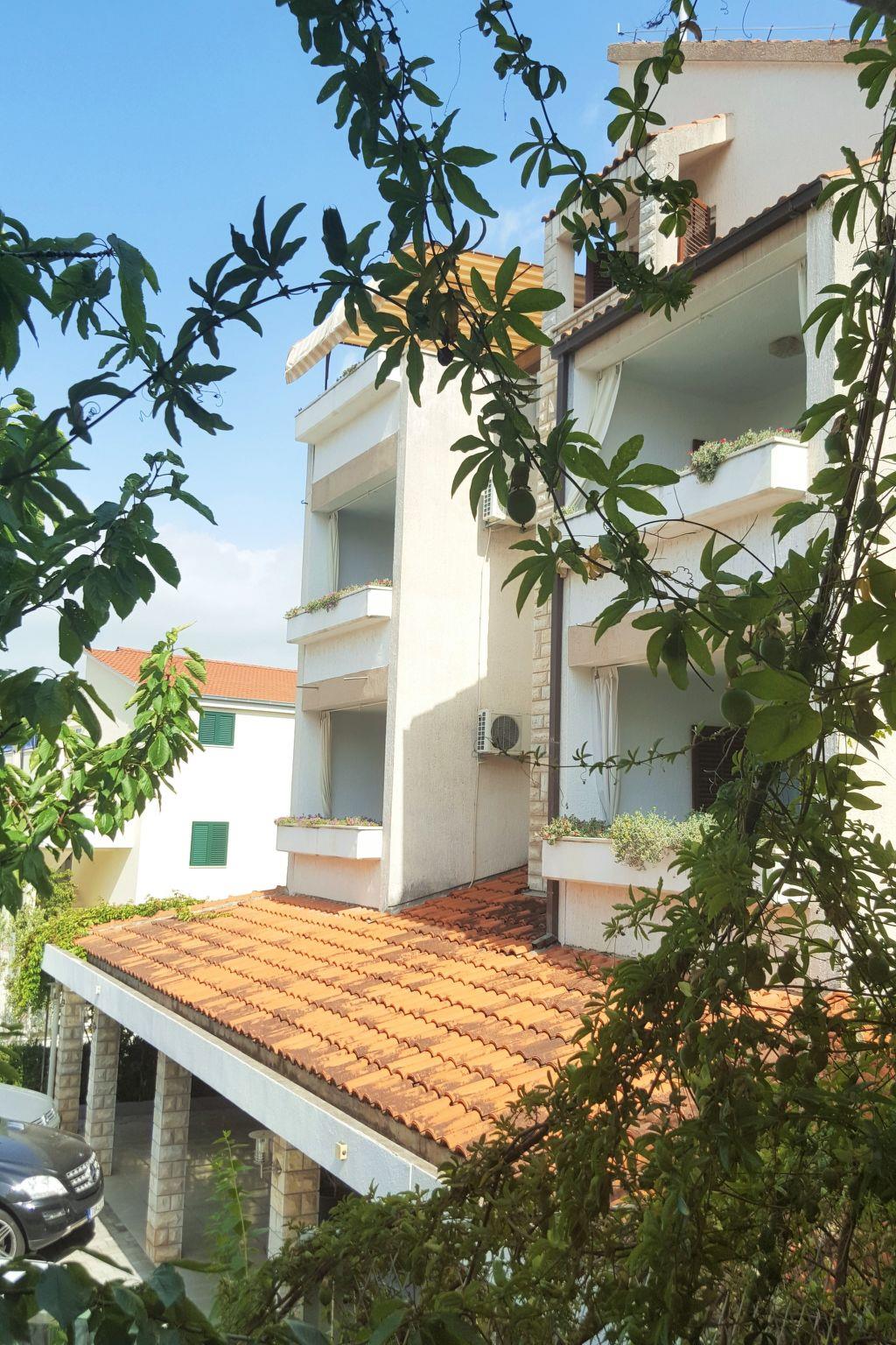 This holiday apartment is located in the Dalmatian coastal town of Okrug Gornji, only approximately a two-minute walk from the beach, shops, restaurants, a bakery, etc.