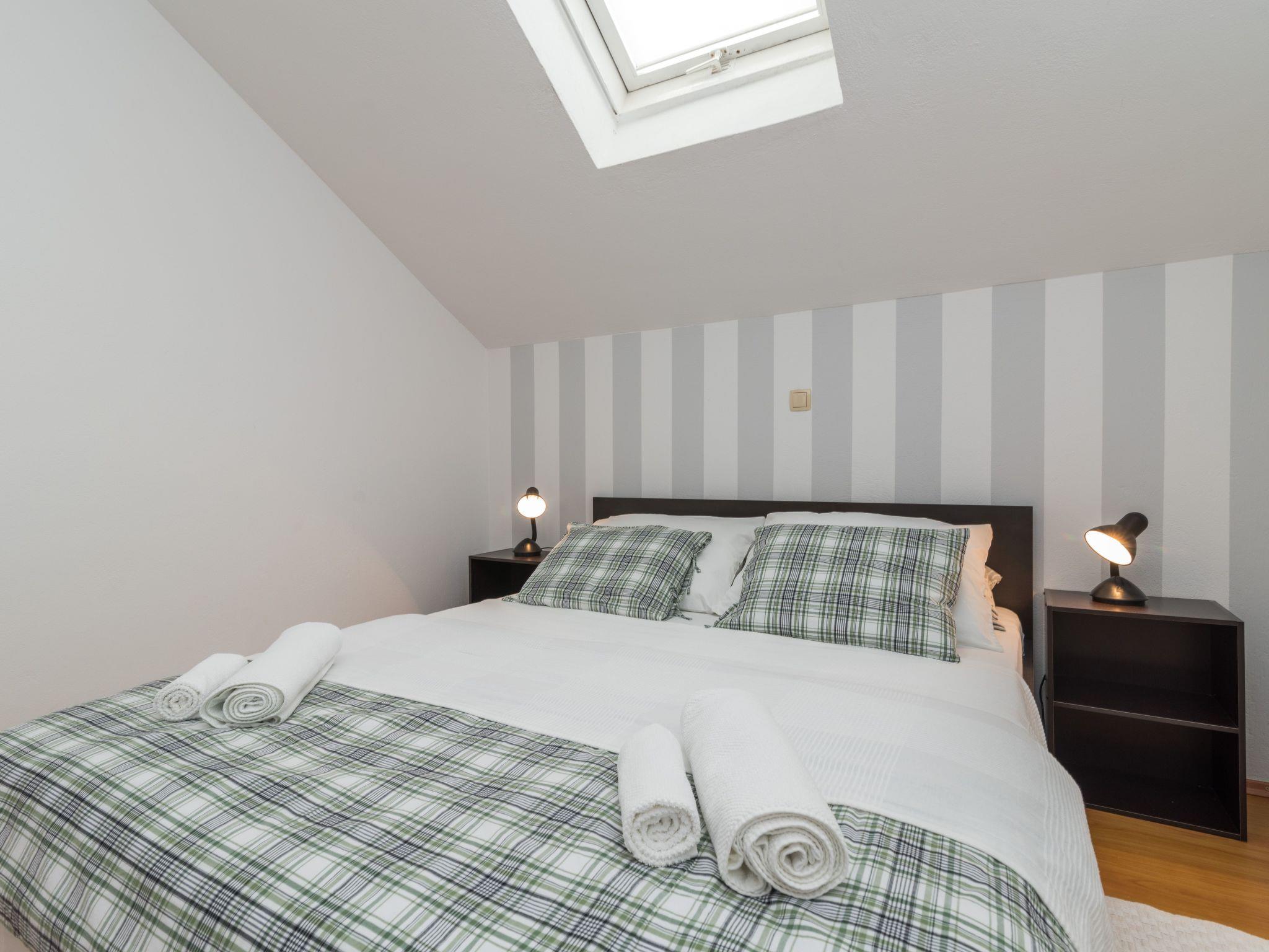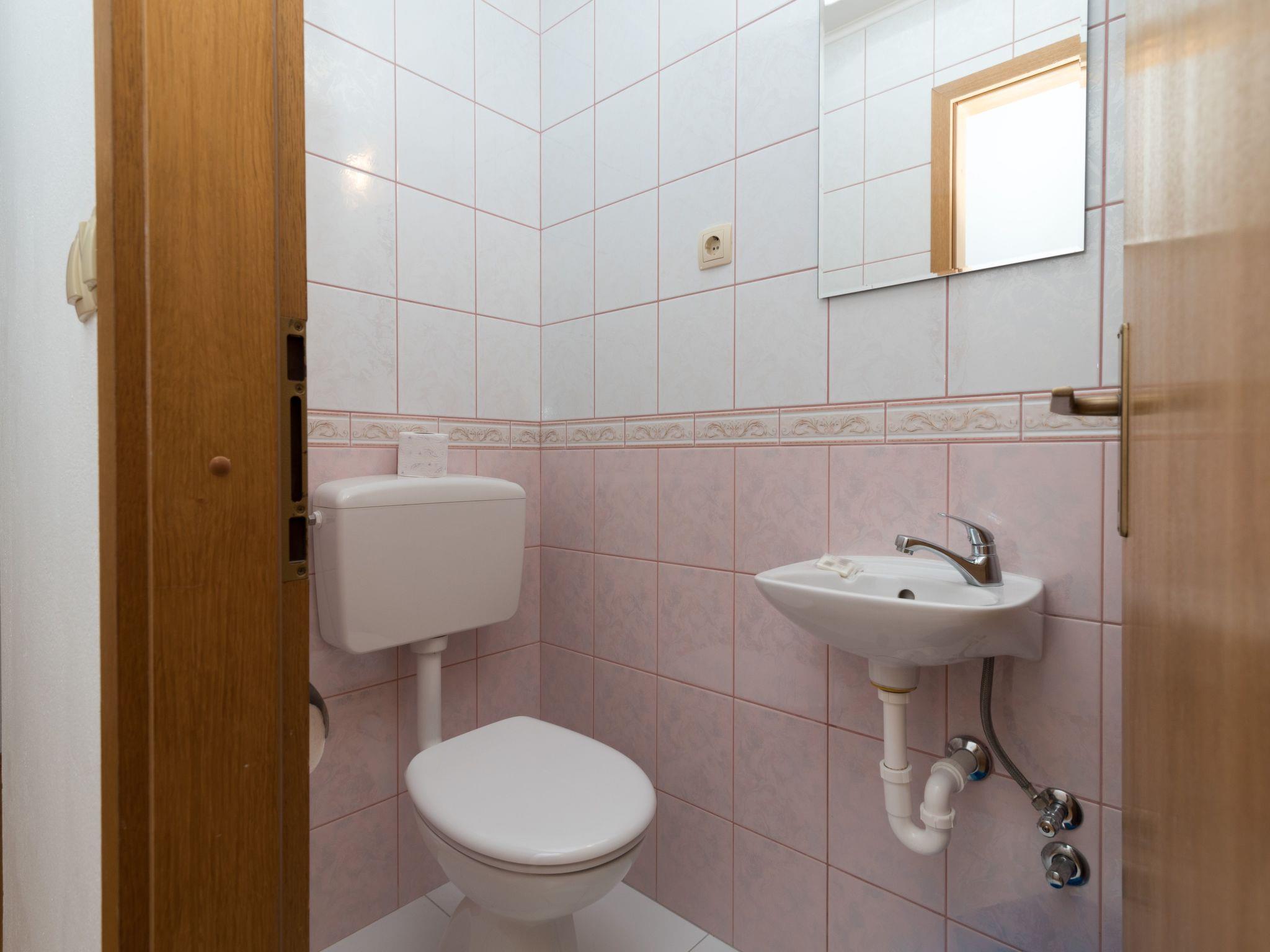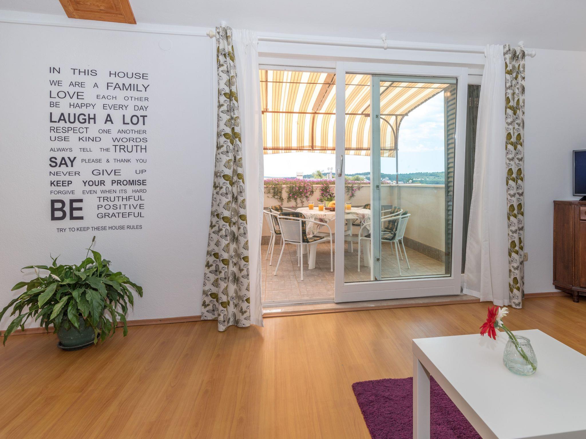 This holiday apartment is located in the Dalmatian coastal town of Okrug Gornji, only approximately a two-minute walk from the beach, shops, restaurants, a bakery, etc.