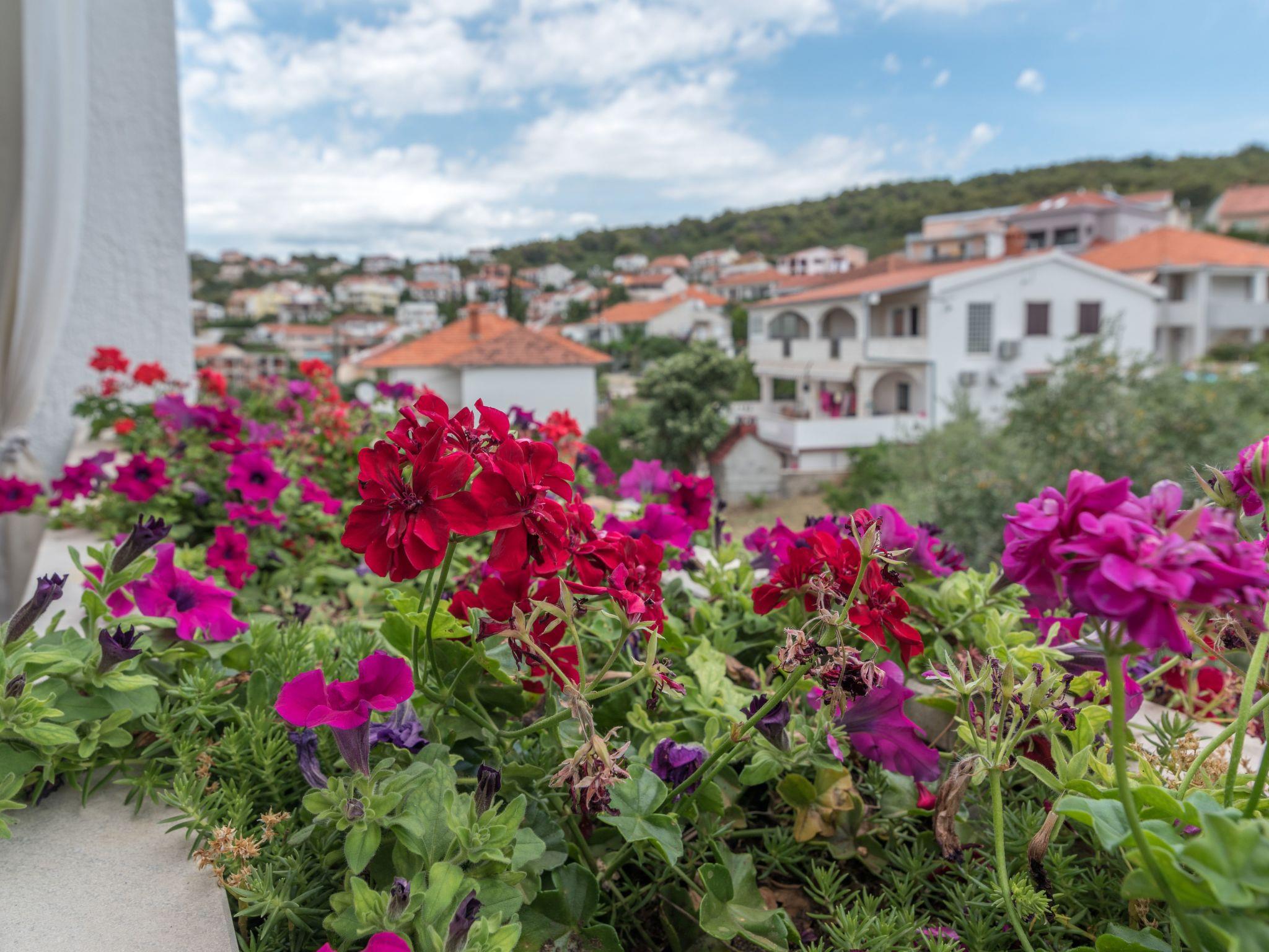 This holiday apartment is located in the Dalmatian coastal town of Okrug Gornji, only approximately a two-minute walk from the beach, shops, restaurants, a bakery, etc.