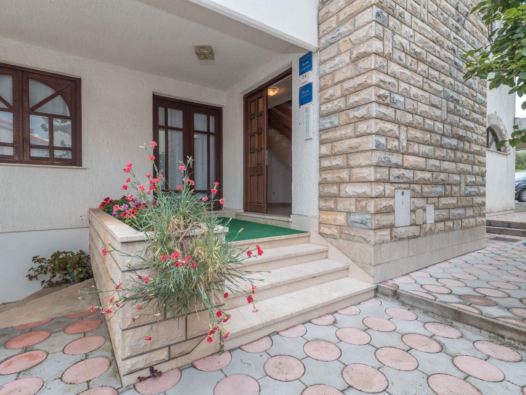Fully equipped two bedroom apartment with a private balcony and a shared garden and sunny terrace This holiday apartment is located in the Dalmatian coastal town of Okrug Gornji, only approximately a two-minute walk from the beach, shops, restaurants, a bakery, etc.