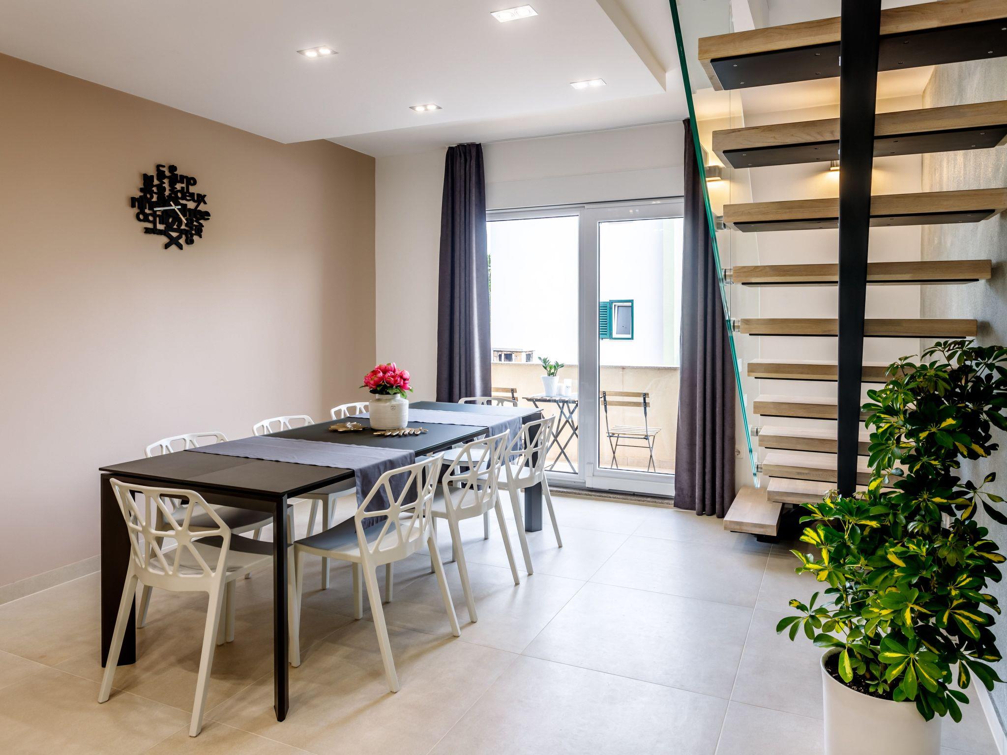 That is the other vertical part. It has also 3 floors but is put in one bigger apartment. It has 2 bathrooms, 4 double bed bedrooms, 1 kitchen with a big dining