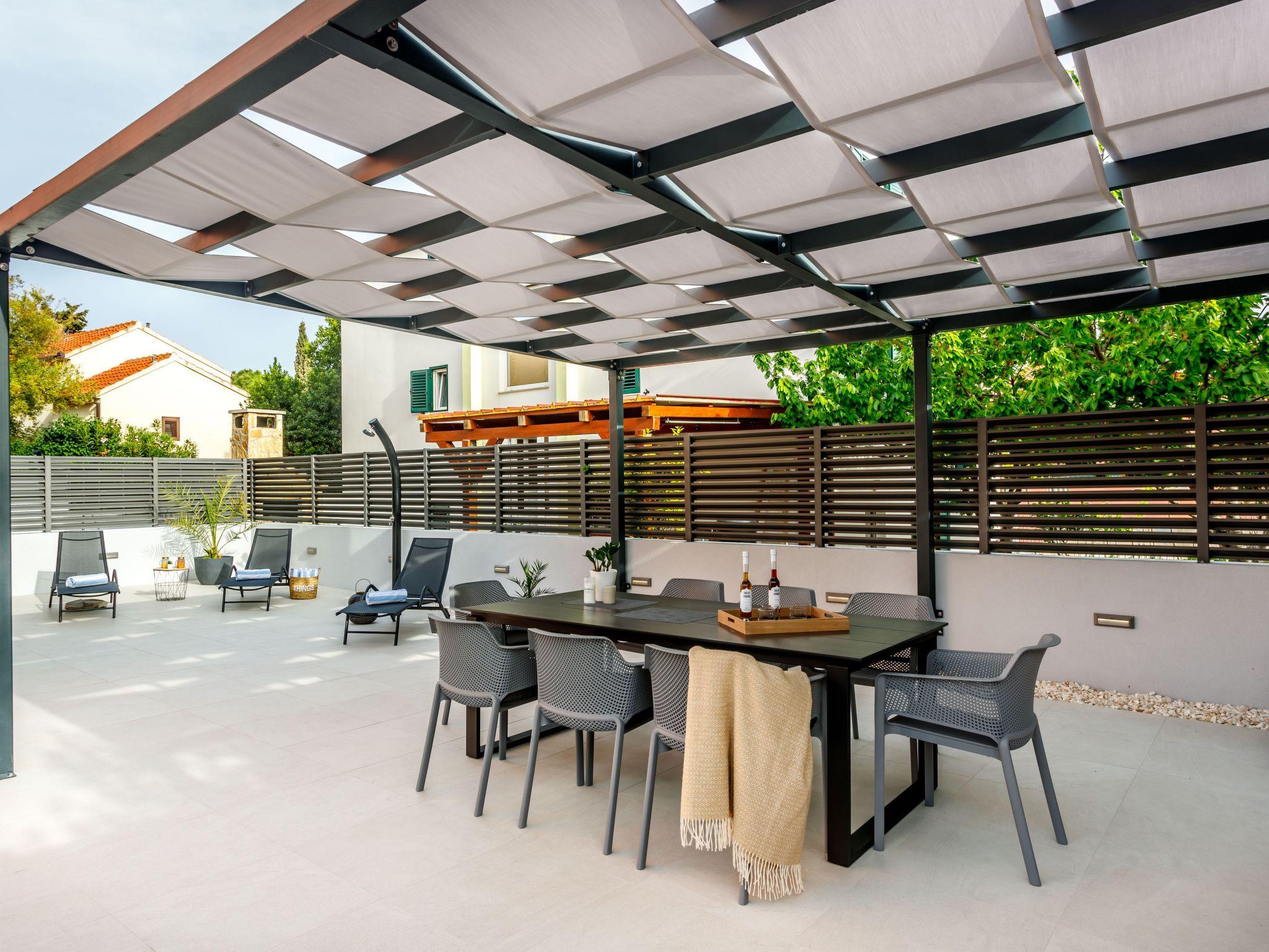Villa Tango is a new, modern and stylish vacation home located in Okrug Gornji on the picturesque island Ciovo. Secluded and conveniently located just steps away from the beach. The entire Villa is at your disposal and fully equipped with 4 bedrooms, kitchen, living room with sofa beds, 2 bathrooms, outdoor patio with grill, Jacuzzi for 6 person and lounge chairs. Pet friendly Villa welcomes families and groups up to 10. Relax and enjoy your vacation at Villa Tango your home away from home!