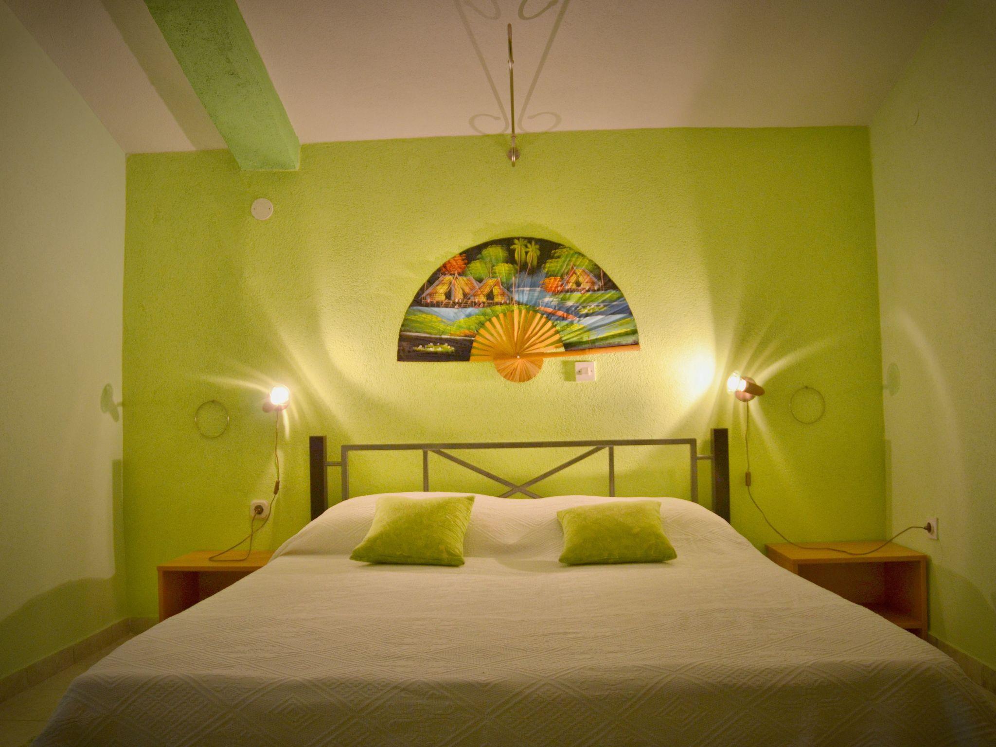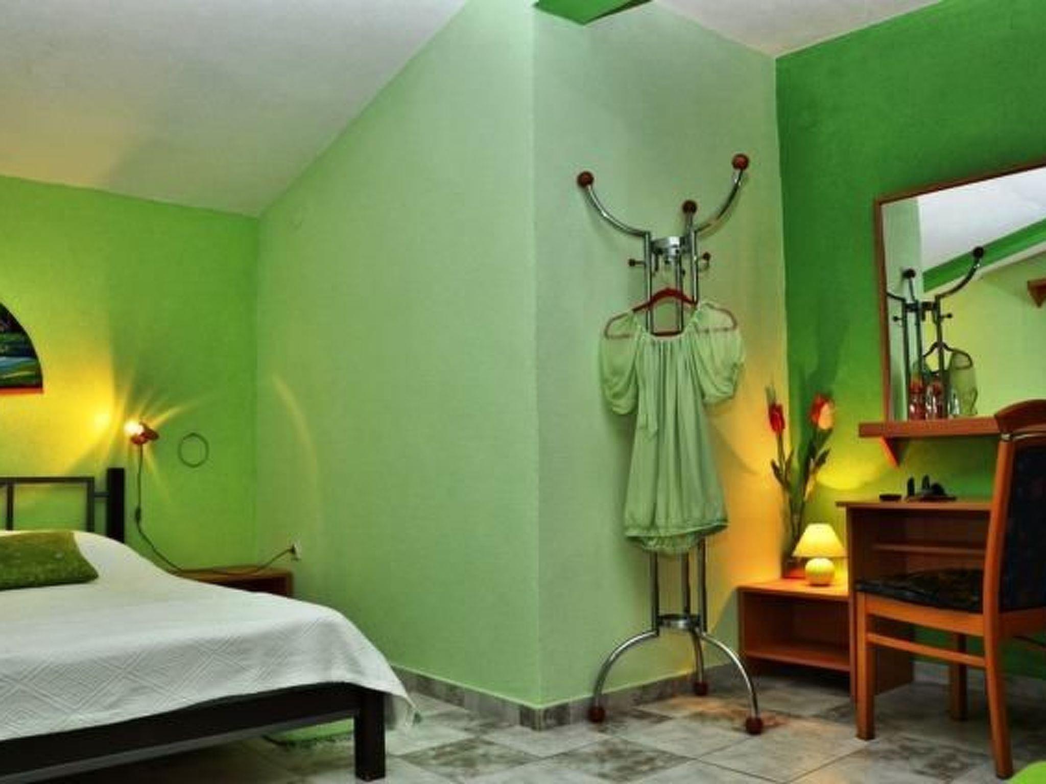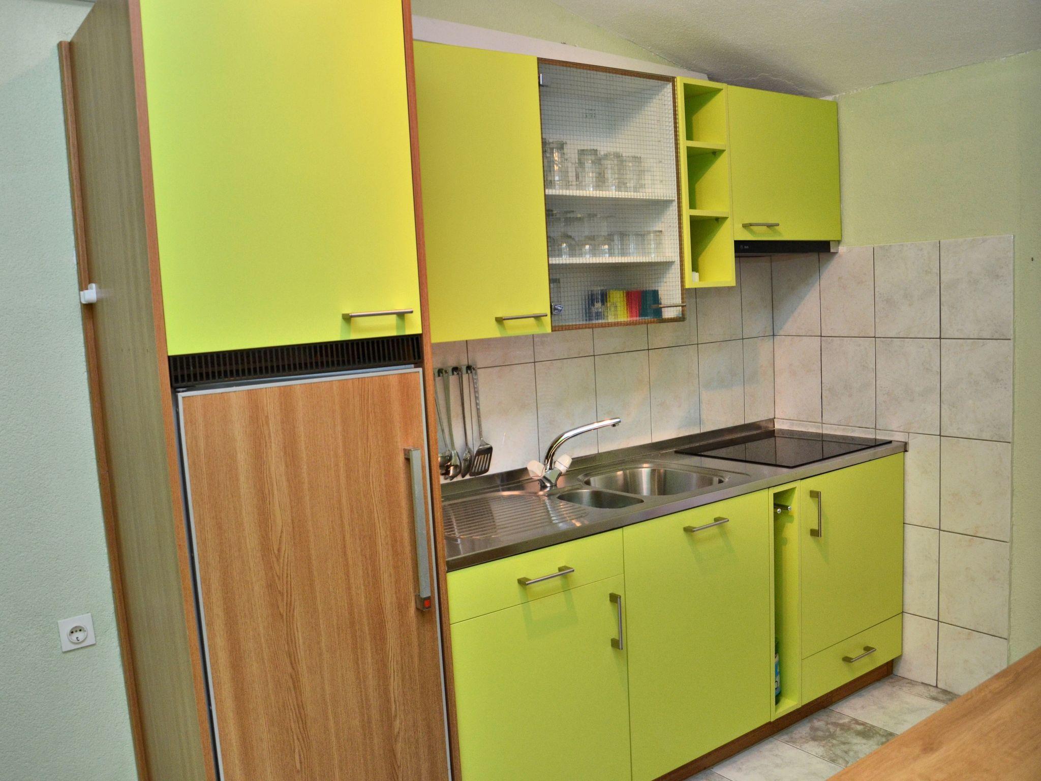 This holiday apartment provides 25m² of living space and is in the basement of the guesthouse. It has a bedroom with a double bed (160 x 200cm), bedside tables and reading lamps, a wardrobe and a dresser. The bedroom provides access to the living and dining room with an integrated kitchen. After a day trip, you can relax on the sofa that can also serve as a bed for a third guest, with satellite TV providing entertainment. The open kitchen enables convenient self-catering with a two-ring hob, a fridge, a coffee machine, a kettle and a toaster. The bathroom is fitted with a shower, a shower curtain, a WC and a washbasin with a wall cupboard and mirror.