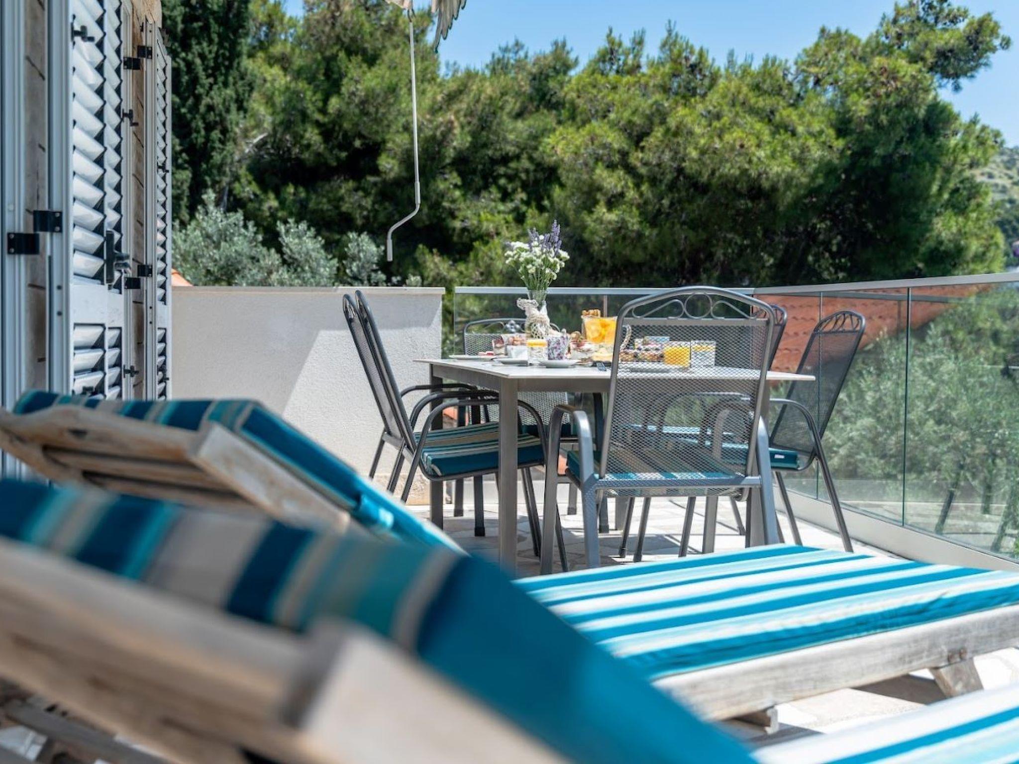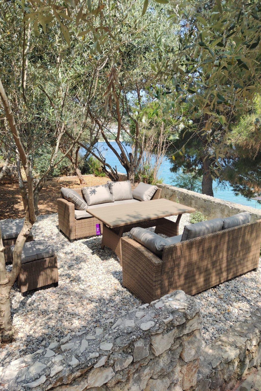The holiday house enjoys a quiet, elevated location on the south side of the island Ciovo, which is connected to the town Trogir. It is by a beautiful beach with a view of the open sea and the islands Brac and Solta.