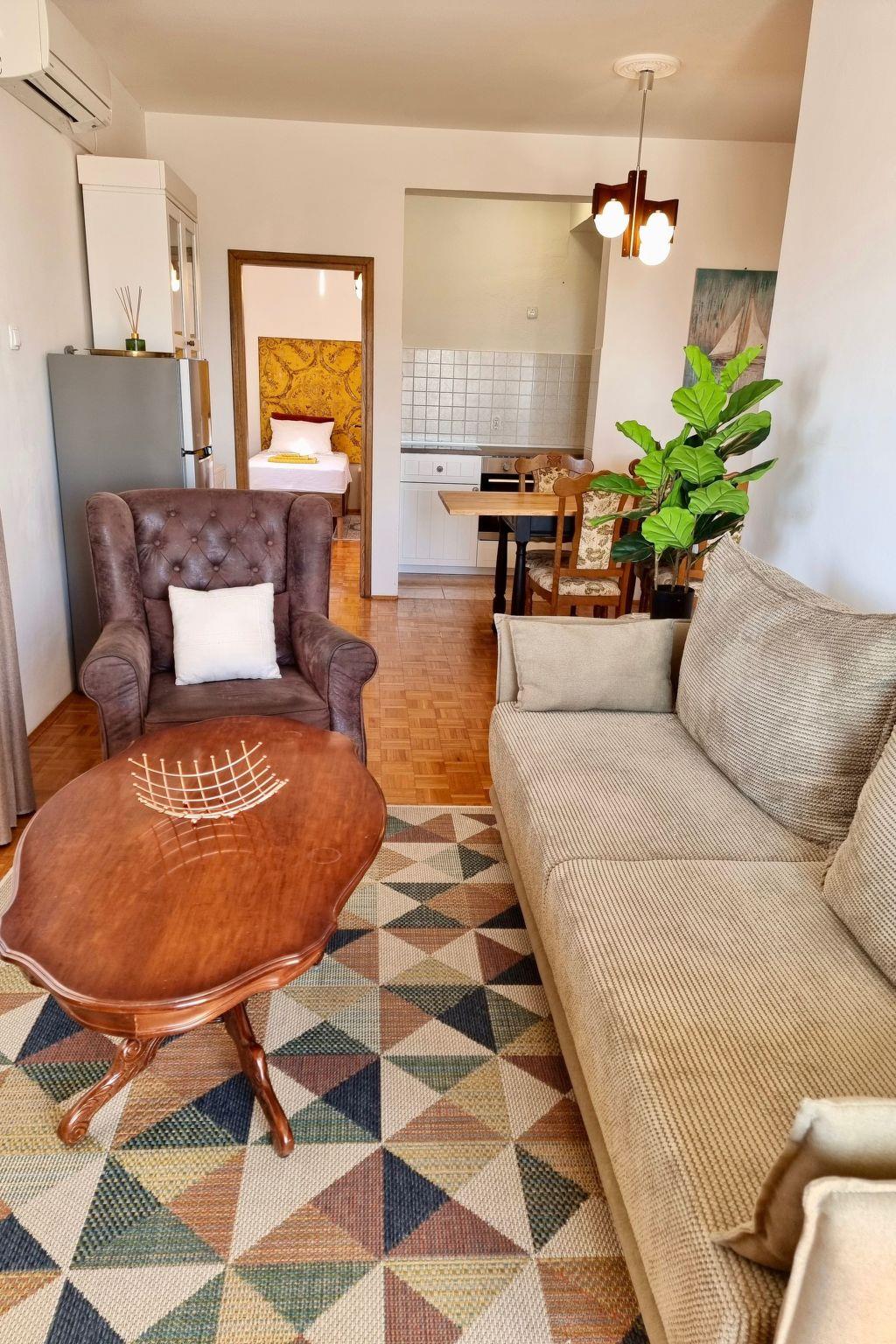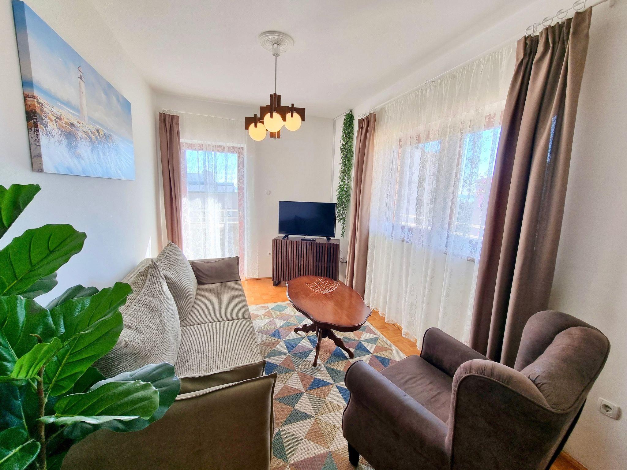 Relax with your entire family at this peaceful place to stay. Spend summer afternoons in the private swimming pool, which is shared only with property guests(a total of seven apartments), or enjoy the sun on the private balcony. The interior of the apartment is furnished with charming décor and is equipped with Wi-Fi, air conditioning, private parking, and a brand-new kitchen. It features two bedrooms with a double bed and a second bedroom with two single beds.