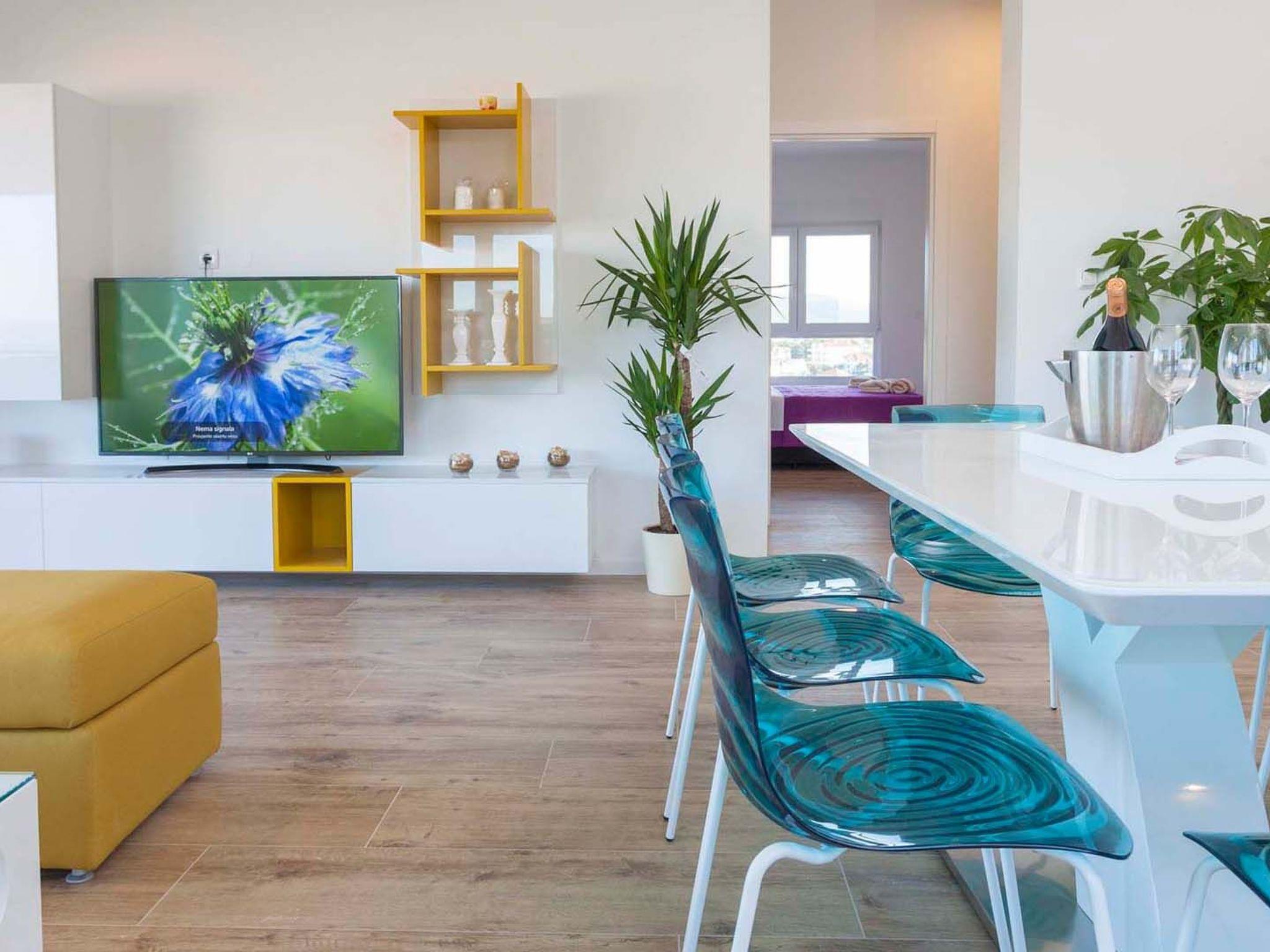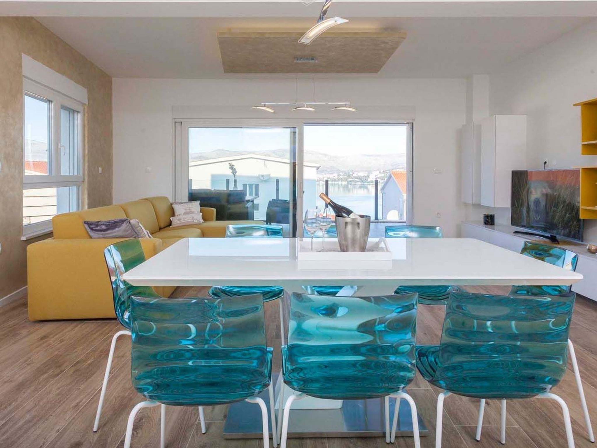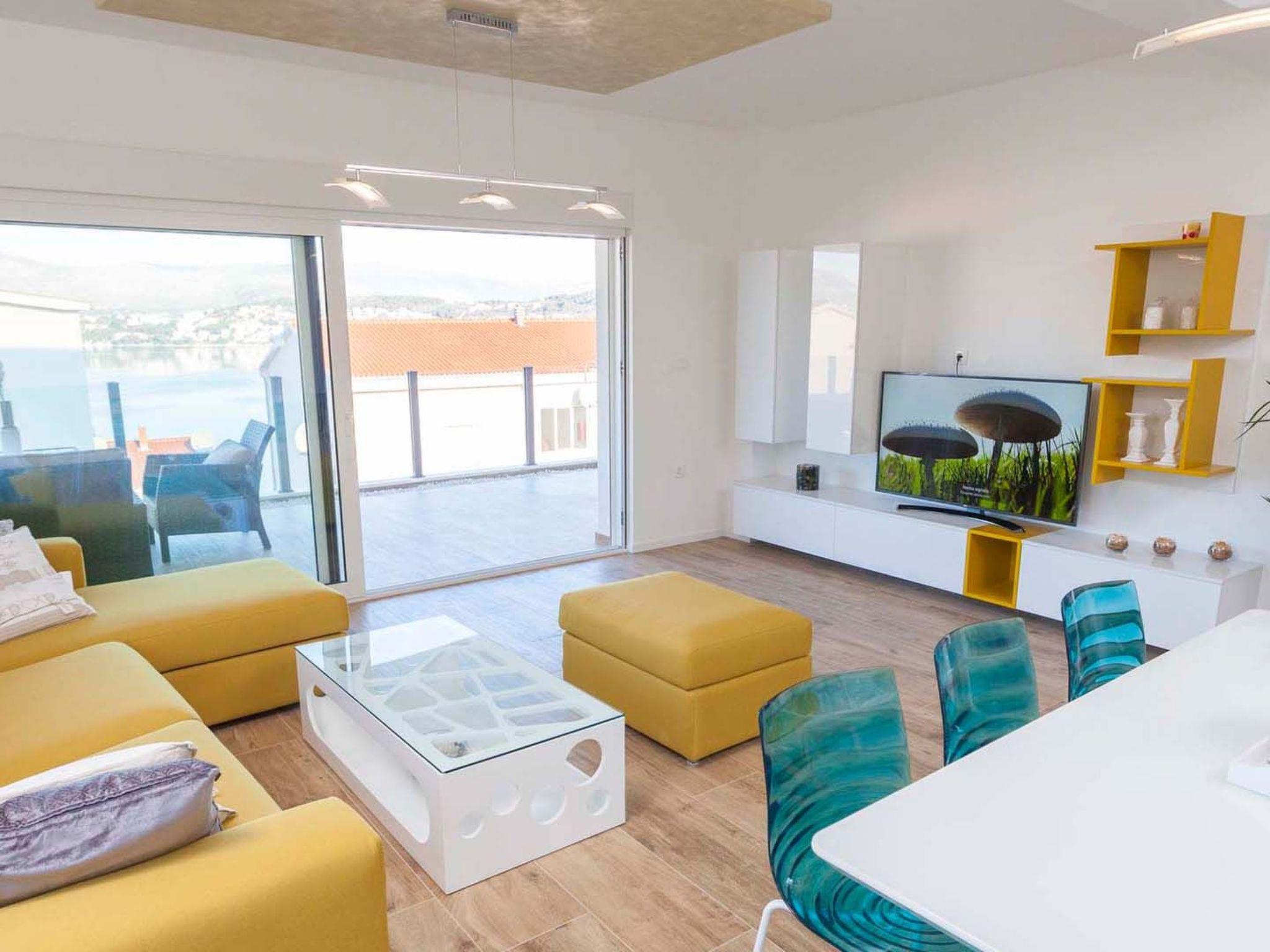 Luxury apartment Solis is a modern and luxurious 4 star holiday apartment situated in a picturesque village of Okrug Gornji on island Ciovo, just 200 m from the sea and the nearest beach and 5 km from the UNESCO protected center of town Trogir.