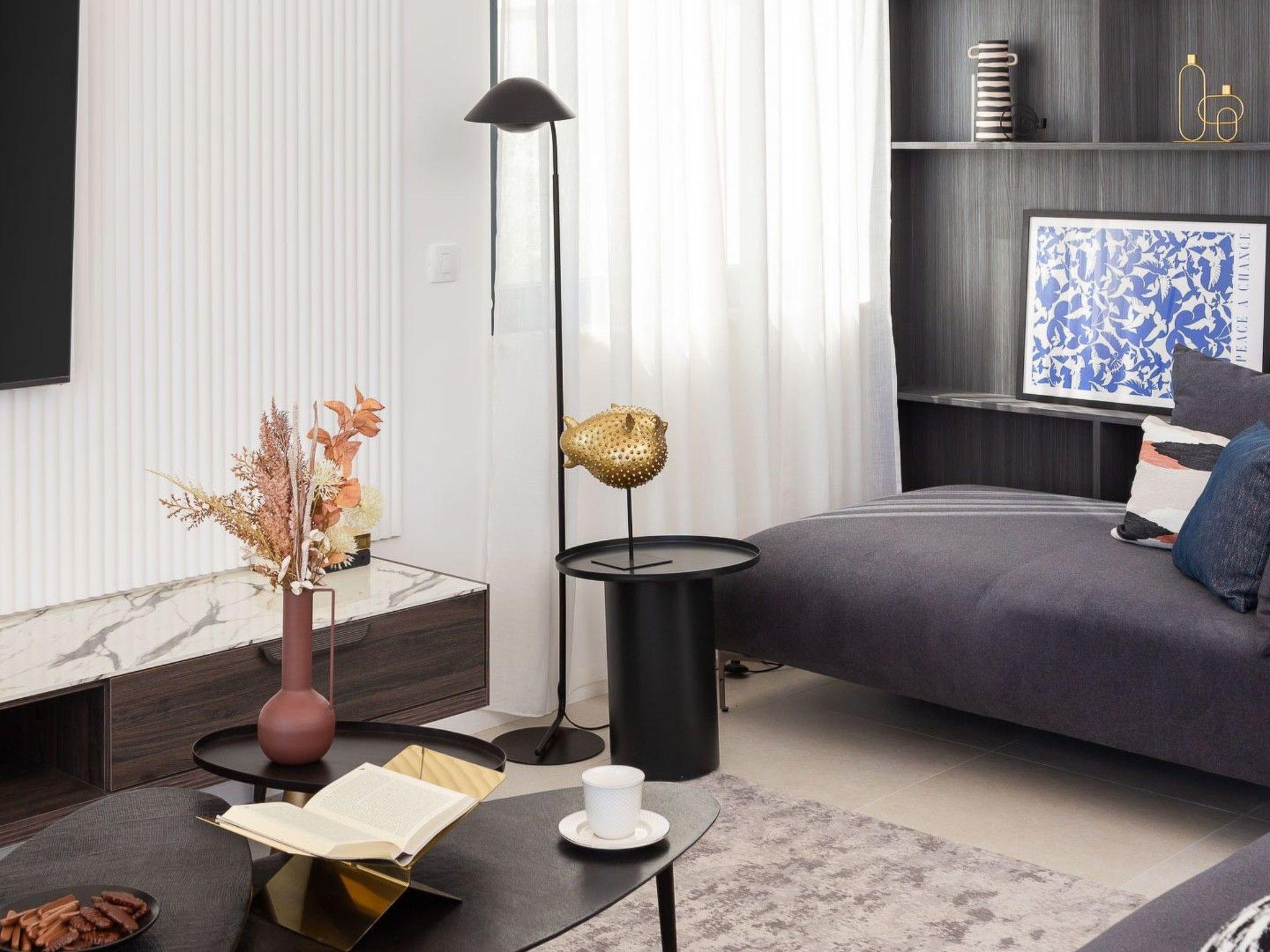 The villa’s charm is in its large outdoor space. Guests can relax by the 30 m2 pool or enjoy the sun on comfy loungers. The outdoor area includes a grill with a dining table for 8 people, perfect for everyday meals.