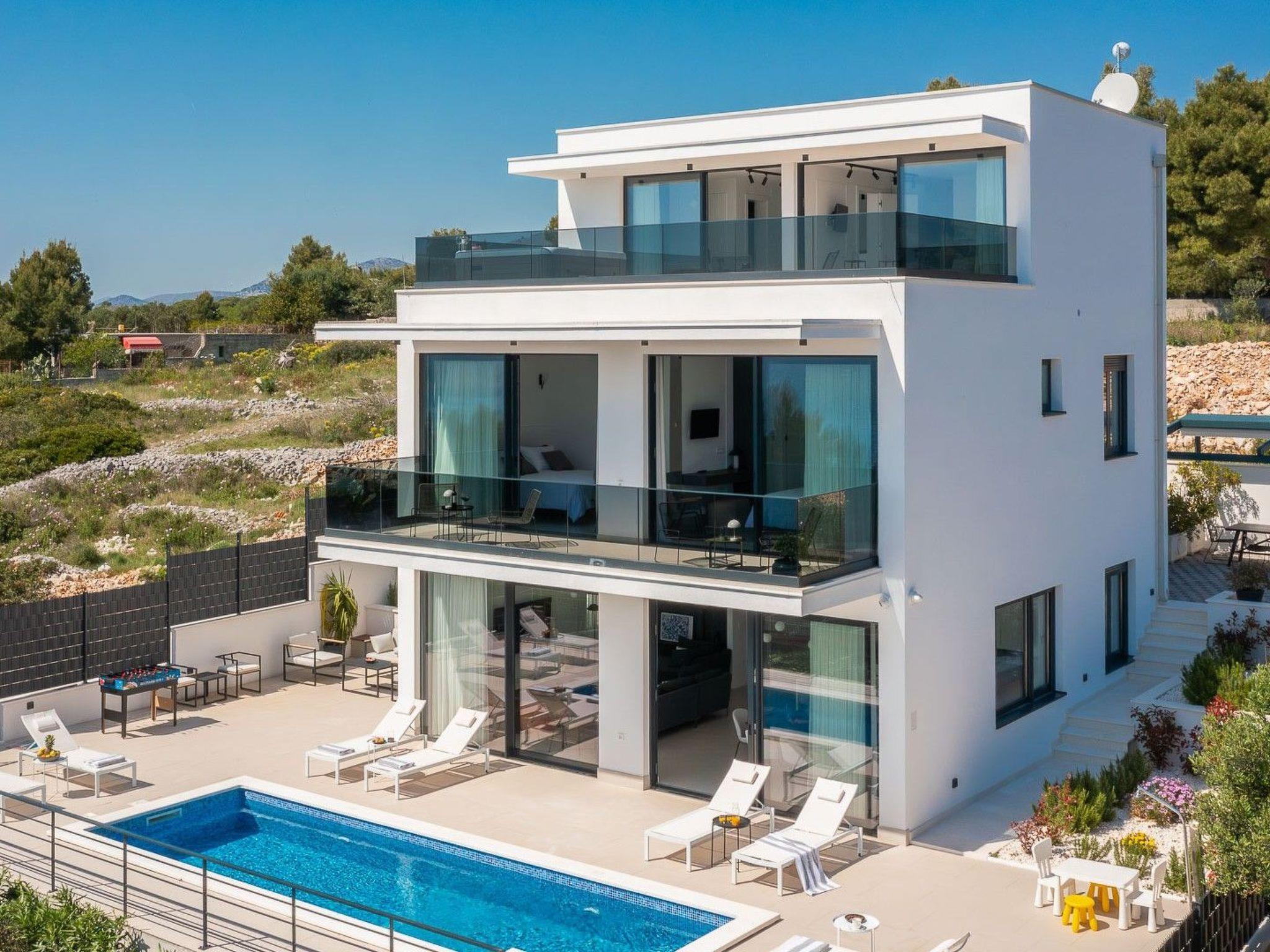 This stylish and contemporary villa, covering a total area of 425 m2 with a living space of 200 m2, sits only 150 m from the Adriatic Sea in a peaceful neighborhood.