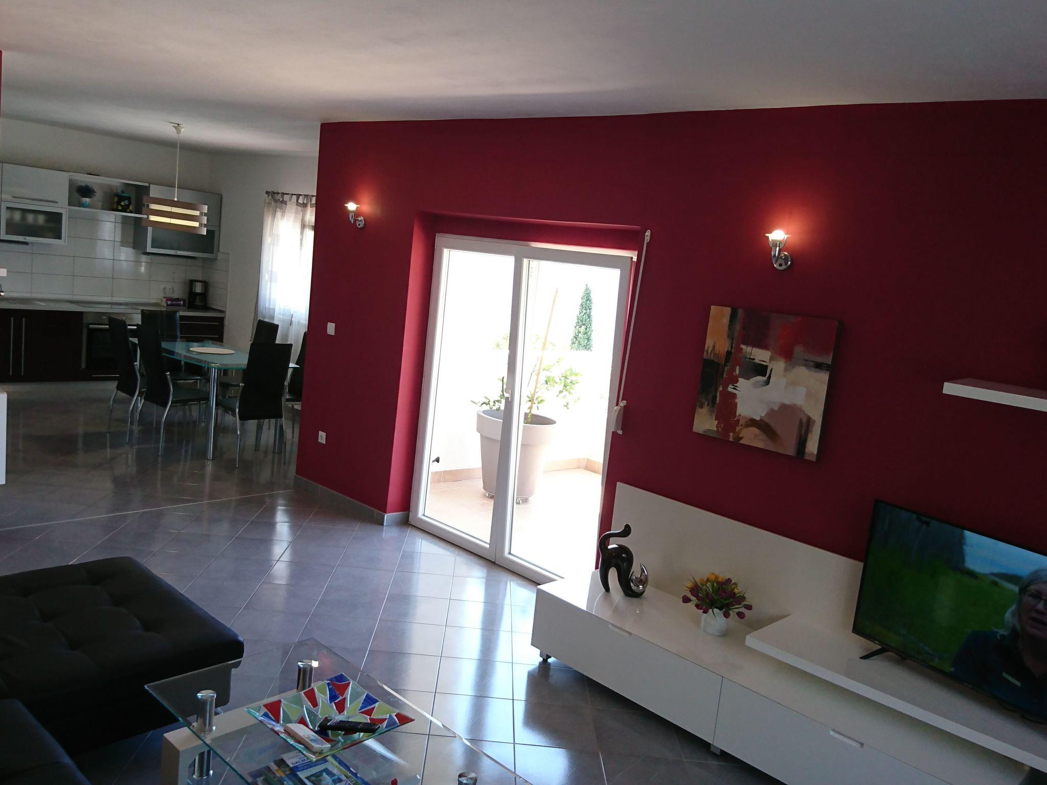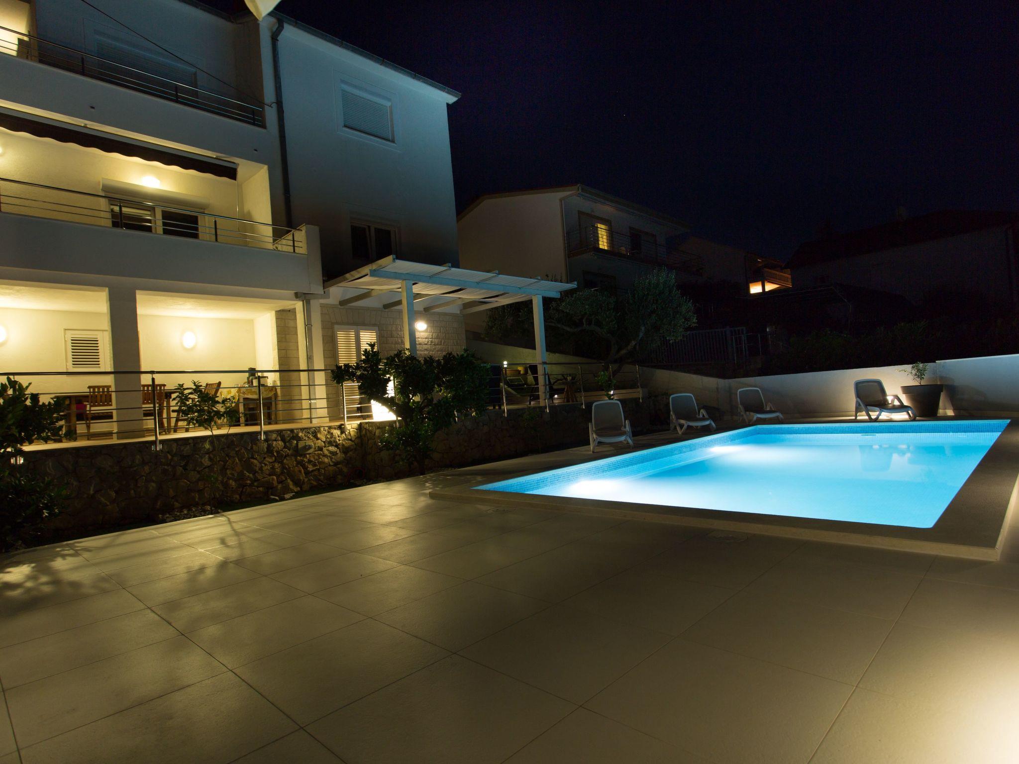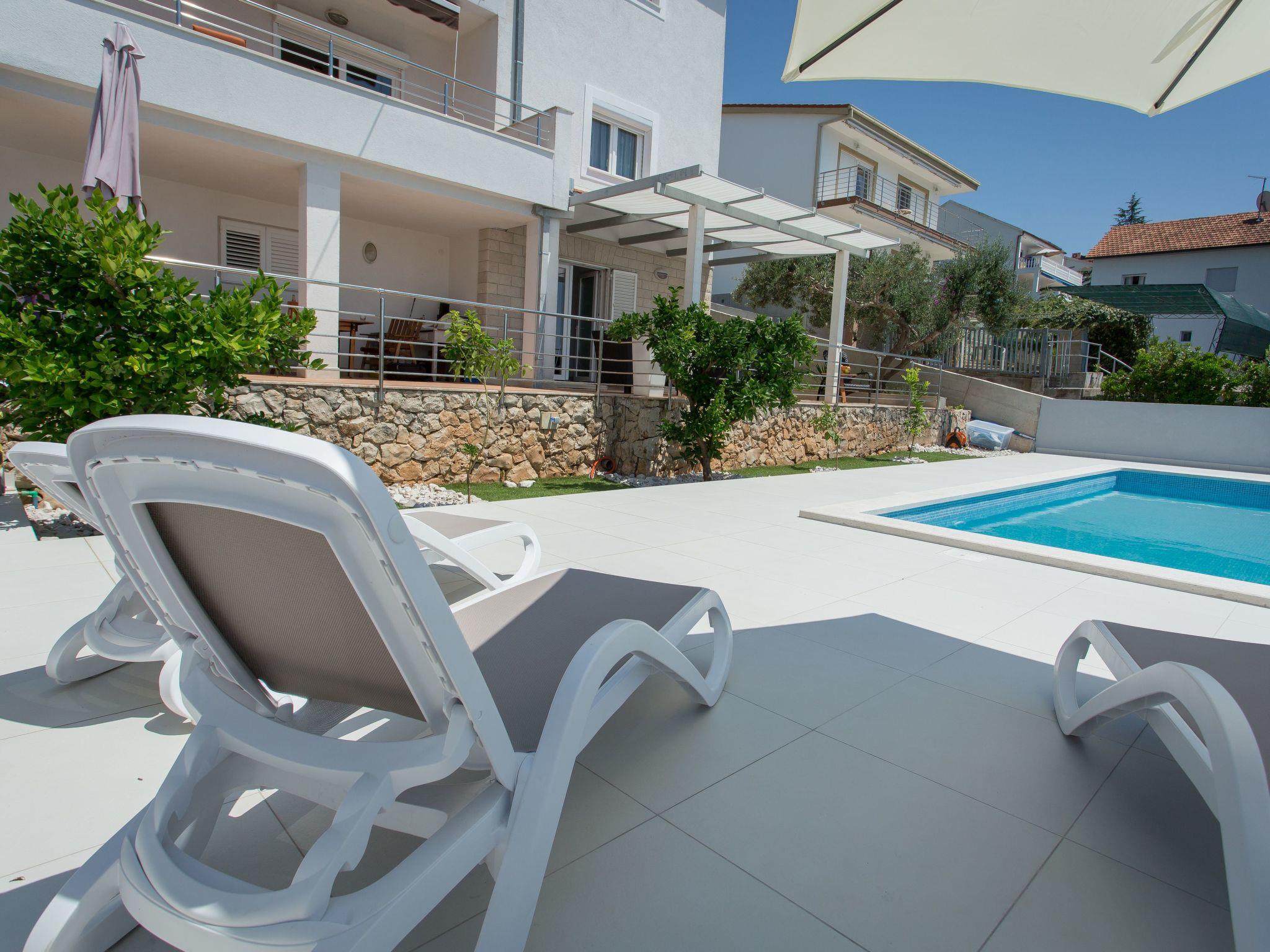This holiday apartment is located in Okrug Gornji, Croatia. It is located only approximately three kilometers from the historical center of Trogir, and 10 kilometers from the airport. The UNESCO listed cities of Split and Trogir are very close to the house and the National park Krka is only 30 kilometers away.