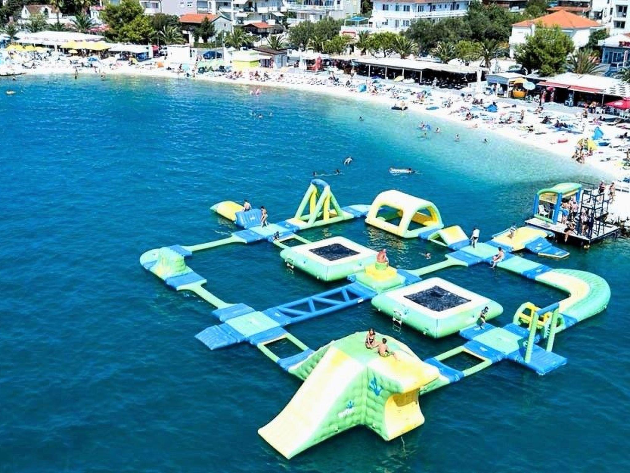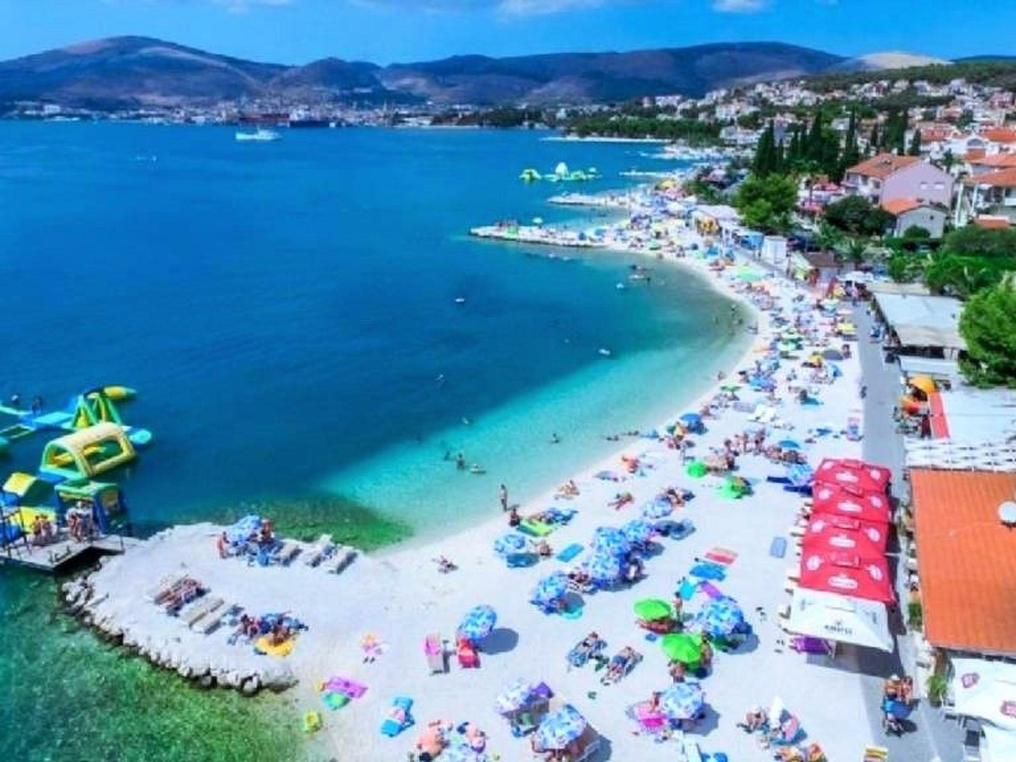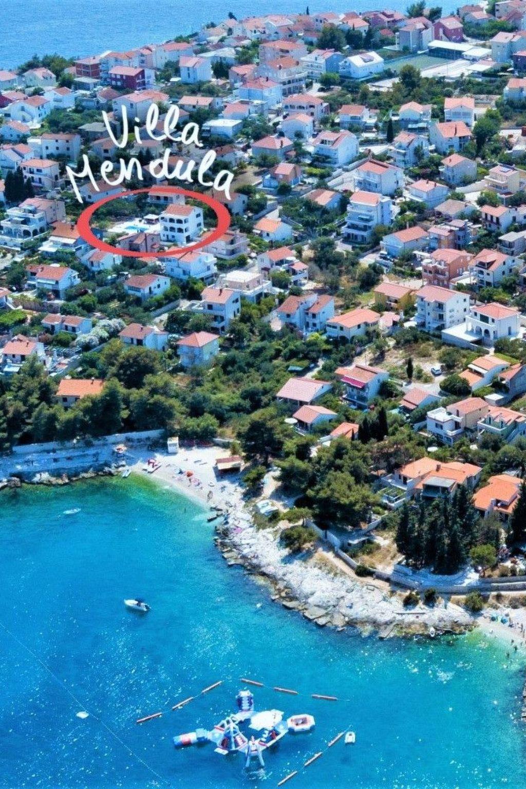 It is only about 100m to the nearest beach. Okrug Gornji village has several restaurants with a rich choice of local specialties, a butcher, a bakery, several supermarkets, a post office, money exchange office and ATM and small food market convenient for daily shopping. Excellent boutiques, food markets, numerous restaurants, ice cream shops and enchanting churches, towers, and fortress inscribed in UNESCO World Heritage List can be found in neighboring Trogir town. Close by the Villa, there is a diving center, you can play tennis, basketball, soccer or parasailing on the beach. The island Ciovo is connected by bridge with the mainland, therefore there are no extra charges if you are traveling by car. From Okrug Gornji you can go to Trogir by bus or by boat which runs every 15-30 min. (800m from Villa).