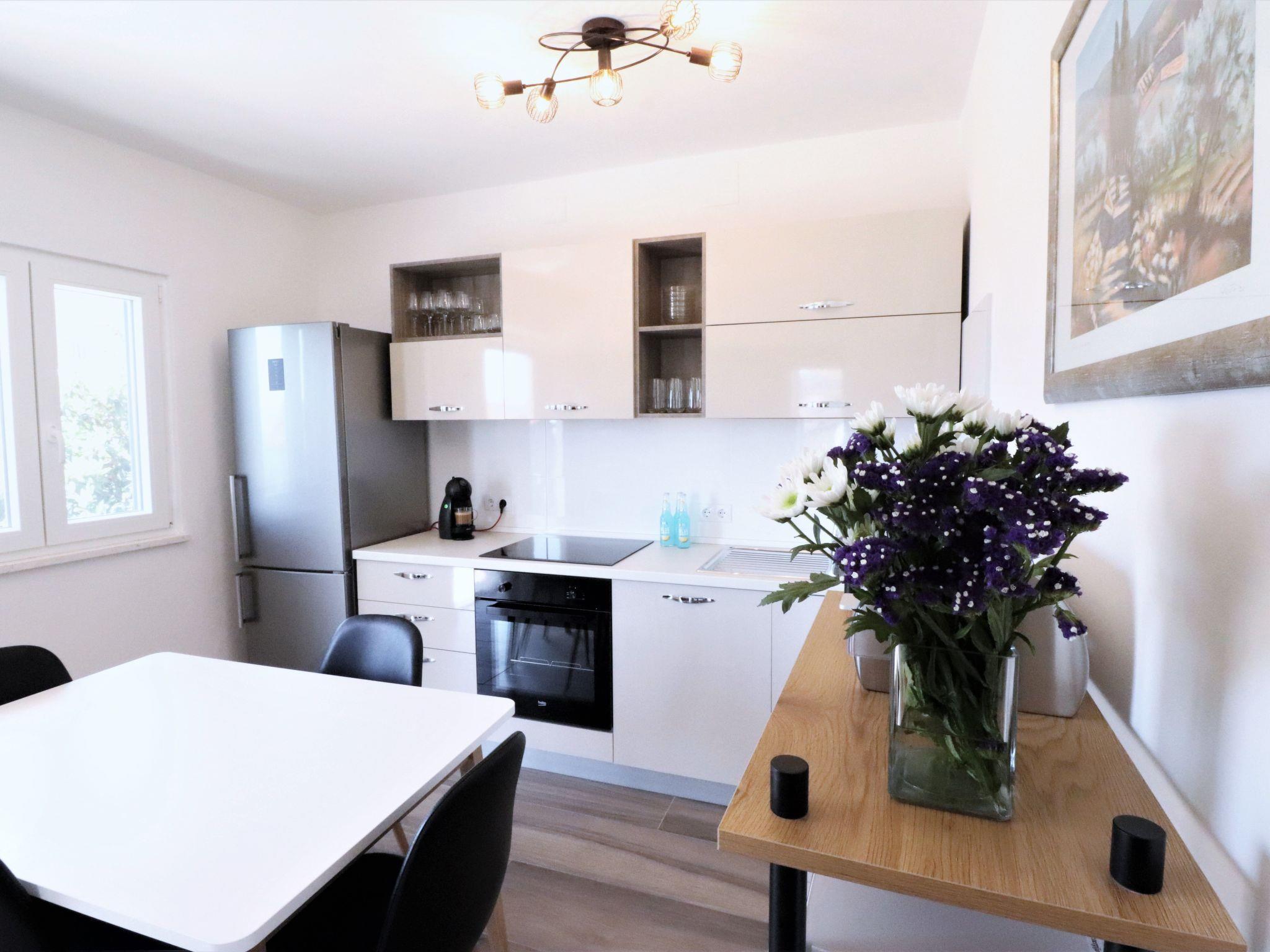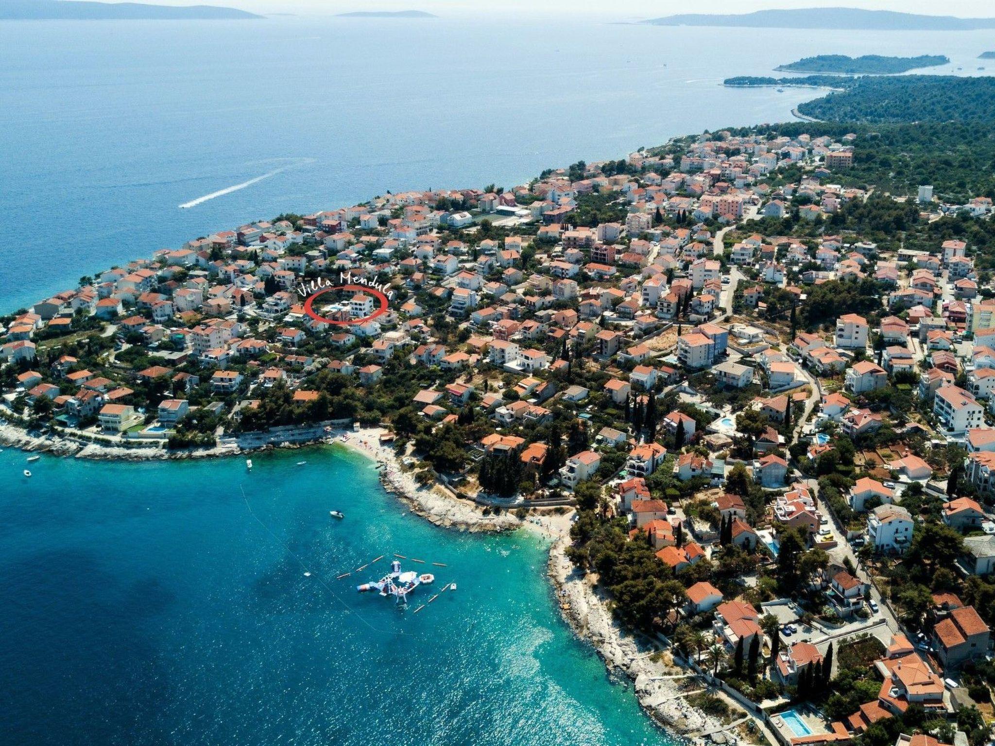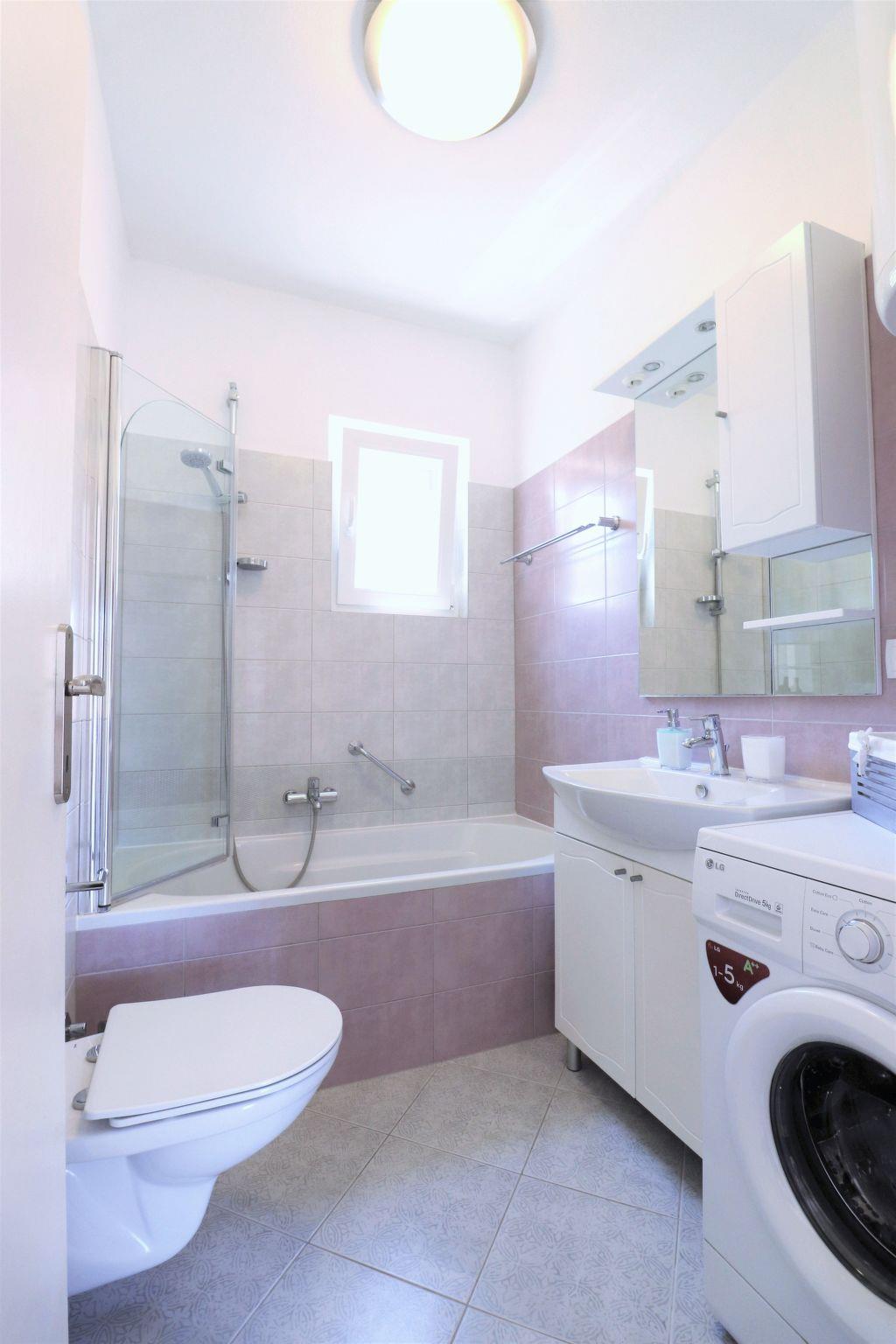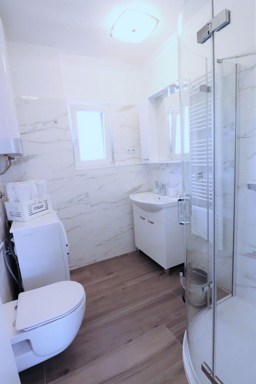 It is only about 100m to the nearest beach. Okrug Gornji village has several restaurants with a rich choice of local specialties, a butcher, a bakery, several supermarkets, a post office, money exchange office and ATM and small food market convenient for daily shopping. Excellent boutiques, food markets, numerous restaurants, ice cream shops and enchanting churches, towers, and fortress inscribed in UNESCO World Heritage List can be found in neighboring Trogir town. Close by the Villa, there is a diving center, you can play tennis, basketball, soccer or parasailing on the beach. The island Ciovo is connected by bridge with the mainland, therefore there are no extra charges if you are traveling by car. From Okrug Gornji you can go to Trogir by bus or by boat which runs every 15-30 min. (800m from Villa).
