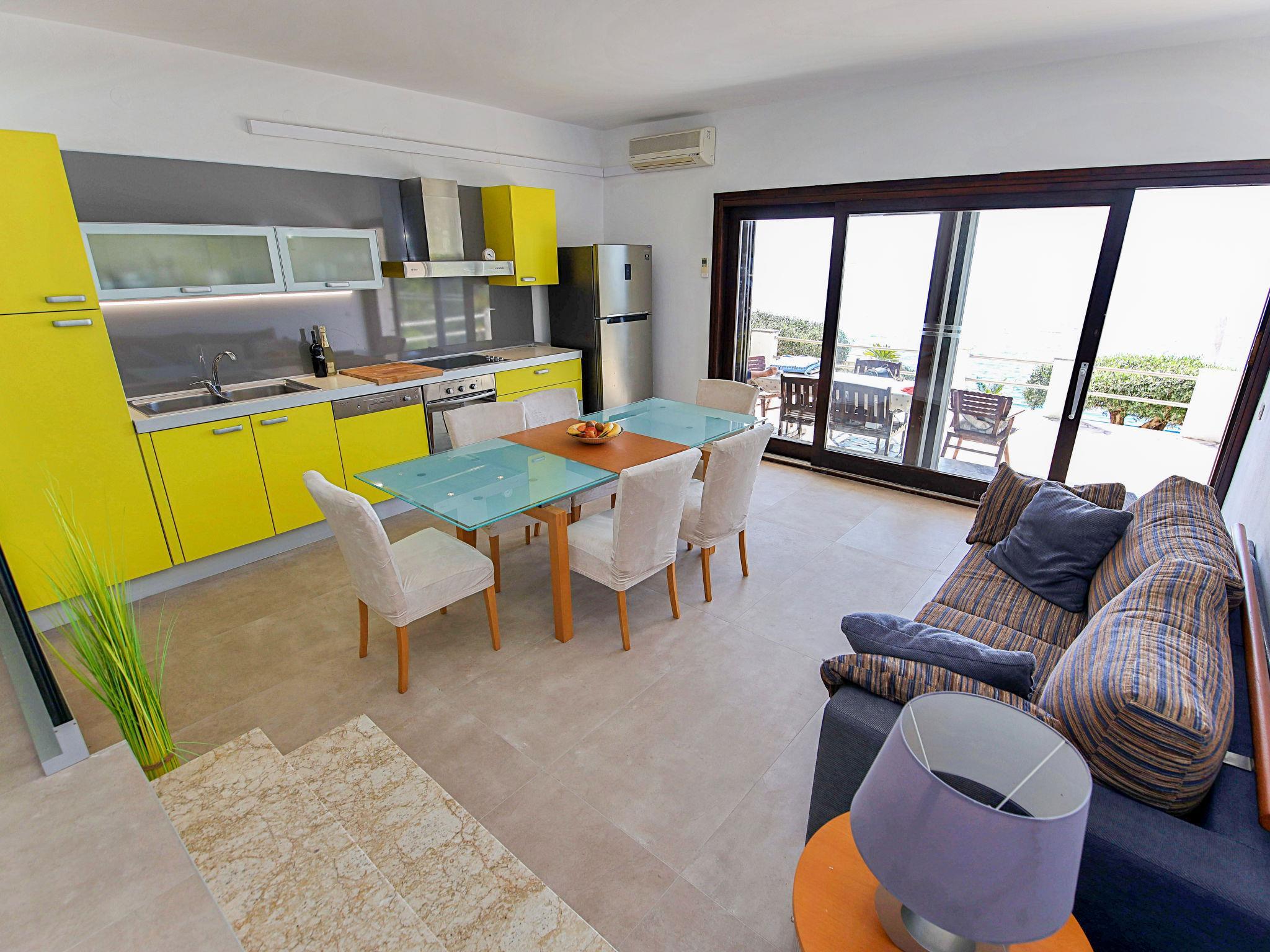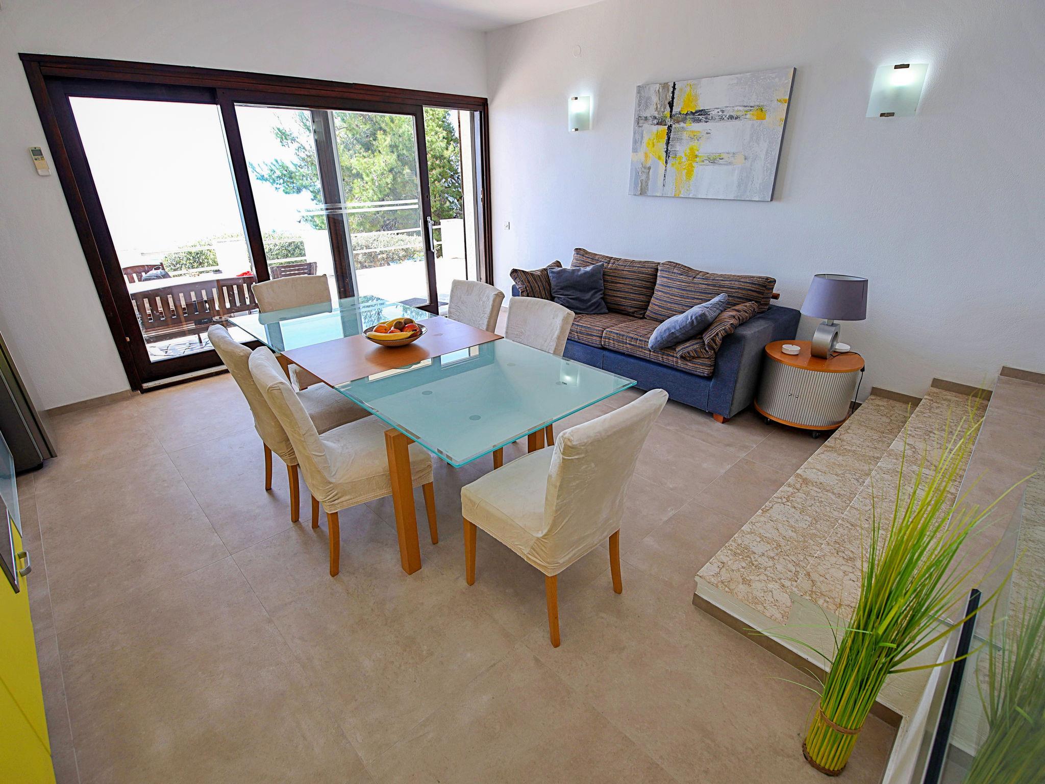 3-room apartment 65 m2, on the ground floor. Living/dining room with satellite TV and air conditioning. Exit to the terrace. 1 double bedroom with air conditioning. Exit to the terrace. 1 room with 2 beds and air conditioning. Exit to the terrace. Kitchen (4 hot plates, oven, dishwasher). Shower/bidet/WC, sep. WC. Large terrace partly roofed, south facing position. Terrace furniture. Marvellous view of the sea and the swimming pool. Facilities: washing machine, hair dryer. Internet (WiFi, free).