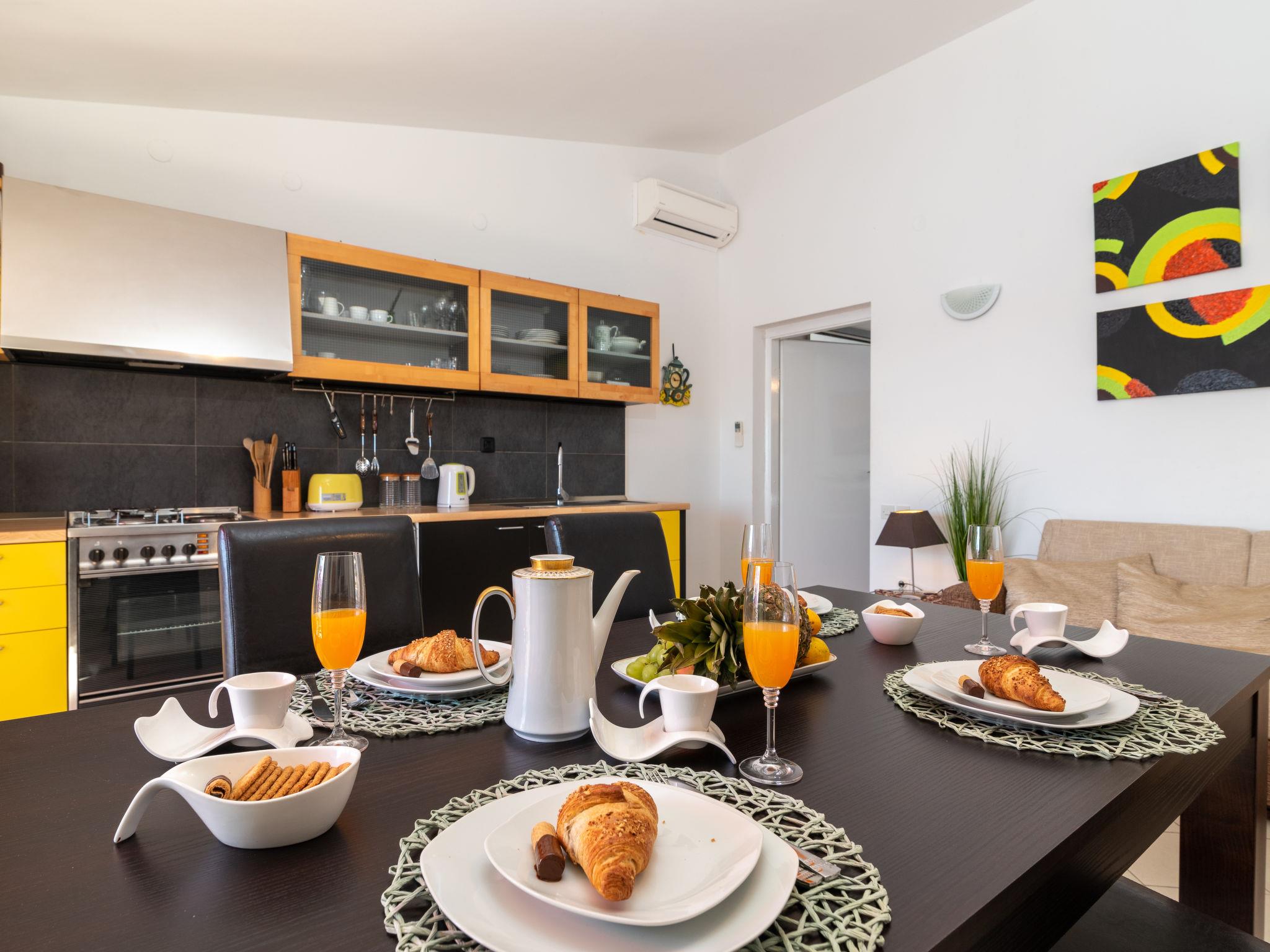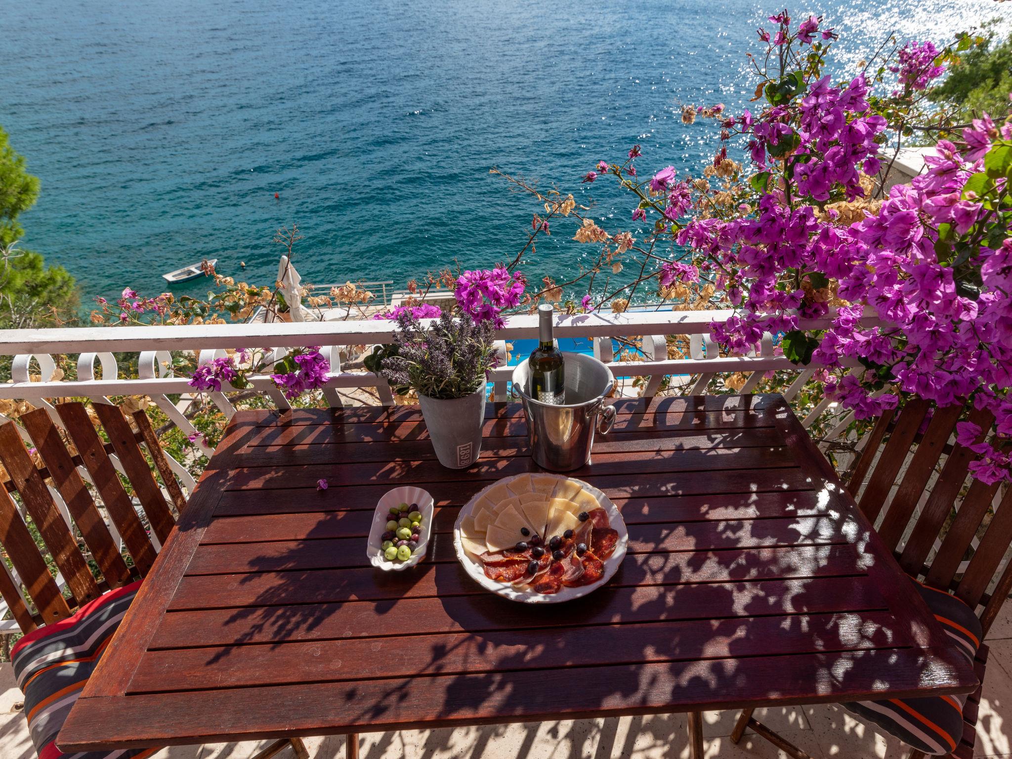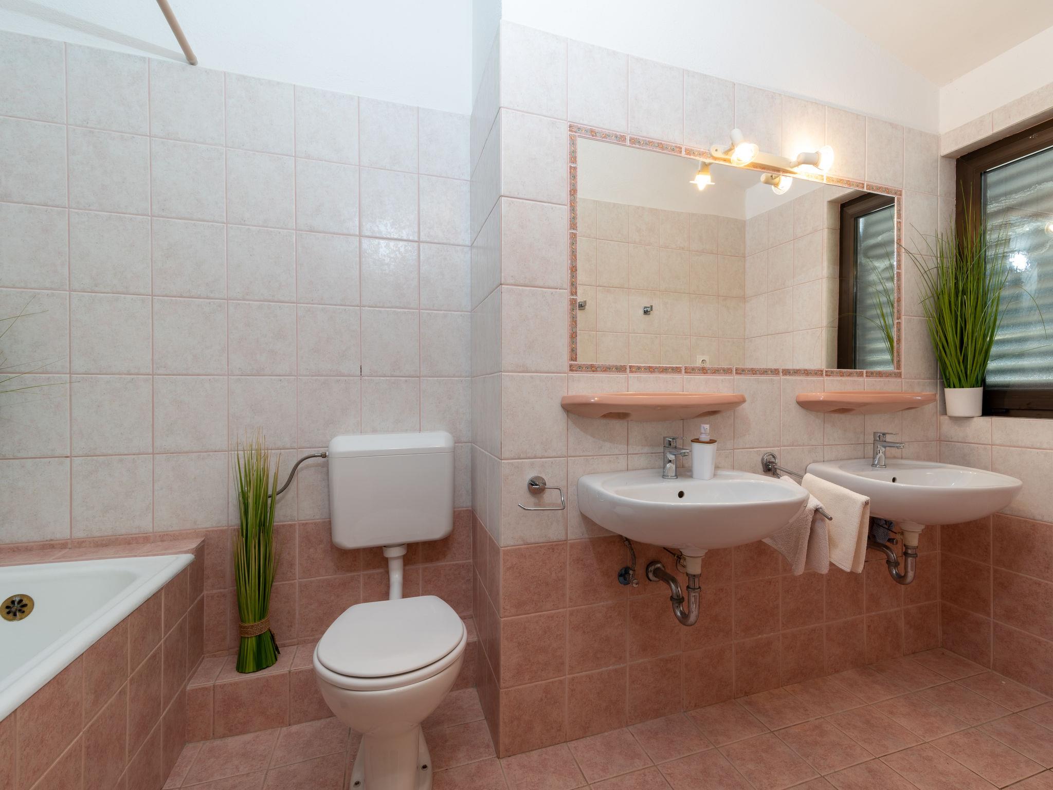 Okrug Gornji (Ciovo), 6 km from Trogir: Beautiful, cosy apartment house "Villa Pinia". Outside the resort, 1.5 km from the centre of Okrug Gornji, in a quiet, sunny, elevated position, 20 m from the sea, 20 m from the beach, in the countryside. For shared use: garden with plants, swimming pool angular (11 x 4 m, depth 120 - 140 cm, seasonal availability: 25.Apr. - 12.Sep.) with salt water and internal staircase. Outdoor shower, patio, barbecue. In the house: internet access, washing machine. Steep motor access to the house. Parking at the house on the premises. Shop 250 m, restaurant 1.5 km, bus stop 1.9 km, pebble beach 100 m, rocky beach 20 m. Please note: Additional accommodations can be booked.