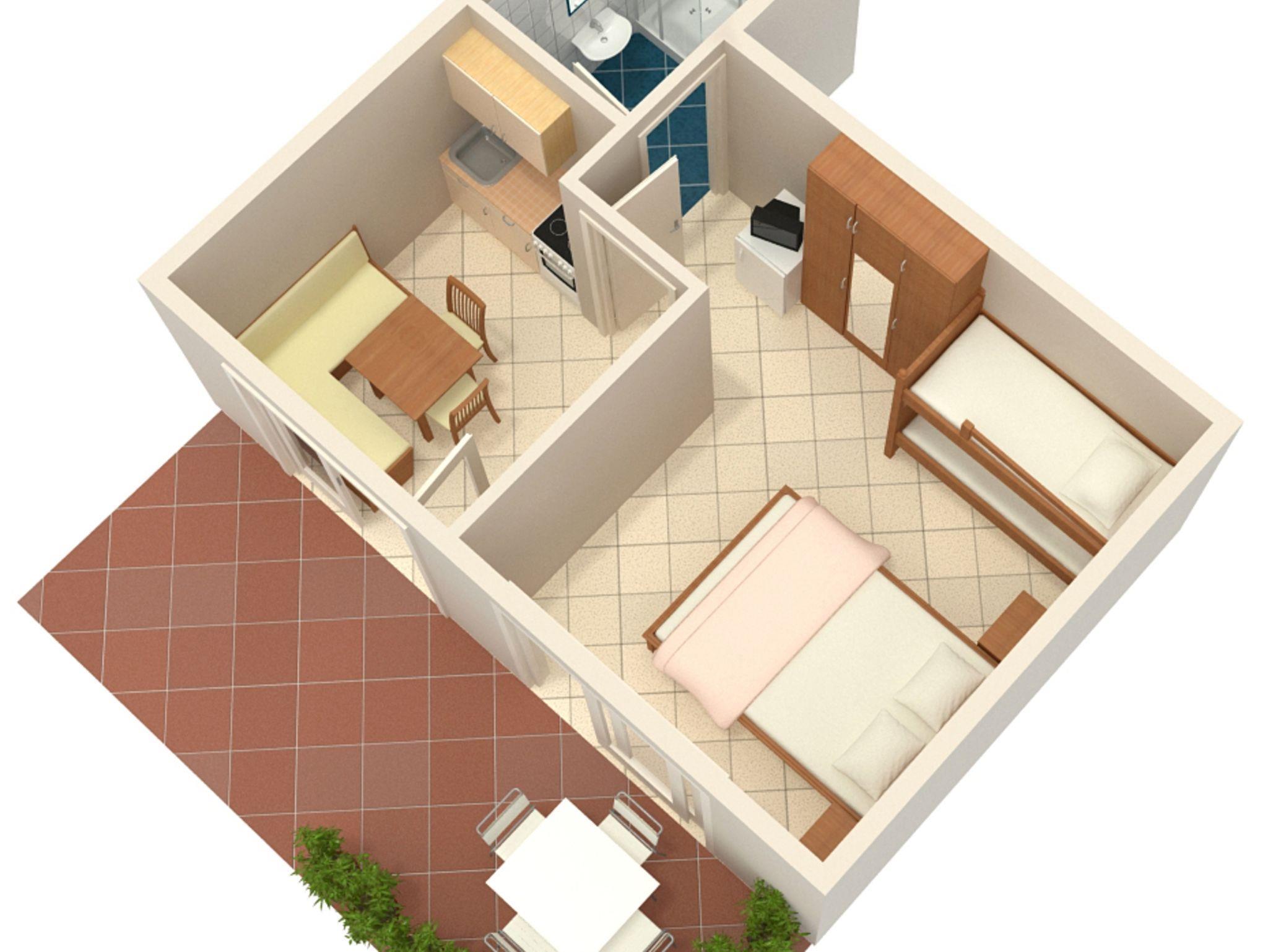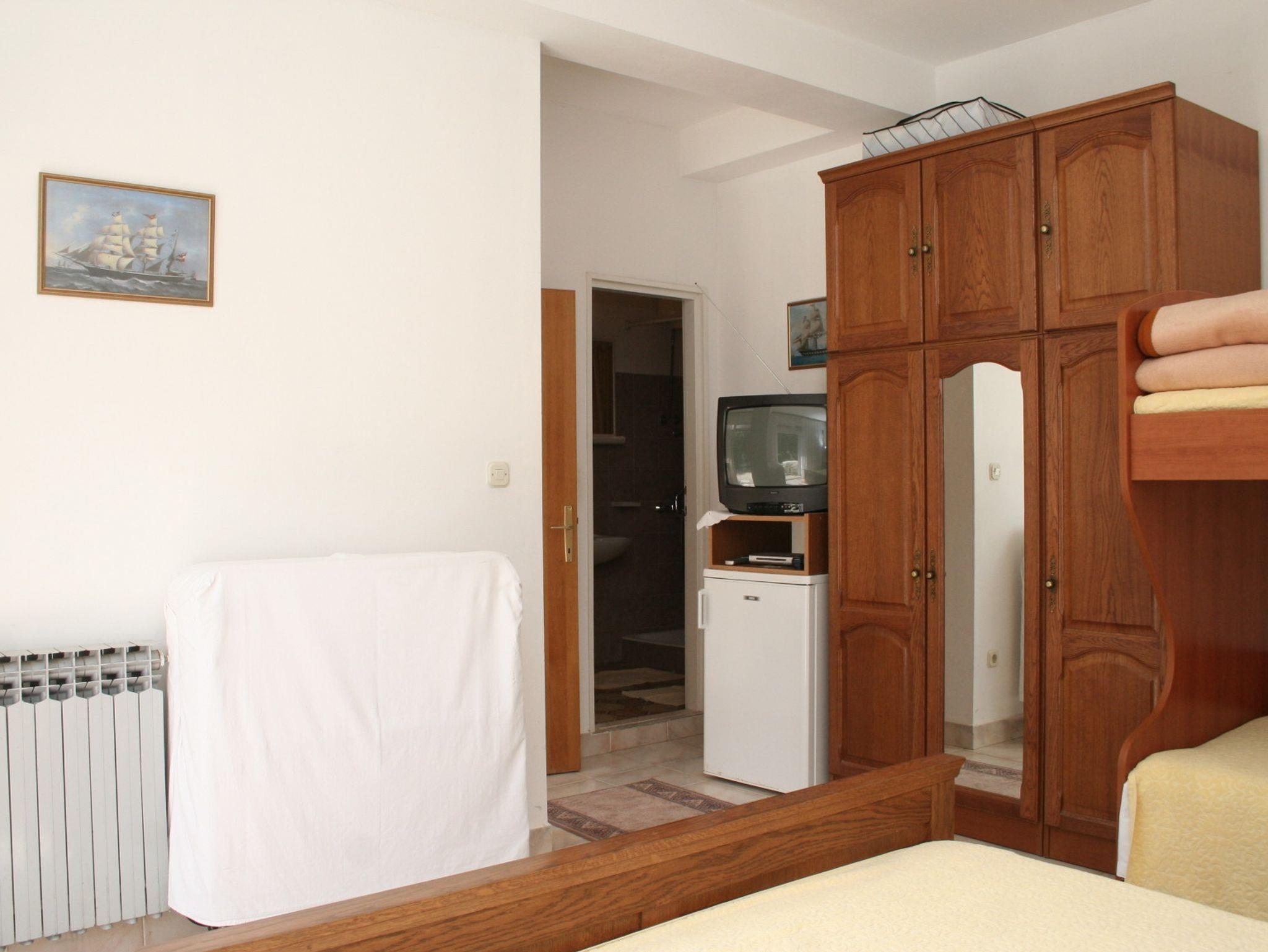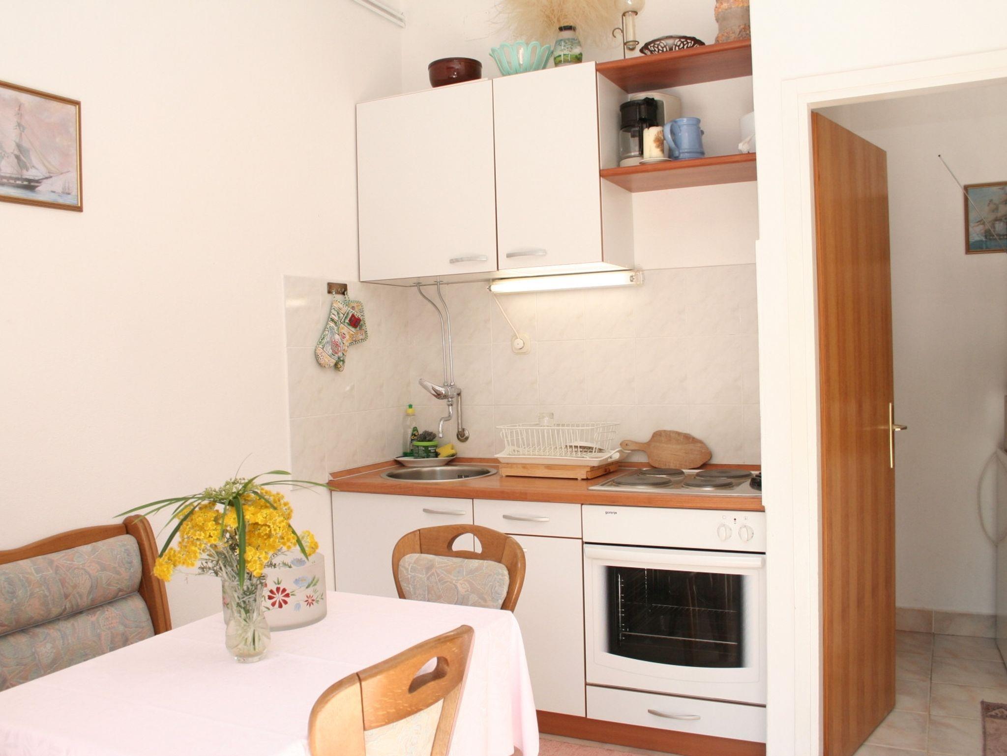 Ferienwohnung bietet Platz für 4 Gäste. Die Betten sind in Schlafzimmern, die es 1 gibt, innerhalb einer Gesamtfläche von 29m2, angeordnet. Die Gäste haben eine eigene Terrasse zur Verfügung, auf der sie in warmen Sommernächten genießen können. Das Apartment bietet Meerblick. Es ist erlaubt, Speisen auf dem Gemeinschafts-Grill vorzubereiten. In der Unterkunftseinheit besteht die Möglichkeit des Mitbringens von Haustieren gegen Aufpreis. IM PREIS INBEGRIFFEN: Kurtaxe, Endreinigung, Internet, Bootsanlegeplatz, Bügeleisen, Bügelbrett, Föhn. VERBINDLICHE ZUSÄTZLICHE KOSTEN: Aufzahlung für Kurzaufenthalte (prozentualer Zuschlag pro Nächtigungsanzahl: 30% - 1, 20% - 2, 10% - 3). UNVERBINDLICHE ZUSÄTZLICHE KOSTEN: Klimatisierung (3,00 € pro Nacht), Wäschewaschen (4,00 € Waschen), Haustiere (10,00 € pro Nacht). Die Verfügbarkeit zusätzlicher Dienstleistungen in Ihrem reservierten Termin und die Preise derselben (falls nicht aufgeführt) müssen im Voraus überprüft werden. Zusätzliche Dienstleistungen die in der Zahlungsaufforderung nicht aufgeführt sind werden direkt beim Vermieter bezahlt, angenommen der Gast nutzt auch diese.