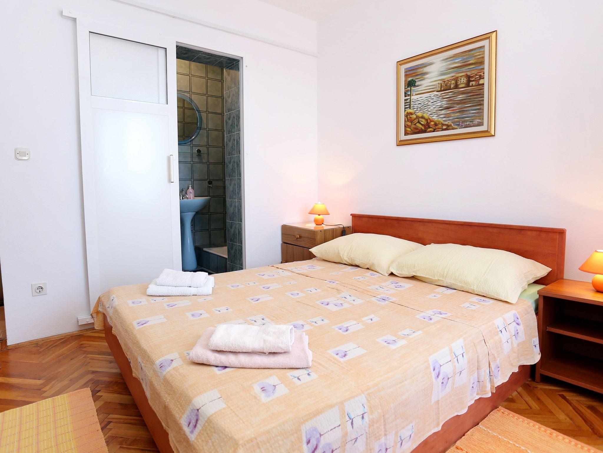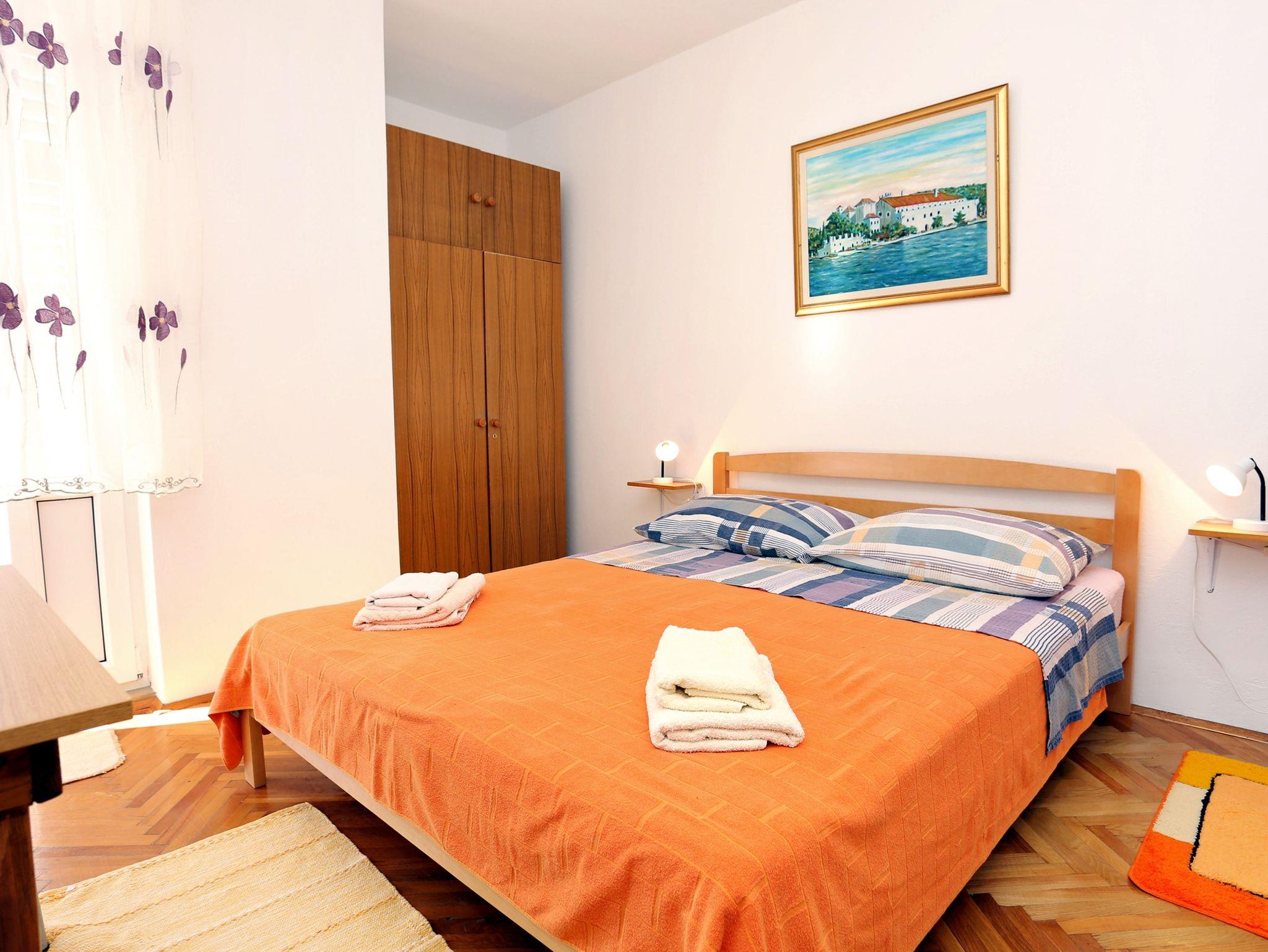 Ferienwohnung bietet Platz für 4 Gäste. Die Betten sind in Schlafzimmern, die es 2 gibt, innerhalb einer Gesamtfläche von 37m2, angeordnet. Die Gäste haben eine eigene Terrasse zur Verfügung, auf der sie in warmen Sommernächten genießen können. Das Apartment bietet Meerblick. In der Unterkunftseinheit besteht die Möglichkeit des Mitbringens von Haustieren gegen Aufpreis. IM PREIS INBEGRIFFEN: Kurtaxe, Endreinigung, Klimatisierung, Parkplatz, Internet, Wäschewaschen, Bügeleisen, Bügelbrett, Föhn. VERBINDLICHE ZUSÄTZLICHE KOSTEN: Aufzahlung für Kurzaufenthalte (prozentualer Zuschlag pro Nächtigungsanzahl: 30% - 1, 20% - 2, 10% - 3). UNVERBINDLICHE ZUSÄTZLICHE KOSTEN: Haustiere (5,00 € pro Nacht). Die Verfügbarkeit zusätzlicher Dienstleistungen in Ihrem reservierten Termin und die Preise derselben (falls nicht aufgeführt) müssen im Voraus überprüft werden. Zusätzliche Dienstleistungen die in der Zahlungsaufforderung nicht aufgeführt sind werden direkt beim Vermieter bezahlt, angenommen der Gast nutzt auch diese.
