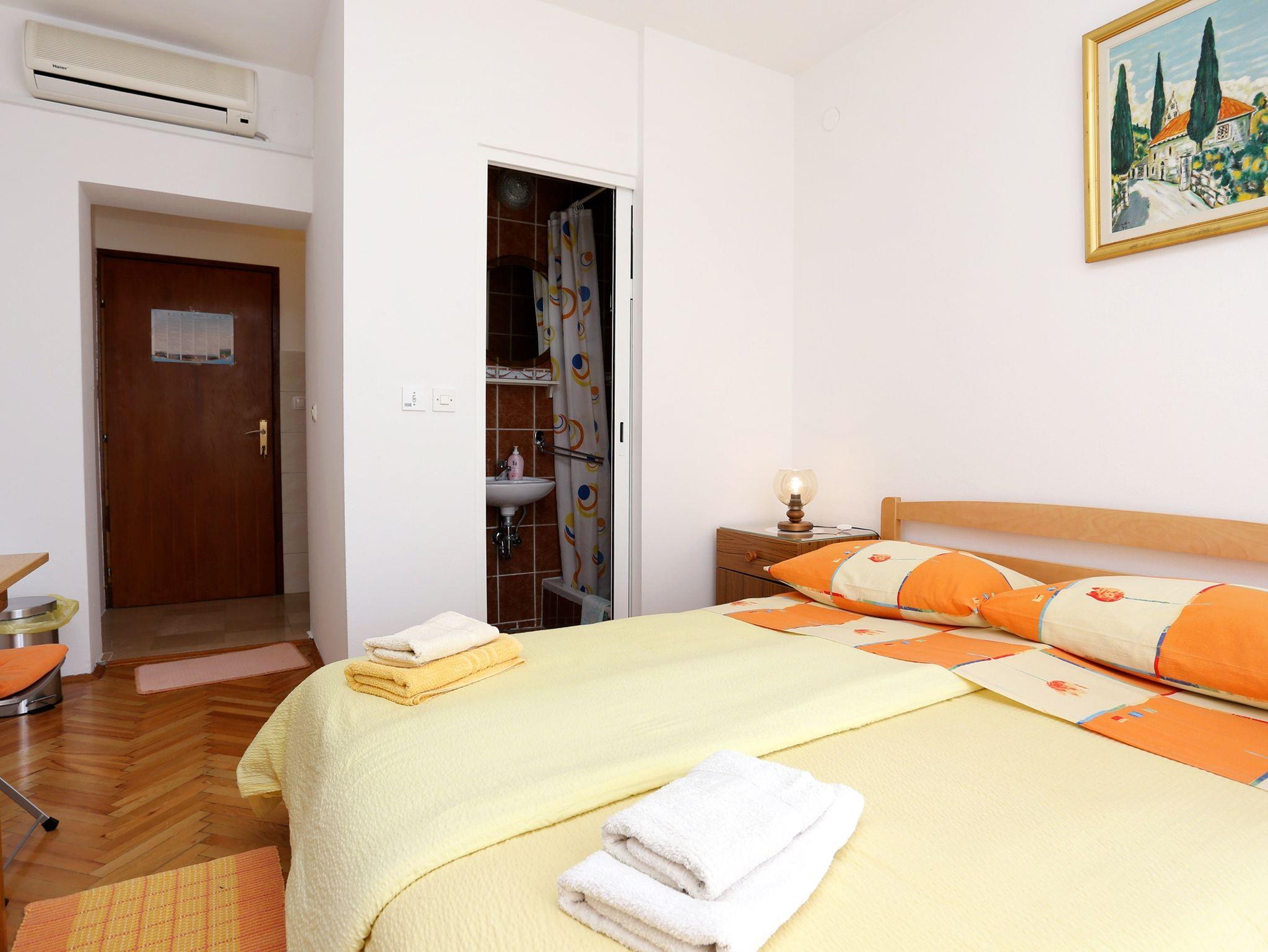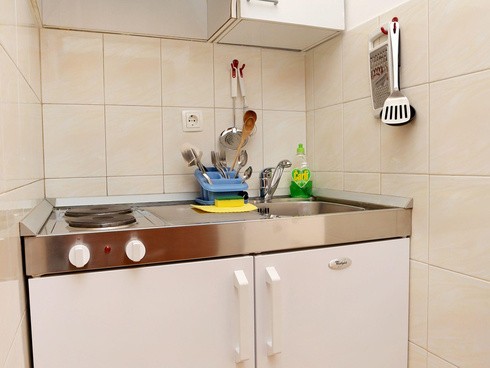 Studio bietet Platz für 2 Gäste. Die Betten sind in Schlafzimmern, die es 1 gibt, innerhalb einer Gesamtfläche von 17m2, angeordnet. Die Gäste haben einen eigenen Balkon zur Verfügung, auf der sie in warmen Sommernächten genießen können. Das Studio-Apartment bietet Meerblick. In der Unterkunftseinheit besteht die Möglichkeit des Mitbringens von Haustieren gegen Aufpreis. IM PREIS INBEGRIFFEN: Kurtaxe, Endreinigung, Klimatisierung, Parkplatz, Internet, Wäschewaschen, Bügeleisen, Bügelbrett, Föhn. VERBINDLICHE ZUSÄTZLICHE KOSTEN: Aufzahlung für Kurzaufenthalte (prozentualer Zuschlag pro Nächtigungsanzahl: 30% - 1, 20% - 2, 10% - 3). UNVERBINDLICHE ZUSÄTZLICHE KOSTEN: Haustiere (5,00 € pro Nacht). Die Verfügbarkeit zusätzlicher Dienstleistungen in Ihrem reservierten Termin und die Preise derselben (falls nicht aufgeführt) müssen im Voraus überprüft werden. Zusätzliche Dienstleistungen die in der Zahlungsaufforderung nicht aufgeführt sind werden direkt beim Vermieter bezahlt, angenommen der Gast nutzt auch diese.