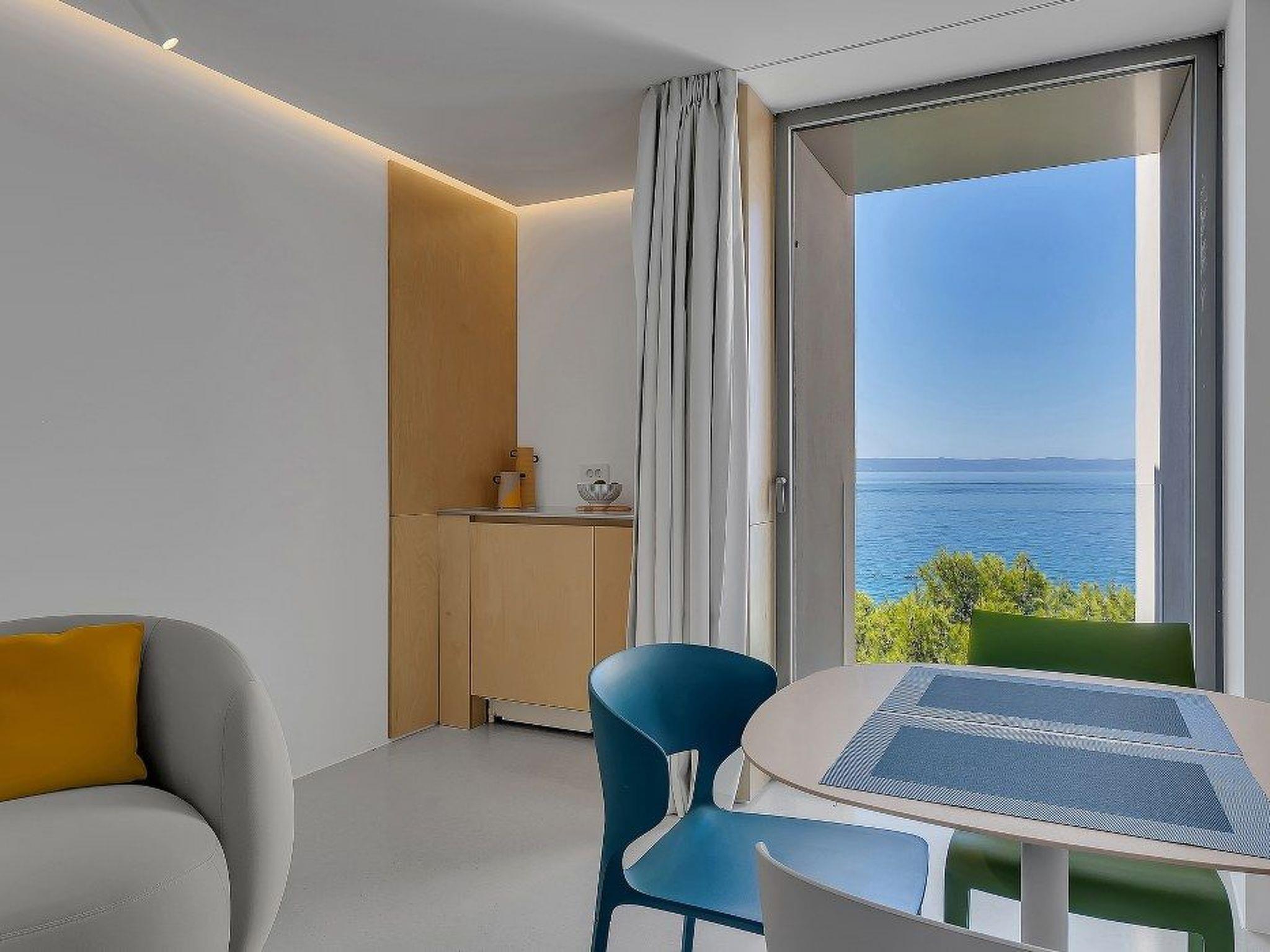 The room opens up to the outside with its own balcony, which offers a direct view of the glittering sea. Just a few steps separate you from the beach, which offers perfect conditions for water sports, walks along the shore or simply relaxing in the sunshine. The proximity to the sea and easily accessible local beaches, such as Lucica and Kamena, make this guest room an ideal base for your beach adventures.