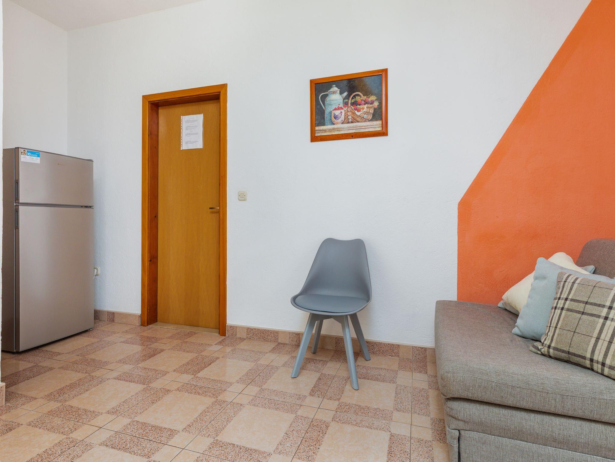 Ferienwohnung bietet Platz für 5 Gäste. Die Betten sind in Schlafzimmern, die es 1 gibt, und in Esszimmer, innerhalb einer Gesamtfläche von 29m2, angeordnet. Die Gäste haben einen eigenen Balkon zur Verfügung, auf der sie in warmen Sommernächten genießen können. Es ist erlaubt, Speisen auf dem Gemeinschafts-Grill vorzubereiten. In der Unterkunftseinheit besteht die Möglichkeit des Mitbringens von Haustieren, und die Dienstleistung ist im Preis der Unterkunft enthalten. IM PREIS INBEGRIFFEN: Kurtaxe, Endreinigung, Klimatisierung, Parkplatz, Internet, Haustiere, Kinderbett, Bügeleisen, Bügelbrett. VERBINDLICHE ZUSÄTZLICHE KOSTEN: Aufzahlung für Kurzaufenthalte (prozentualer Zuschlag pro Nächtigungsanzahl: 30% - 1, 20% - 2, 10% - 3). UNVERBINDLICHE ZUSÄTZLICHE KOSTEN: Wäschewaschen (6,00 € Waschen). Die Verfügbarkeit zusätzlicher Dienstleistungen in Ihrem reservierten Termin und die Preise derselben (falls nicht aufgeführt) müssen im Voraus überprüft werden. Zusätzliche Dienstleistungen die in der Zahlungsaufforderung nicht aufgeführt sind werden direkt beim Vermieter bezahlt, angenommen der Gast nutzt auch diese.