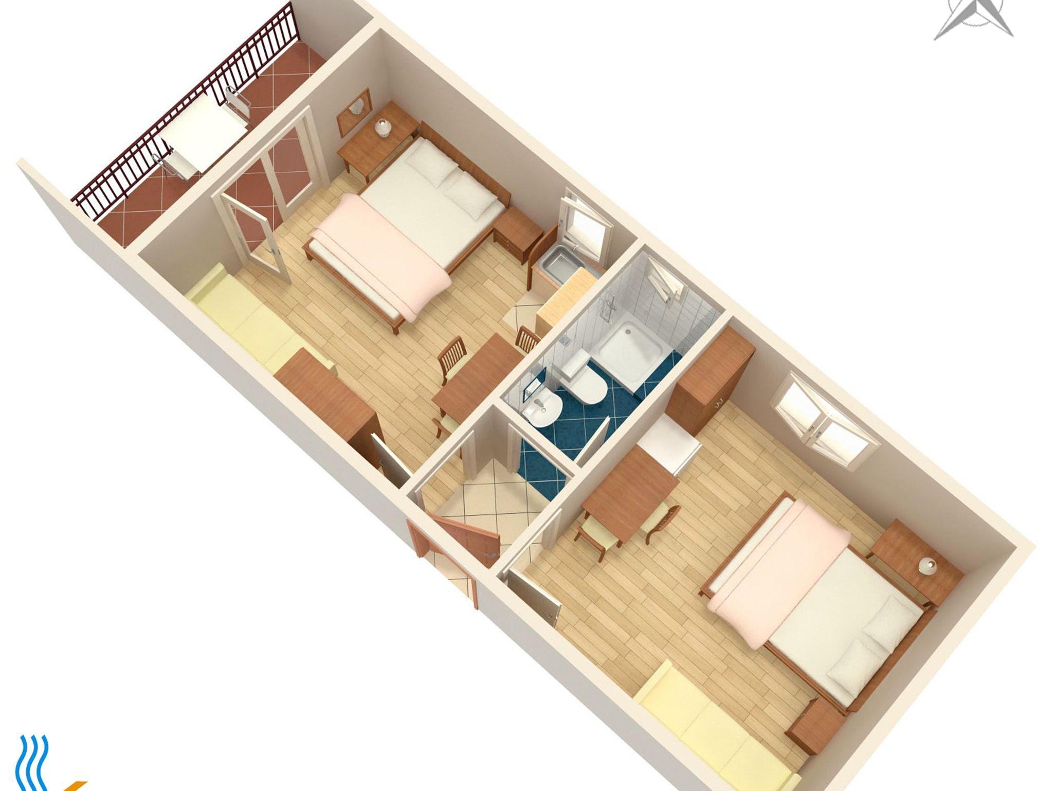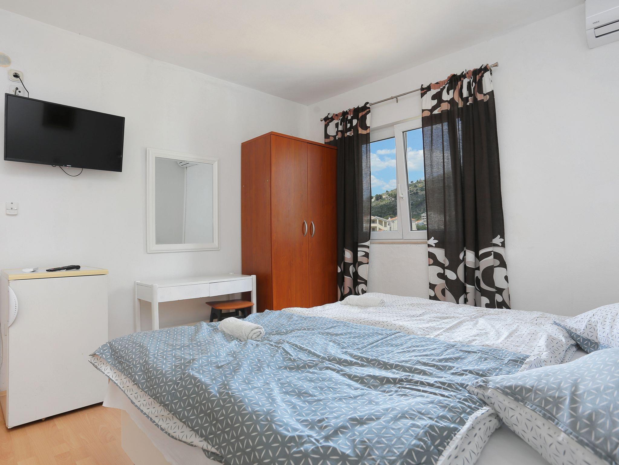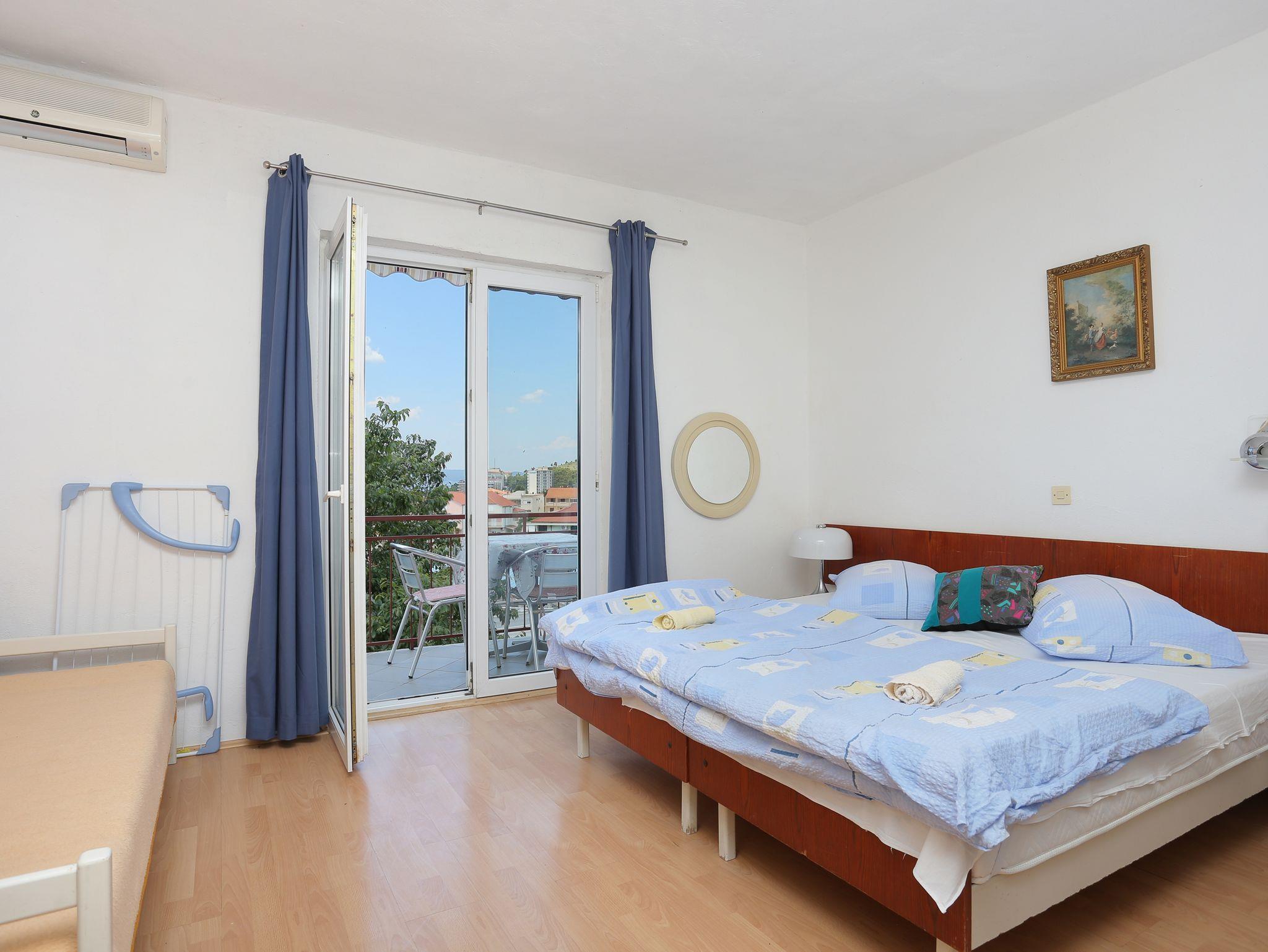 Ferienwohnung bietet Platz für 5 Gäste. Die Betten sind in Schlafzimmern, die es 1 gibt, und in Esszimmer, innerhalb einer Gesamtfläche von 39m2, angeordnet. Die Gäste haben einen eigenen Balkon zur Verfügung, auf der sie in warmen Sommernächten genießen können. Das Apartment bietet Meerblick. IM PREIS INBEGRIFFEN: Kurtaxe, Endreinigung, Klimatisierung, Parkplatz, Internet. VERBINDLICHE ZUSÄTZLICHE KOSTEN: Aufzahlung für Kurzaufenthalte (prozentualer Zuschlag pro Nächtigungsanzahl: 30% - 1, 20% - 2, 10% - 3). Die Verfügbarkeit zusätzlicher Dienstleistungen in Ihrem reservierten Termin und die Preise derselben (falls nicht aufgeführt) müssen im Voraus überprüft werden. Zusätzliche Dienstleistungen die in der Zahlungsaufforderung nicht aufgeführt sind werden direkt beim Vermieter bezahlt, angenommen der Gast nutzt auch diese. Ermäßigung auf den Grundpreis: Gratistag 14=13 (bei einem Aufenthalt von 14 Tagen oder mehr erhalten Sie einen Gratistag für den Aufenthalt bis 31.12.26).