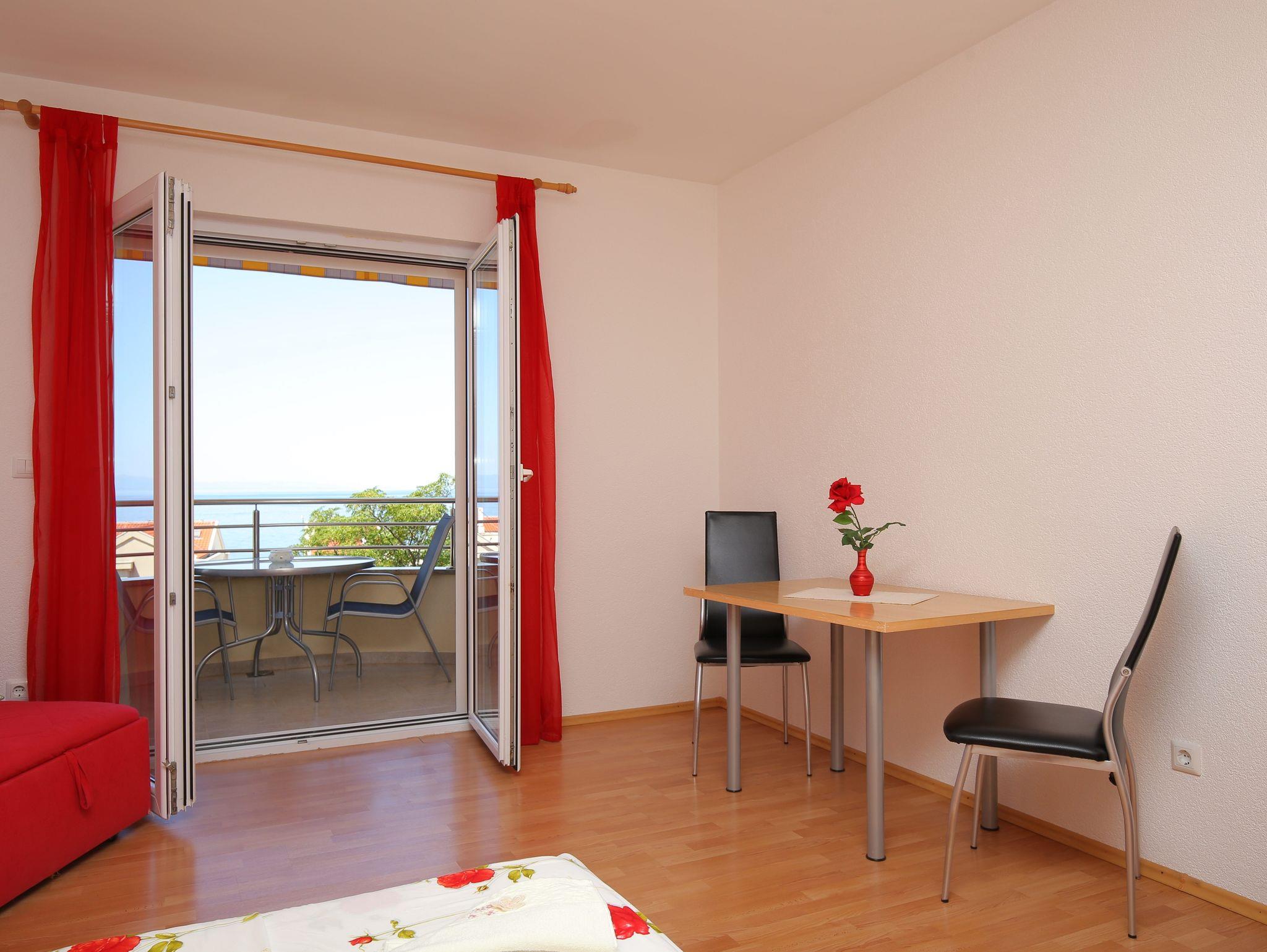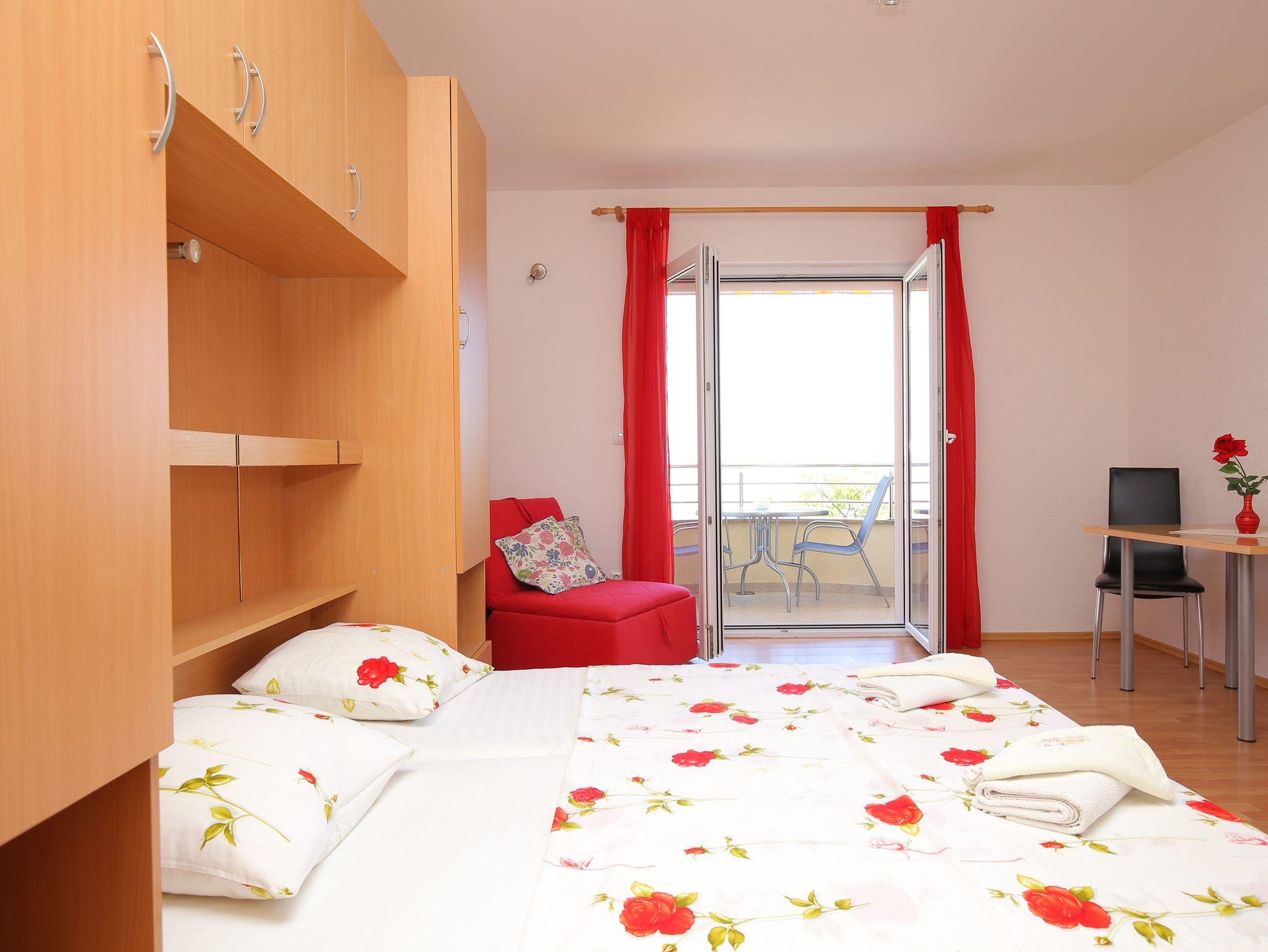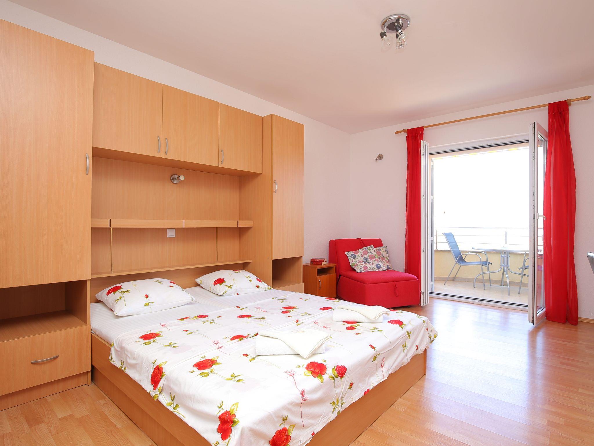 Studio bietet Platz für 3 Gäste. Die Betten sind in Schlafzimmern, die es 1 gibt, innerhalb einer Gesamtfläche von 26m2, angeordnet. Die Gäste haben einen eigenen Balkon zur Verfügung, auf der sie in warmen Sommernächten genießen können. Das Studio-Apartment bietet Meerblick. Es ist erlaubt, Speisen auf dem Gemeinschafts-Grill vorzubereiten. In der Unterkunftseinheit besteht die Möglichkeit des Mitbringens von Haustieren, und die Dienstleistung ist im Preis der Unterkunft enthalten. IM PREIS INBEGRIFFEN: Kurtaxe, Endreinigung, Klimatisierung, Parkplatz, Garage, Internet, Haustiere, Kinderbett, Bügeleisen, Bügelbrett, Föhn. Die Verfügbarkeit zusätzlicher Dienstleistungen in Ihrem reservierten Termin und die Preise derselben (falls nicht aufgeführt) müssen im Voraus überprüft werden. Zusätzliche Dienstleistungen die in der Zahlungsaufforderung nicht aufgeführt sind werden direkt beim Vermieter bezahlt, angenommen der Gast nutzt auch diese. Ermäßigung auf den Grundpreis: Gratistag 14=13 (bei einem Aufenthalt von 14 Tagen oder mehr erhalten Sie einen Gratistag für den Aufenthalt bis 31.12.26).