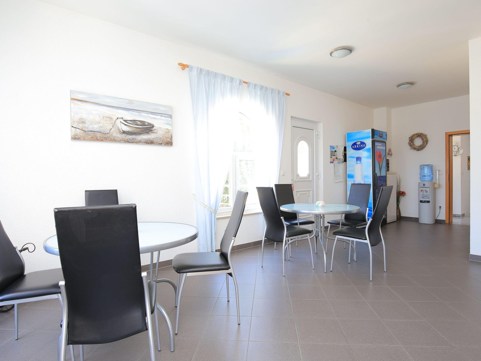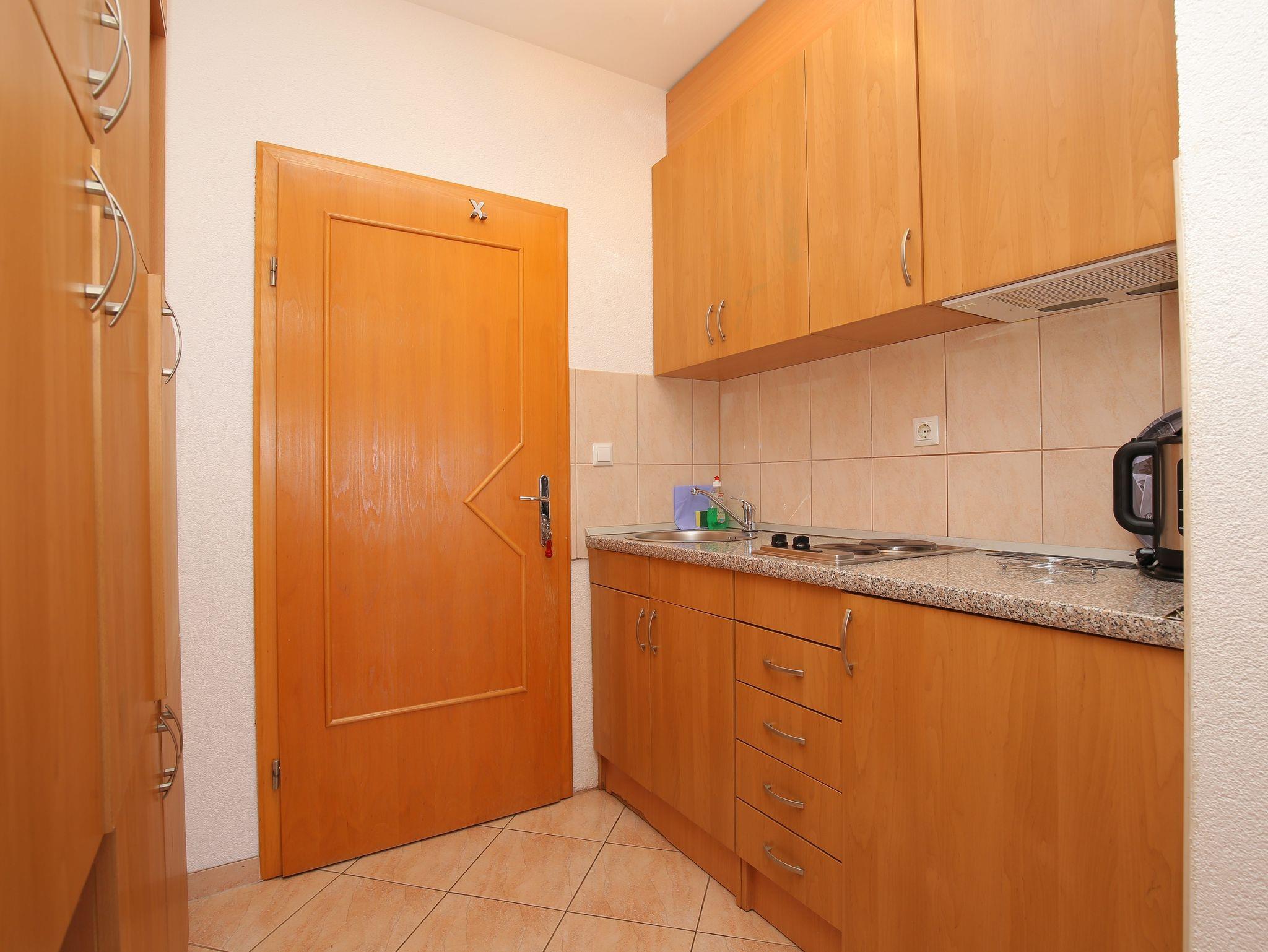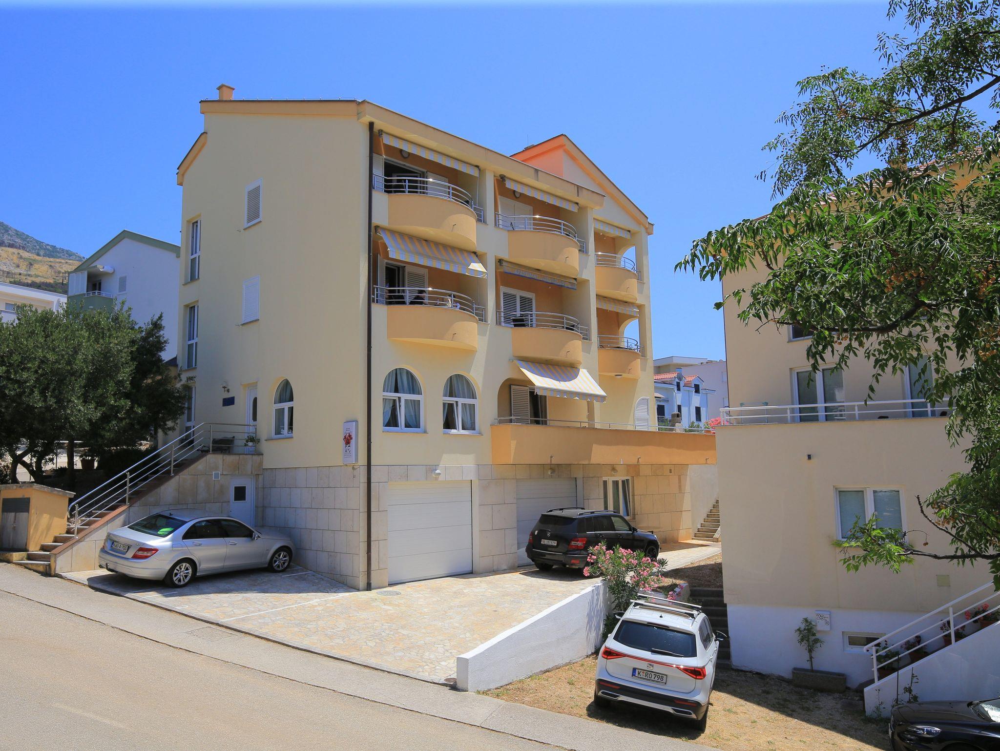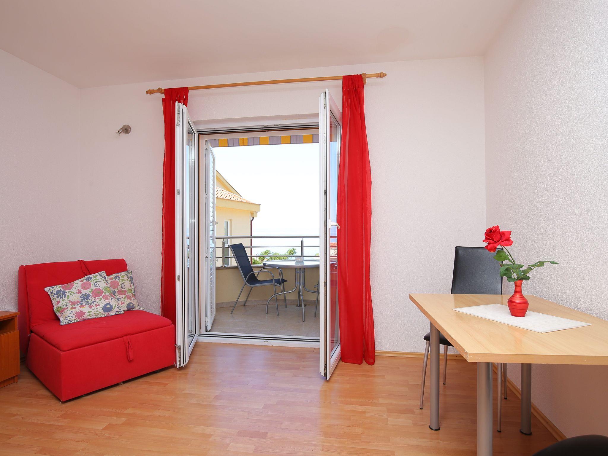 Studio bietet Platz für 3 Gäste. Die Betten sind in Schlafzimmern, die es 1 gibt, innerhalb einer Gesamtfläche von 26m2, angeordnet. Die Gäste haben einen eigenen Balkon zur Verfügung, auf der sie in warmen Sommernächten genießen können. Das Studio-Apartment bietet Meerblick. Es ist erlaubt, Speisen auf dem Gemeinschafts-Grill vorzubereiten. In der Unterkunftseinheit besteht die Möglichkeit des Mitbringens von Haustieren, und die Dienstleistung ist im Preis der Unterkunft enthalten. IM PREIS INBEGRIFFEN: Kurtaxe, Endreinigung, Klimatisierung, Parkplatz, Garage, Internet, Haustiere, Kinderbett, Bügeleisen, Bügelbrett, Föhn. Die Verfügbarkeit zusätzlicher Dienstleistungen in Ihrem reservierten Termin und die Preise derselben (falls nicht aufgeführt) müssen im Voraus überprüft werden. Zusätzliche Dienstleistungen die in der Zahlungsaufforderung nicht aufgeführt sind werden direkt beim Vermieter bezahlt, angenommen der Gast nutzt auch diese. Ermäßigung auf den Grundpreis: Gratistag 14=13 (bei einem Aufenthalt von 14 Tagen oder mehr erhalten Sie einen Gratistag für den Aufenthalt bis 31.12.26).