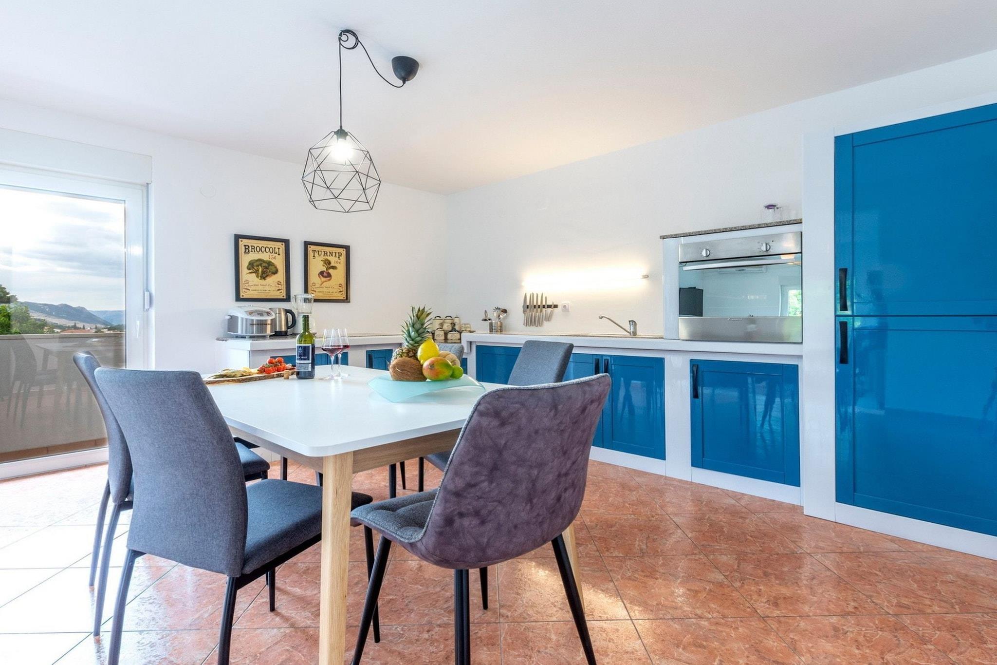 The Serene Rural Villa with Pool, Sun Deck, and Children's Play Area located in Tugare, Split-Dalmatia County, Croatia, offers a tranquil retreat in a picturesque setting. This villa combines the charm of rural life with modern comforts, making it an excellent choice for a relaxing getaway in Croatia. Whether you're lounging by the pool, enjoying family time, or exploring the stunning Dalmatian coast, this location offers a wonderful retreat. Note: Baby cot is available on request. Private parking, reservation is not required. One pet is allowed on request and it costs 8 euros per night. Pool is heated only in the period 15.03.-01.06. and 10.09.-01.11. This five-bedroom can accommodate up to twelve guests. It features a TV and is combined with a living room and kitchen. The private bathroom is equipped with a shower and toilet. Thanks to its excellent location, everything you'll need for your vacation is just a short walk away from the property. 3.00 km ,restaurants—2.00 km. The beach is 2 km away from the property. The airport is 35 km away from the property.