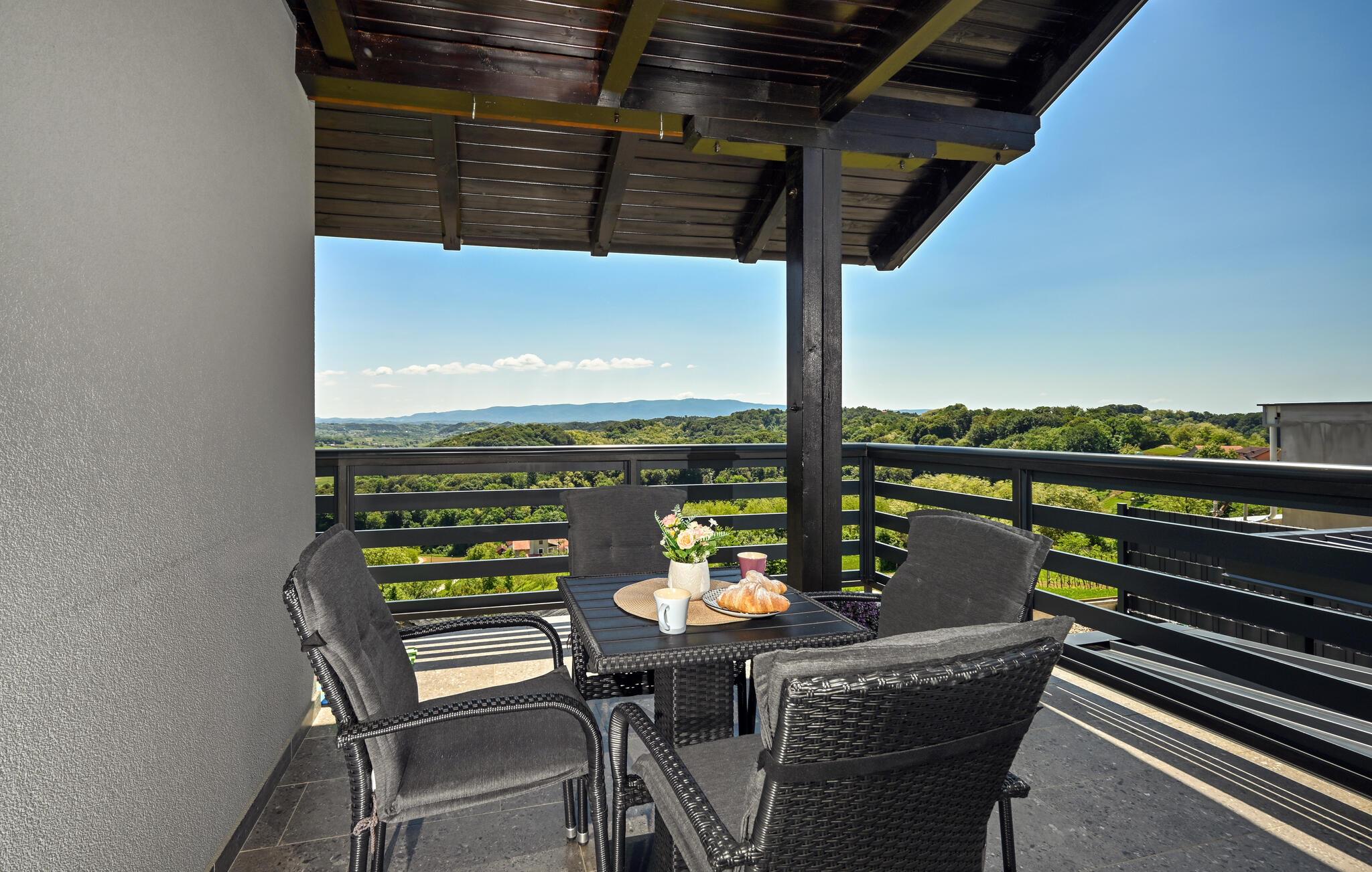 Dette kompakte og veludstyrede feriehus byder velkommen i fredelig og smuk natur nord for Zagreb.
