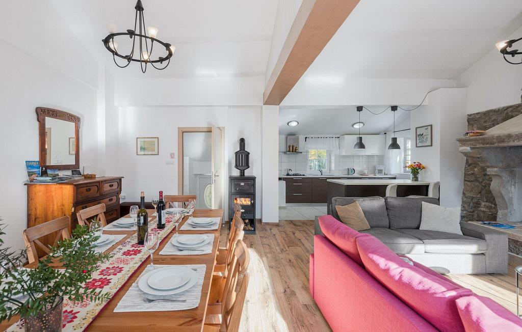 Vergessen Sie also alle alltäglichen Sorgen und lassen Sie sich verwöhnen von der unglaublich entspannenden Atmosphere dieser wunderschönen Landvilla.Villa Supljini liegt inmitten der idylischen Landschaft an den westlichen Hängen des wunderschönen Naturparks Ucka. Falls Sie sich an Radfahren und Wandern erfreuen, warten die herrlichen Berge auf Sie. Die Abenteurer finden hier einige der beliebtesten Freiklettern- und Gleitschirmfliegen-Stellen in Kroatien. Nur ein Paar Fahrminuten von der Villa befindet sich das historische Städtchen Boljun mit der mittelaterlichen Festung, bezauberndem alten Stadtkern und einem traditionellen Restaurant mit köstlichen lokalen Spezialitäten. 200 m von der Villa fließt der kleine Fluss Boljuncica, ideal für ein erfrischendes Bad in der Sommerhitze. Und wenn Sie sich nach kristallklarem Meer sehnen, steht Ihnen eine Vielfalt an Stränden nur cca. 30 Fahrminuten weg zur Verfügung, sowie die Perle der Adria – Opatija, mit lebendigem Sommertrubel und erstklassigen Restaurants.