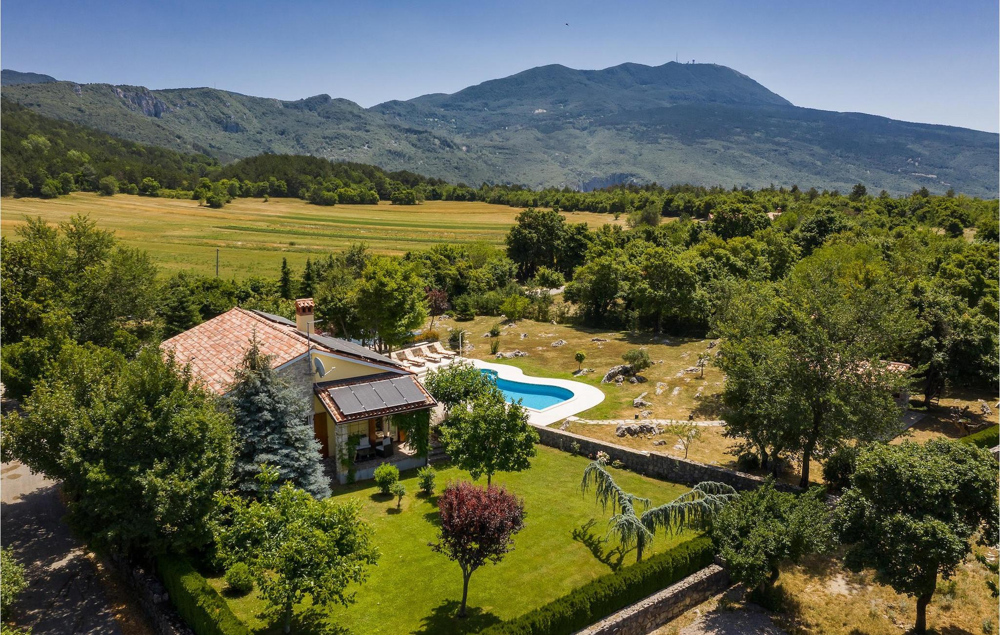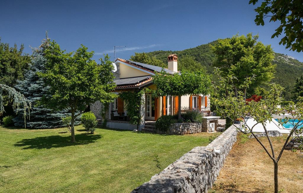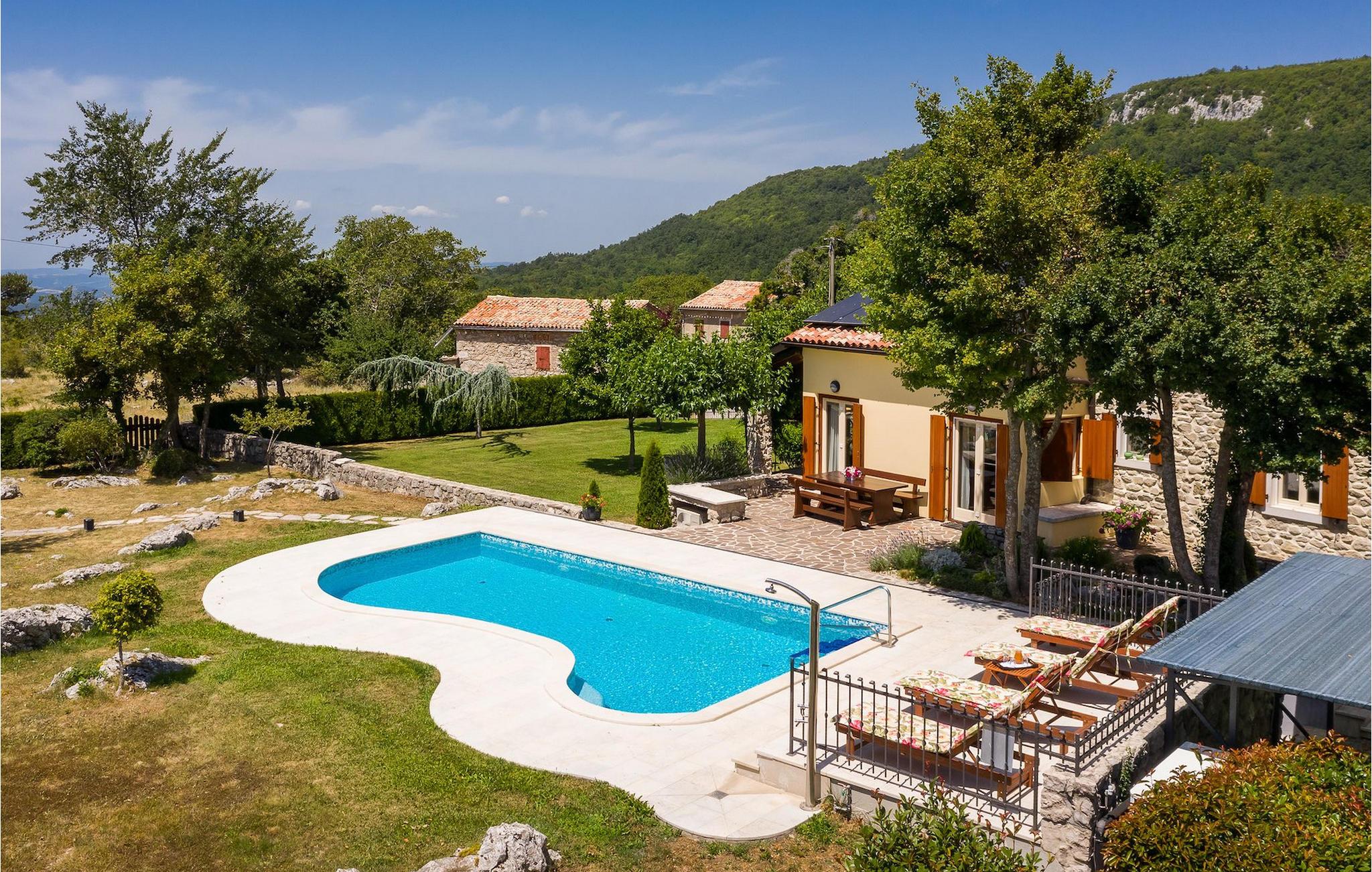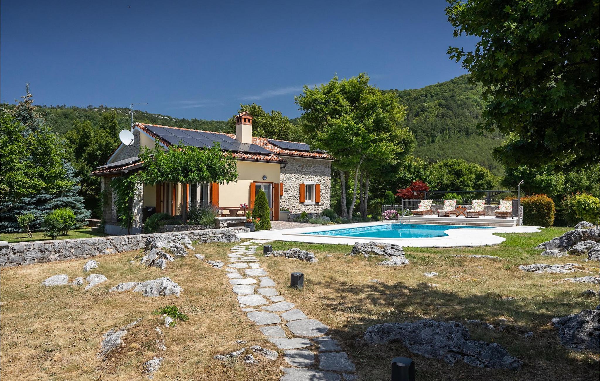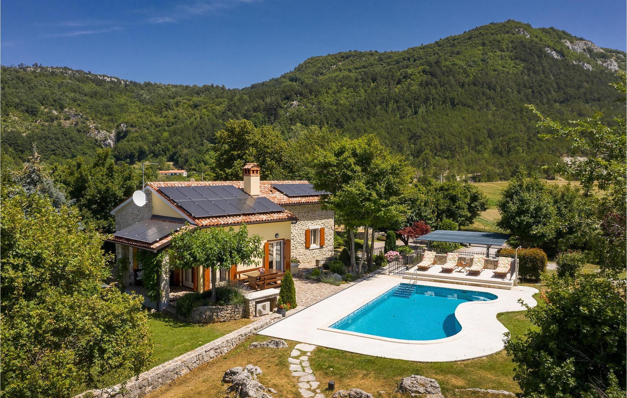 Dette velbeliggende charmerende hus ligger i hjertet af naturreservatet. Det er ideelt for folk, der leder efter et roligt tilflugtssted med smuk natur og luksusindkvartering. Omkring huset kan du nyde uforstyrret udsigt over den omkringliggende dal og bjerge. Fuldstændig afslapning og privatliv til din ideelle ferie. Vandre- og cykelelskere vil også være meget glade på dette sted med en række smukke stier i hele området. Huset byder på et fuldt udstyret køkken og en smukt indrettet rummelig spise- og opholdsstue. Stuen i åbent plan har en smuk pejs og satellit-tv. Der er også to soveværelser. Et dobbeltværelse og et dobbeltværelse.Du kan også bruge sovesofaen i stuen, hvis du har brug for ekstra senge. En barneseng og høj stol er til rådighed. Huset er fuldt airconditioneret og tilbyder bredbånd WiFi. Udendørs er der en stor pool og 4 højkvalitets liggestole, en smukt vedligeholdt have med nogle møbler og en overdækket spiseplads med en rustik pejs til al fresco spisning. Der er også en rustik taverna i kælderen. Denne villa er det sidste hus i en lille autentisk landsby kaldet Brest pod Uckom. Det ligger i en fredet naturpark med smuk natur omkring og uforstyrret udsigt over dalen og de omkringliggende bjerge. Du vil nyde freden og privatlivets fred. Det er ideelt til cykling og vandreture på de afmærkede cykel- og vandrestier. De istriske strande på østkysten er en kort køretur væk, ligesom hele den istriske halvø med det fremragende vejsystem. Den nærmeste by er Rijeka.
