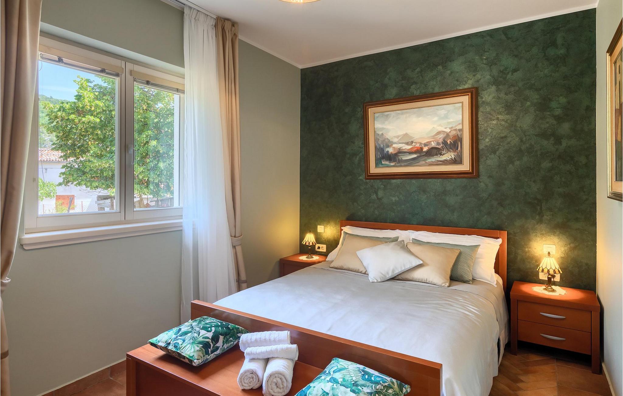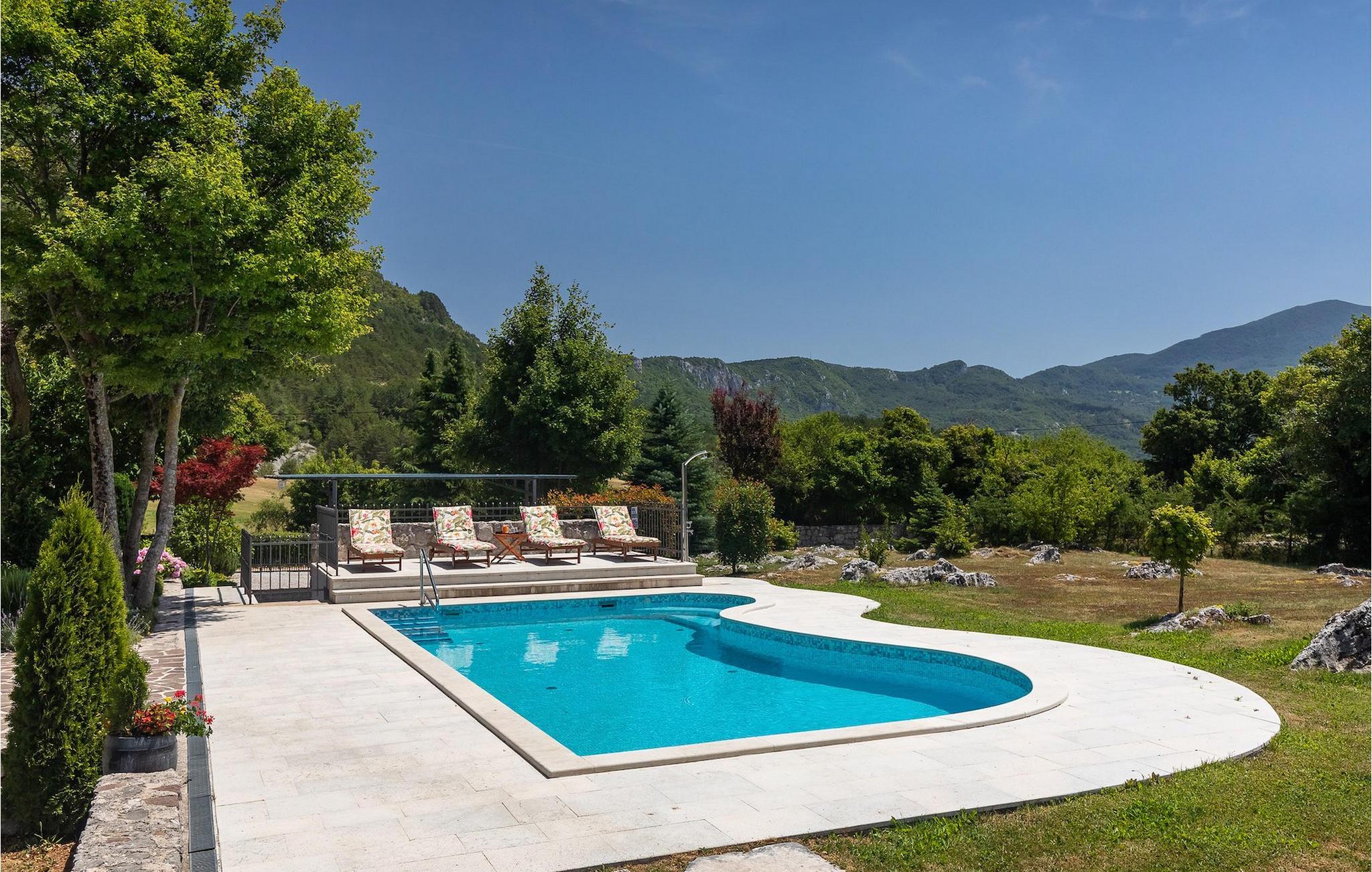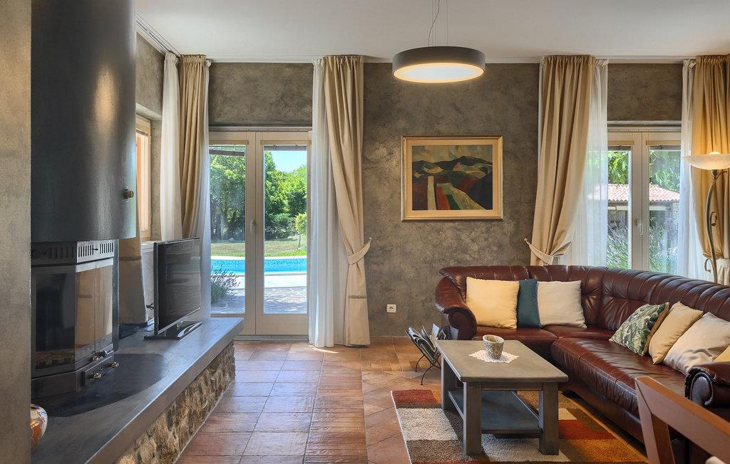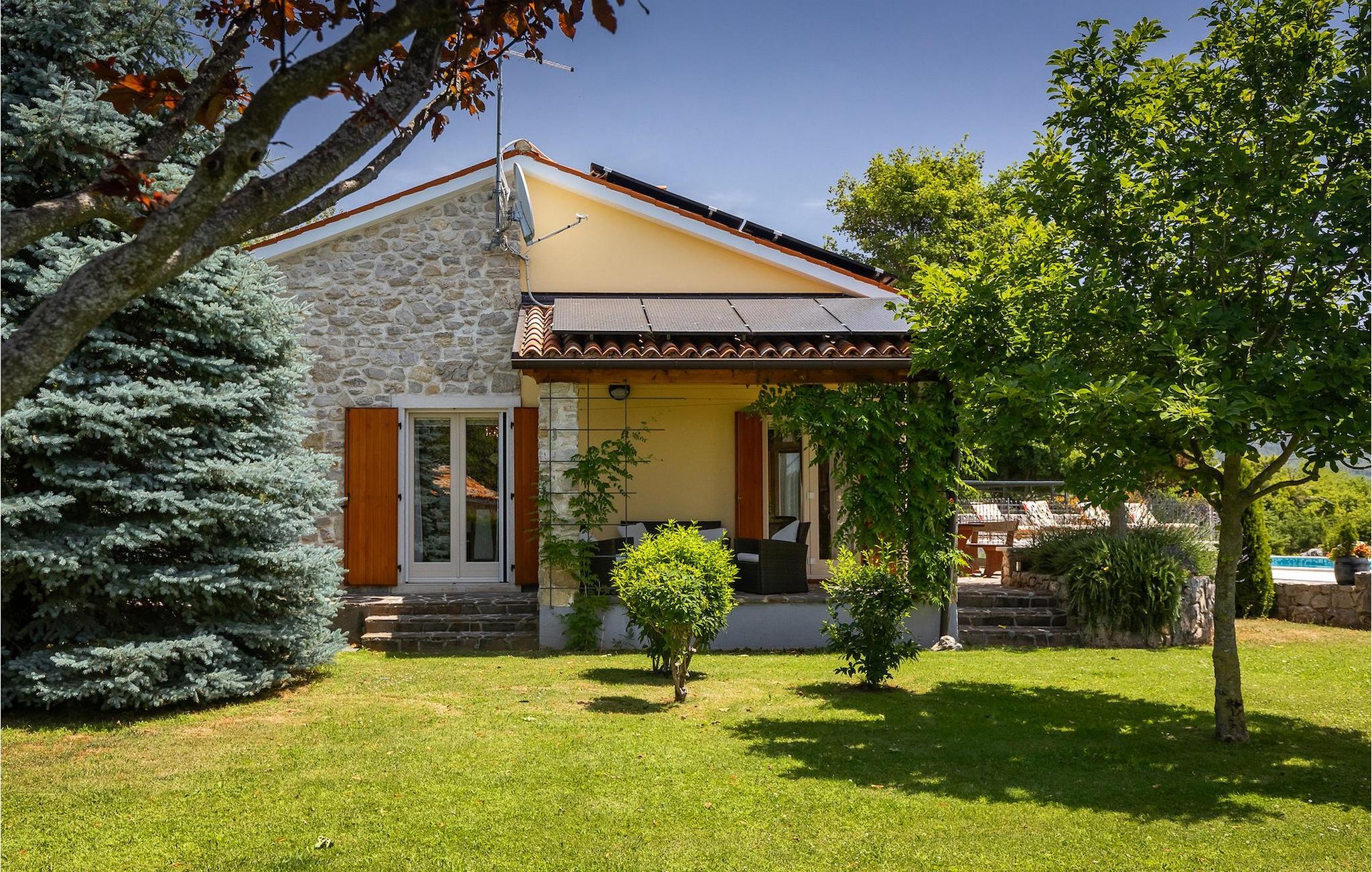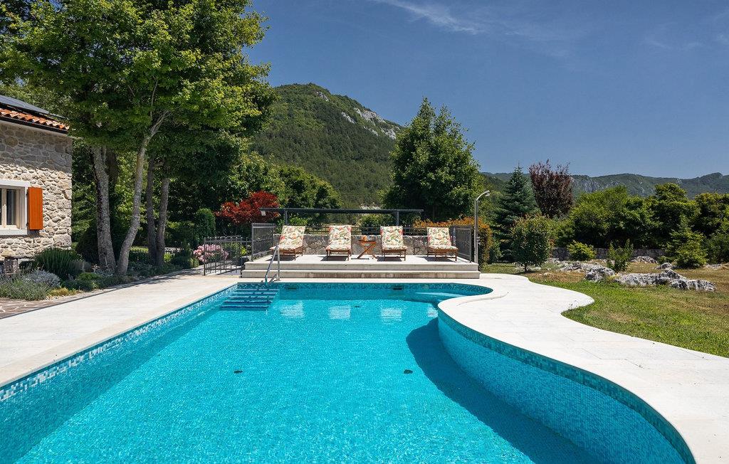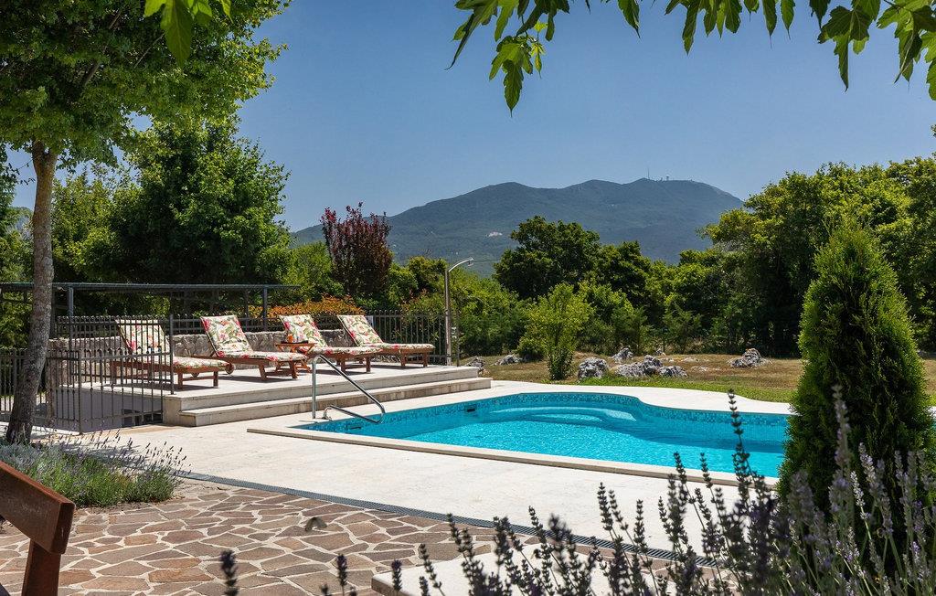 Dette velbeliggende charmerende hus ligger i hjertet af naturreservatet. Det er ideelt for folk, der leder efter et roligt tilflugtssted med smuk natur og luksusindkvartering. Omkring huset kan du nyde uforstyrret udsigt over den omkringliggende dal og bjerge. Fuldstændig afslapning og privatliv til din ideelle ferie. Vandre- og cykelelskere vil også være meget glade på dette sted med en række smukke stier i hele området. Huset byder på et fuldt udstyret køkken og en smukt indrettet rummelig spise- og opholdsstue. Stuen i åbent plan har en smuk pejs og satellit-tv. Der er også to soveværelser. Et dobbeltværelse og et dobbeltværelse.Du kan også bruge sovesofaen i stuen, hvis du har brug for ekstra senge. En barneseng og høj stol er til rådighed. Huset er fuldt airconditioneret og tilbyder bredbånd WiFi. Udendørs er der en stor pool og 4 højkvalitets liggestole, en smukt vedligeholdt have med nogle møbler og en overdækket spiseplads med en rustik pejs til al fresco spisning. Der er også en rustik taverna i kælderen. Denne villa er det sidste hus i en lille autentisk landsby kaldet Brest pod Uckom. Det ligger i en fredet naturpark med smuk natur omkring og uforstyrret udsigt over dalen og de omkringliggende bjerge. Du vil nyde freden og privatlivets fred. Det er ideelt til cykling og vandreture på de afmærkede cykel- og vandrestier. De istriske strande på østkysten er en kort køretur væk, ligesom hele den istriske halvø med det fremragende vejsystem. Den nærmeste by er Rijeka.