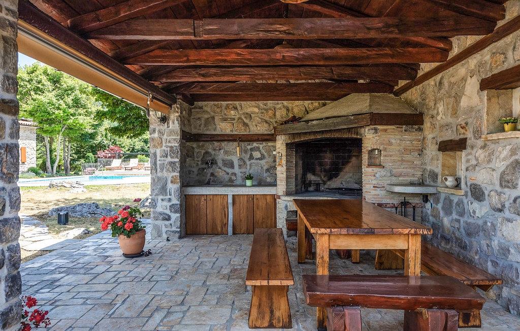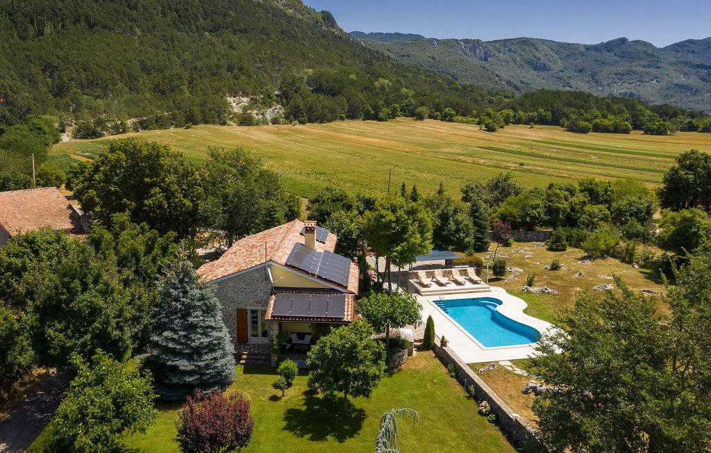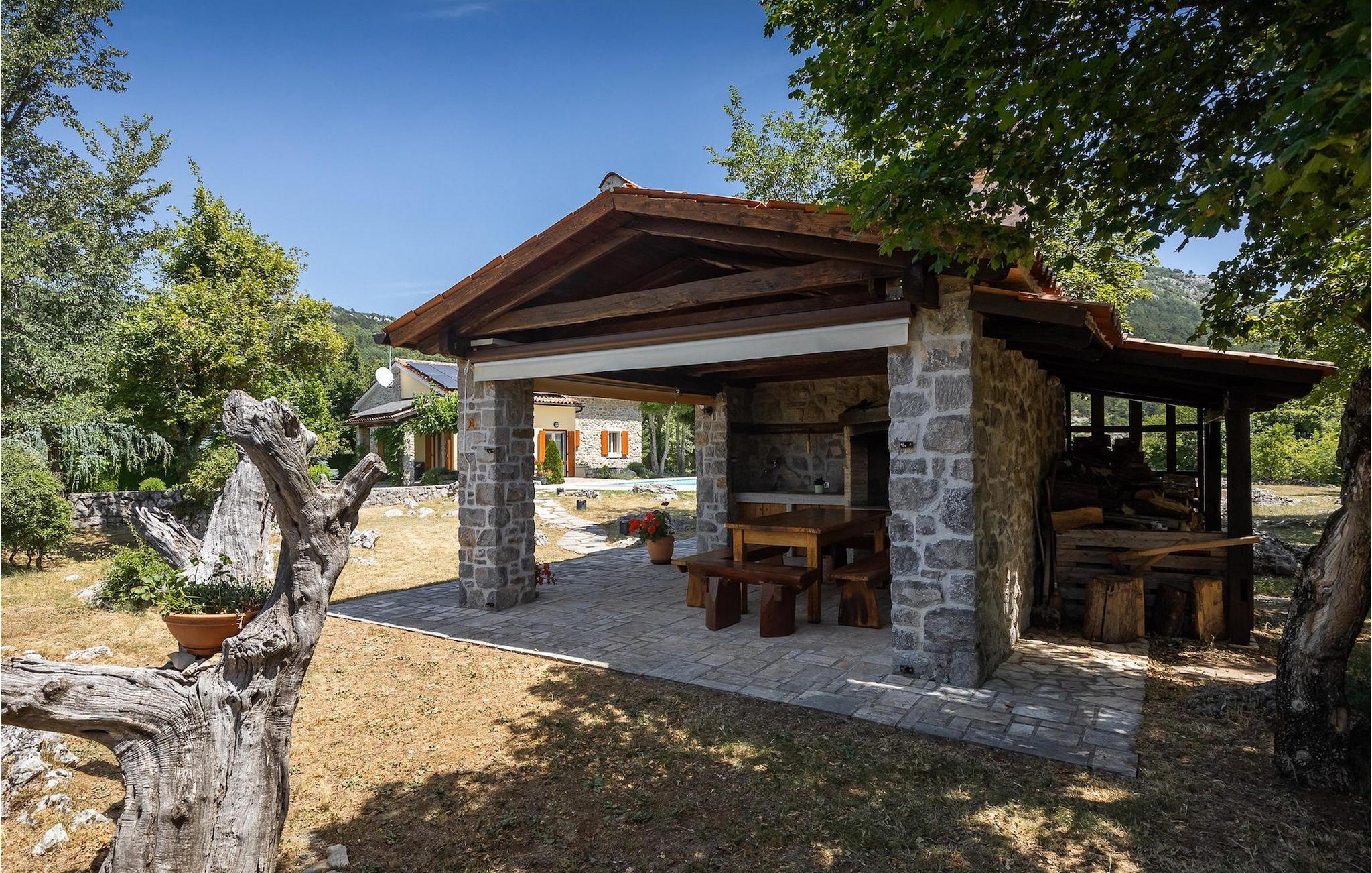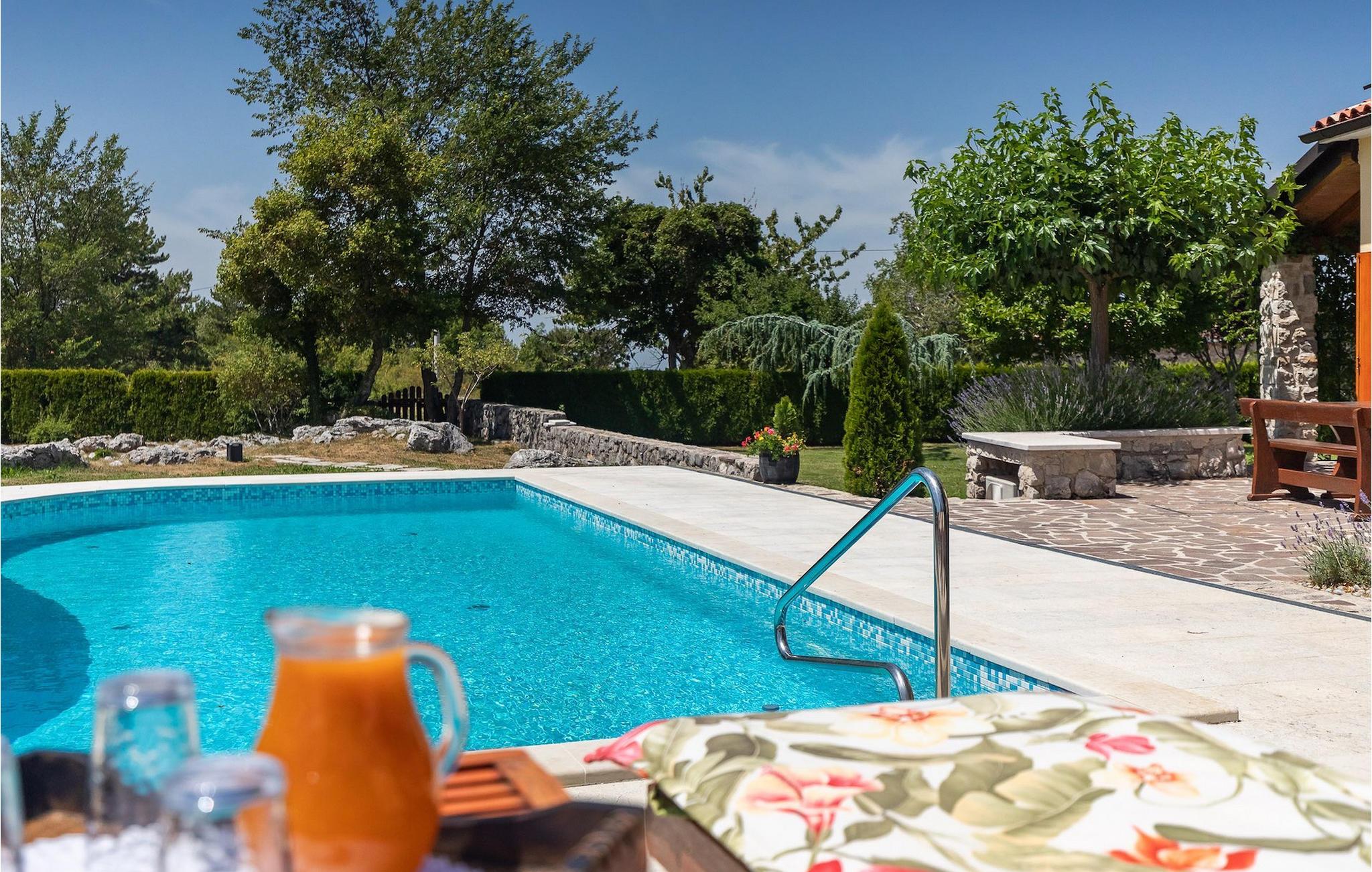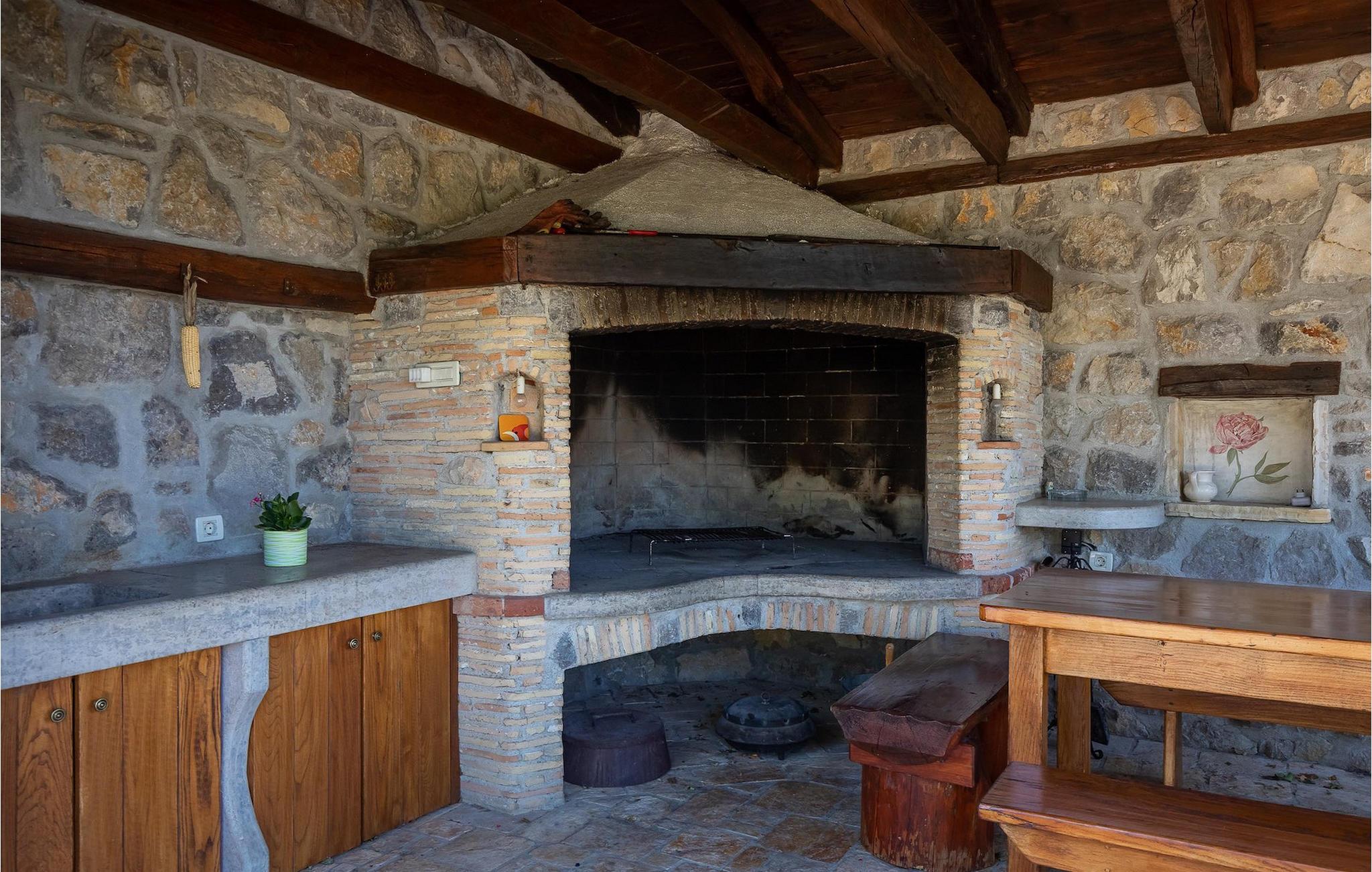 Dette velbeliggende charmerende hus ligger i hjertet af naturreservatet. Det er ideelt for folk, der leder efter et roligt tilflugtssted med smuk natur og luksusindkvartering. Omkring huset kan du nyde uforstyrret udsigt over den omkringliggende dal og bjerge. Fuldstændig afslapning og privatliv til din ideelle ferie. Vandre- og cykelelskere vil også være meget glade på dette sted med en række smukke stier i hele området. Huset byder på et fuldt udstyret køkken og en smukt indrettet rummelig spise- og opholdsstue. Stuen i åbent plan har en smuk pejs og satellit-tv. Der er også to soveværelser. Et dobbeltværelse og et dobbeltværelse.Du kan også bruge sovesofaen i stuen, hvis du har brug for ekstra senge. En barneseng og høj stol er til rådighed. Huset er fuldt airconditioneret og tilbyder bredbånd WiFi. Udendørs er der en stor pool og 4 højkvalitets liggestole, en smukt vedligeholdt have med nogle møbler og en overdækket spiseplads med en rustik pejs til al fresco spisning. Der er også en rustik taverna i kælderen. Denne villa er det sidste hus i en lille autentisk landsby kaldet Brest pod Uckom. Det ligger i en fredet naturpark med smuk natur omkring og uforstyrret udsigt over dalen og de omkringliggende bjerge. Du vil nyde freden og privatlivets fred. Det er ideelt til cykling og vandreture på de afmærkede cykel- og vandrestier. De istriske strande på østkysten er en kort køretur væk, ligesom hele den istriske halvø med det fremragende vejsystem. Den nærmeste by er Rijeka.