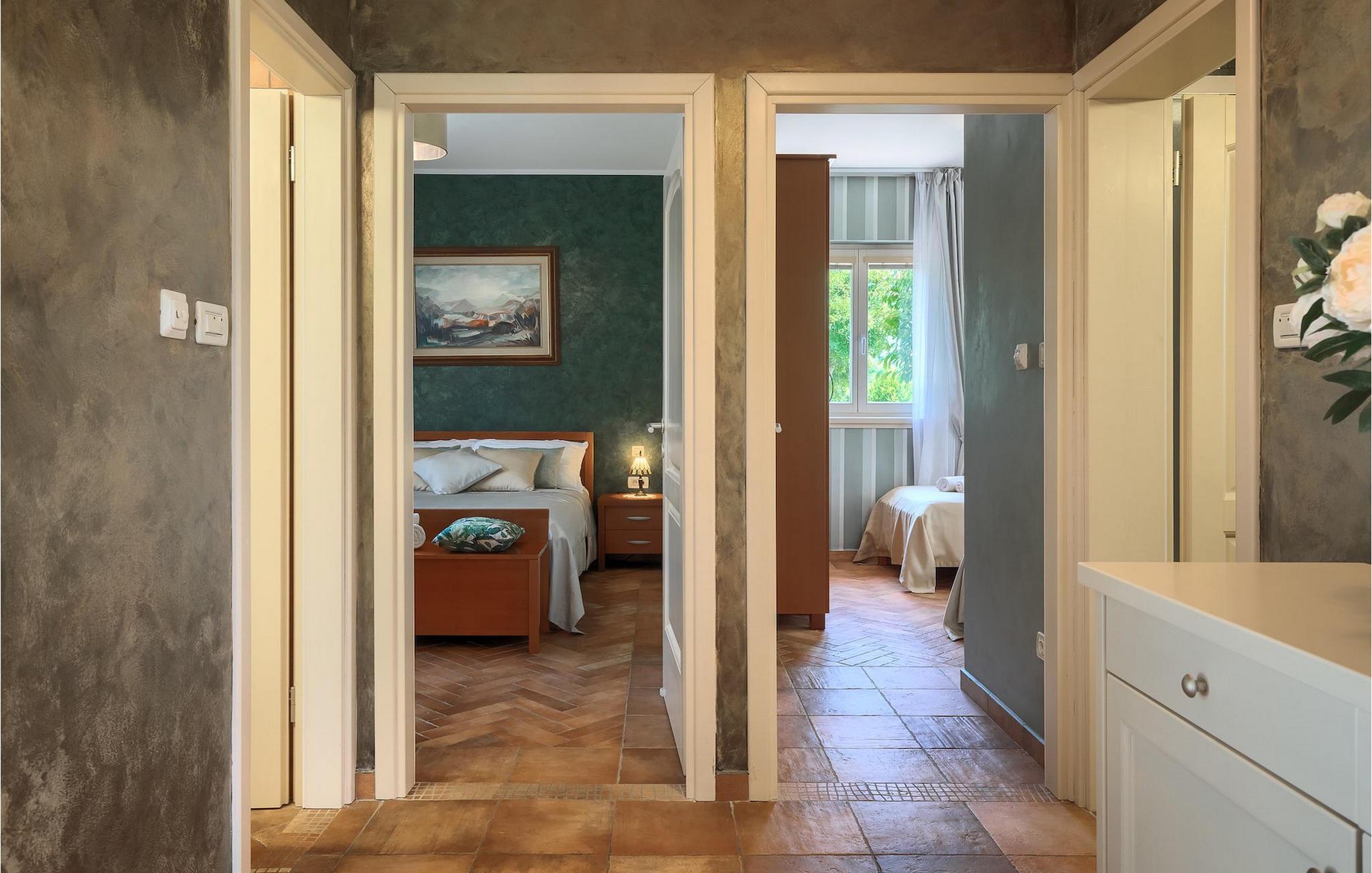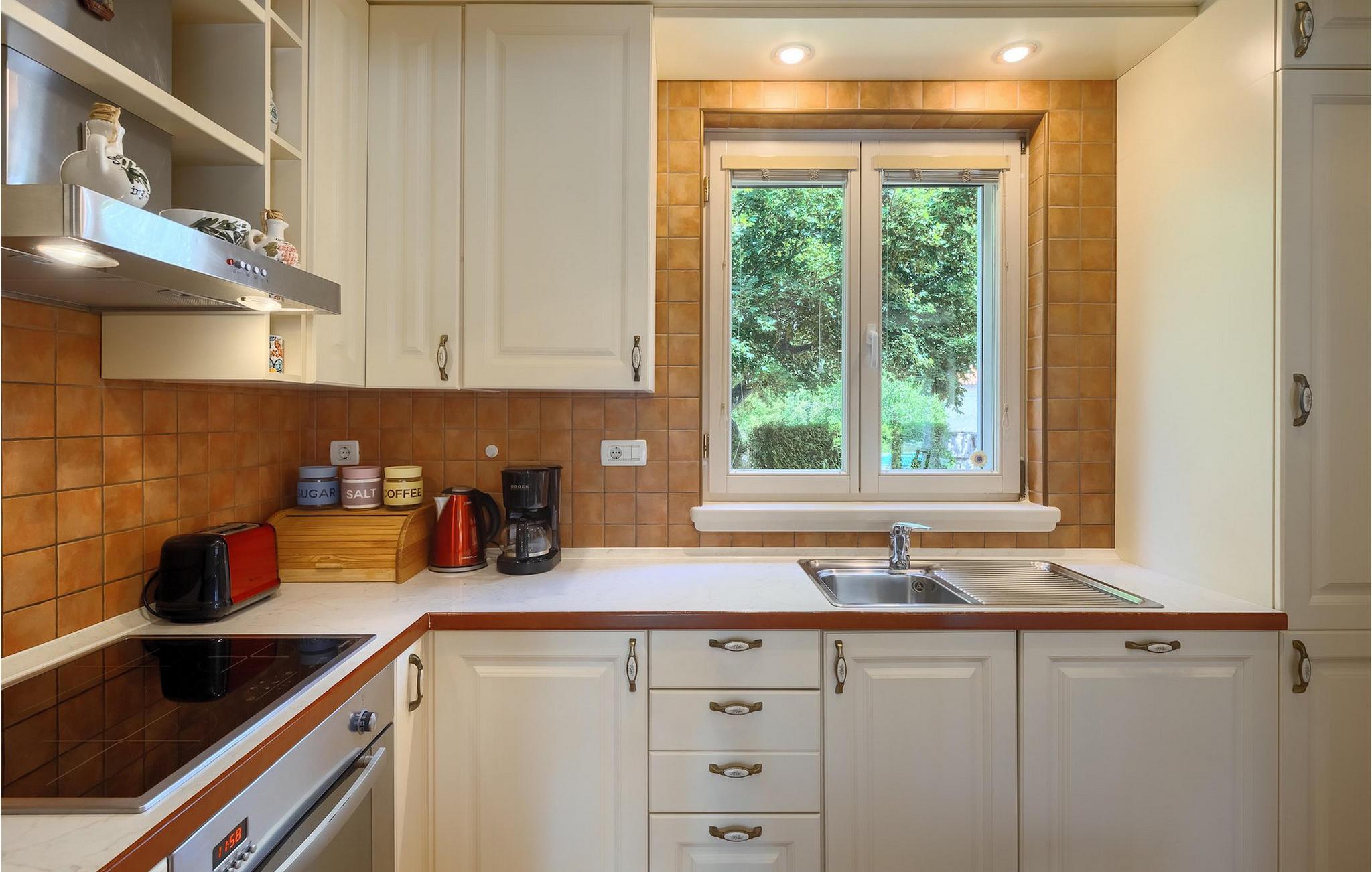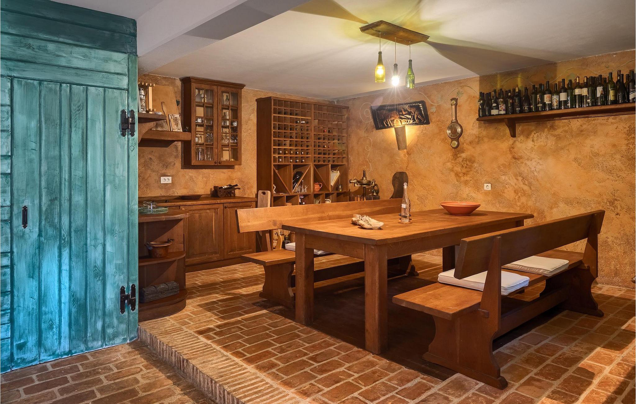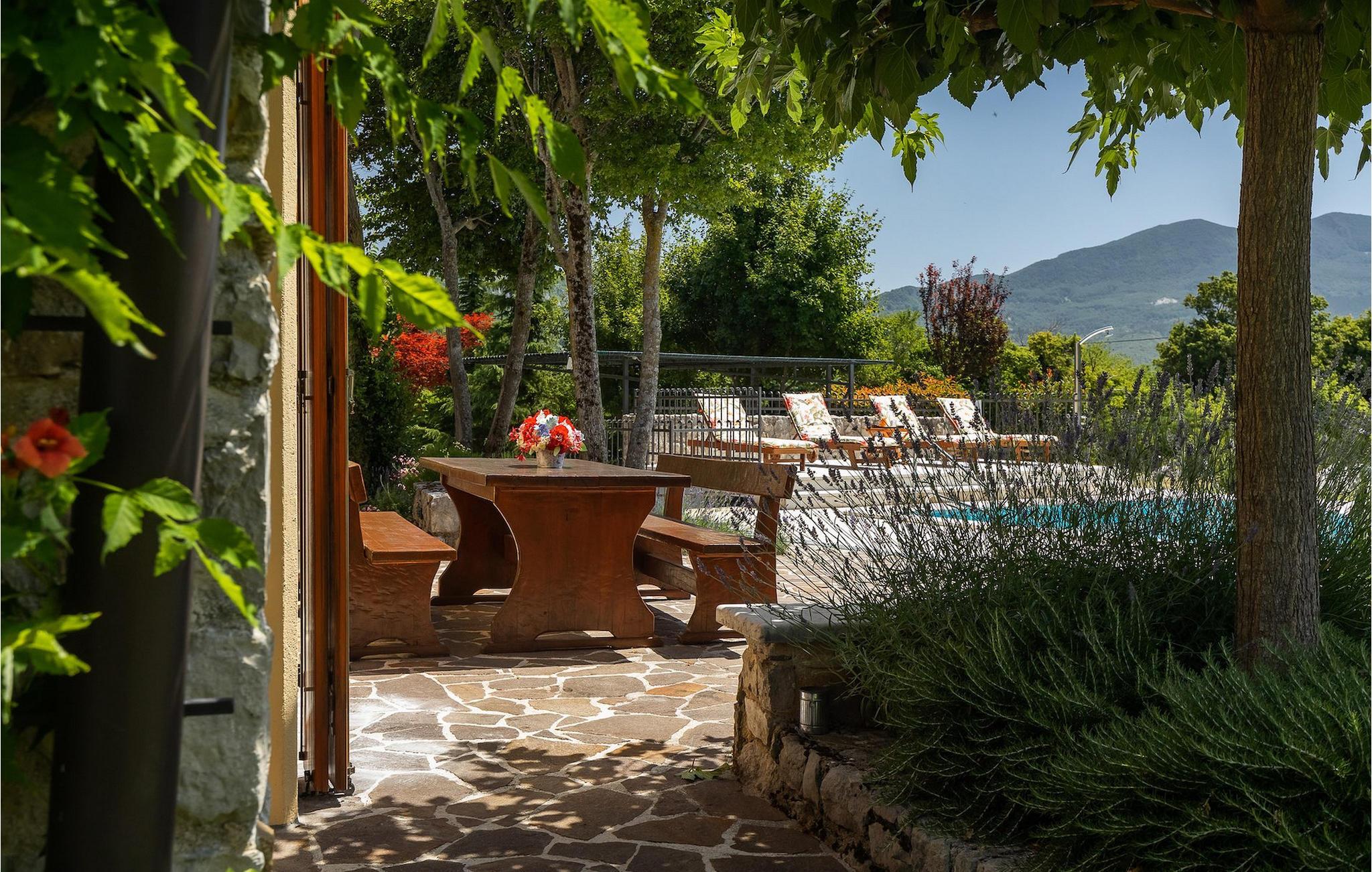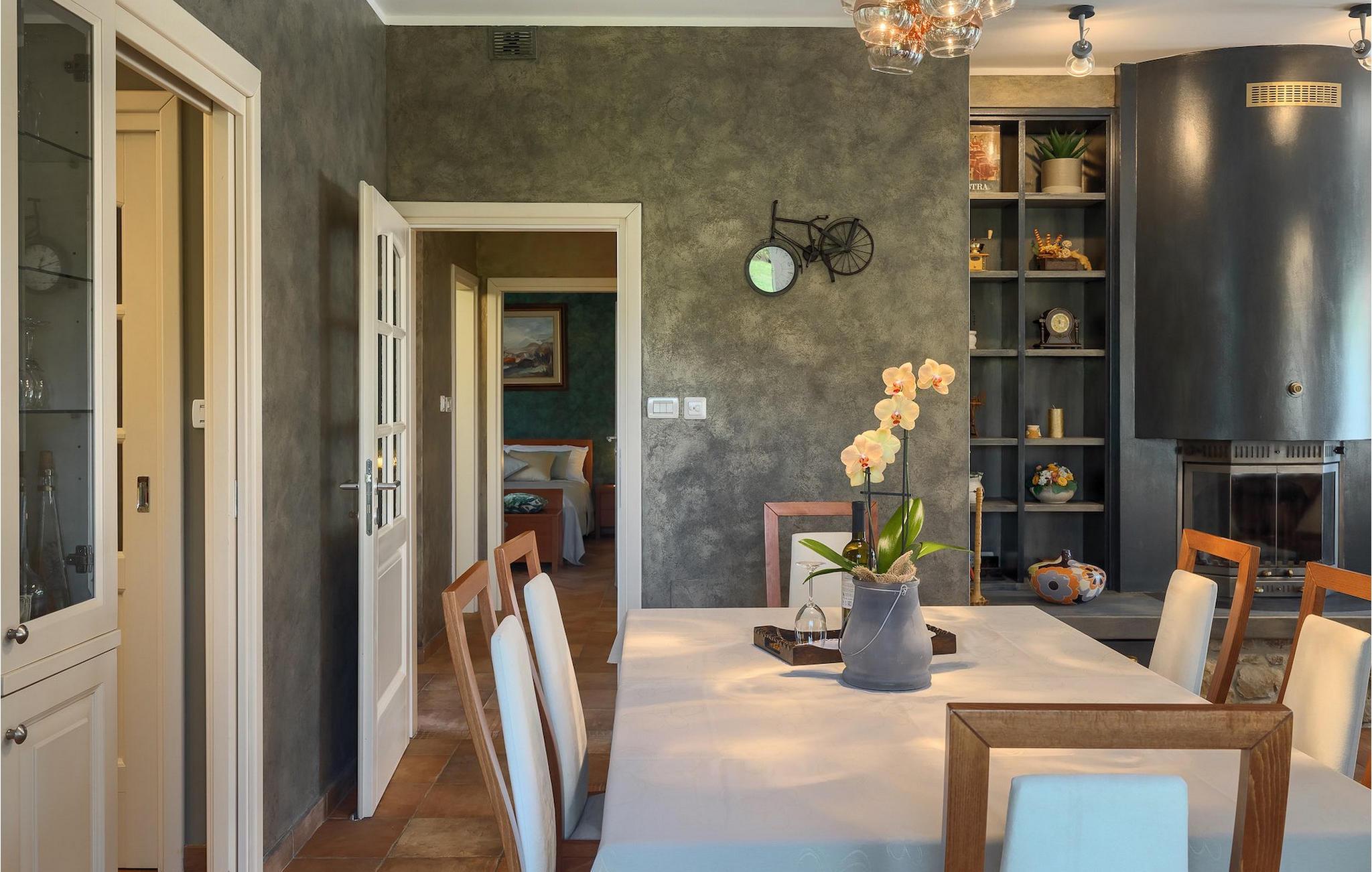 Dette velbeliggende charmerende hus ligger i hjertet af naturreservatet. Det er ideelt for folk, der leder efter et roligt tilflugtssted med smuk natur og luksusindkvartering. Omkring huset kan du nyde uforstyrret udsigt over den omkringliggende dal og bjerge. Fuldstændig afslapning og privatliv til din ideelle ferie. Vandre- og cykelelskere vil også være meget glade på dette sted med en række smukke stier i hele området. Huset byder på et fuldt udstyret køkken og en smukt indrettet rummelig spise- og opholdsstue. Stuen i åbent plan har en smuk pejs og satellit-tv. Der er også to soveværelser. Et dobbeltværelse og et dobbeltværelse.Du kan også bruge sovesofaen i stuen, hvis du har brug for ekstra senge. En barneseng og høj stol er til rådighed. Huset er fuldt airconditioneret og tilbyder bredbånd WiFi. Udendørs er der en stor pool og 4 højkvalitets liggestole, en smukt vedligeholdt have med nogle møbler og en overdækket spiseplads med en rustik pejs til al fresco spisning. Der er også en rustik taverna i kælderen. Denne villa er det sidste hus i en lille autentisk landsby kaldet Brest pod Uckom. Det ligger i en fredet naturpark med smuk natur omkring og uforstyrret udsigt over dalen og de omkringliggende bjerge. Du vil nyde freden og privatlivets fred. Det er ideelt til cykling og vandreture på de afmærkede cykel- og vandrestier. De istriske strande på østkysten er en kort køretur væk, ligesom hele den istriske halvø med det fremragende vejsystem. Den nærmeste by er Rijeka.