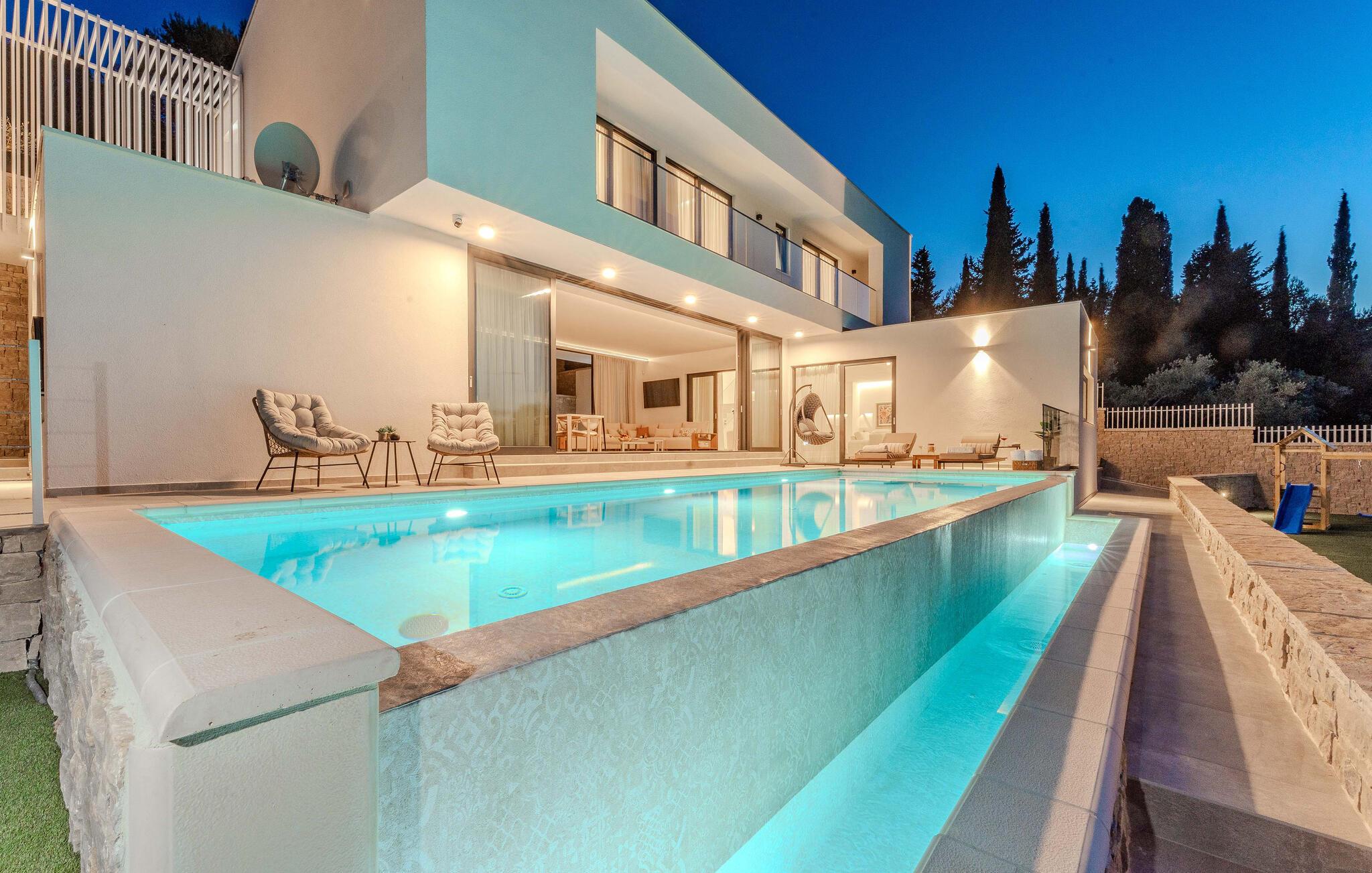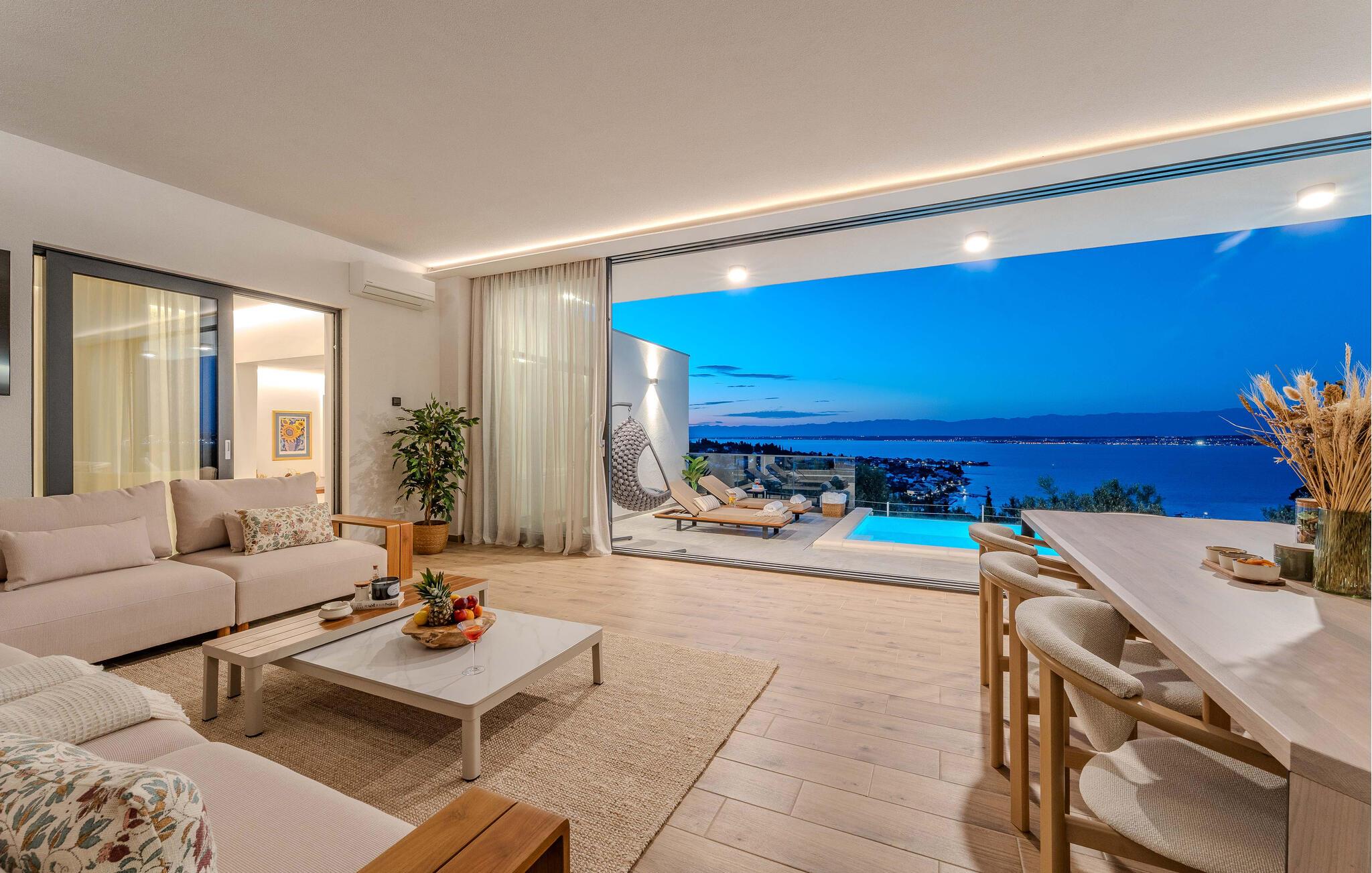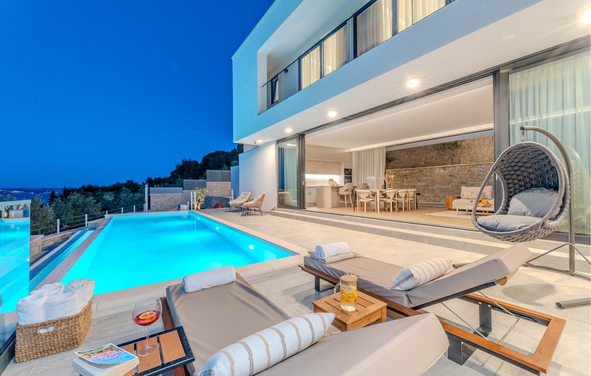 Denne rummelige og luksuriøst møblerede villa forkæler jer med alt det ekstra, I kan ønske jer til en uforglemmelig ferie med gode venner eller familie. Nyd lækre måltider med havudsigt, stream en spændende serie i den lyse, elegante opholdsstue, og lad den behagelige brise blæse gennem de stilfuldt møblerede værelser.