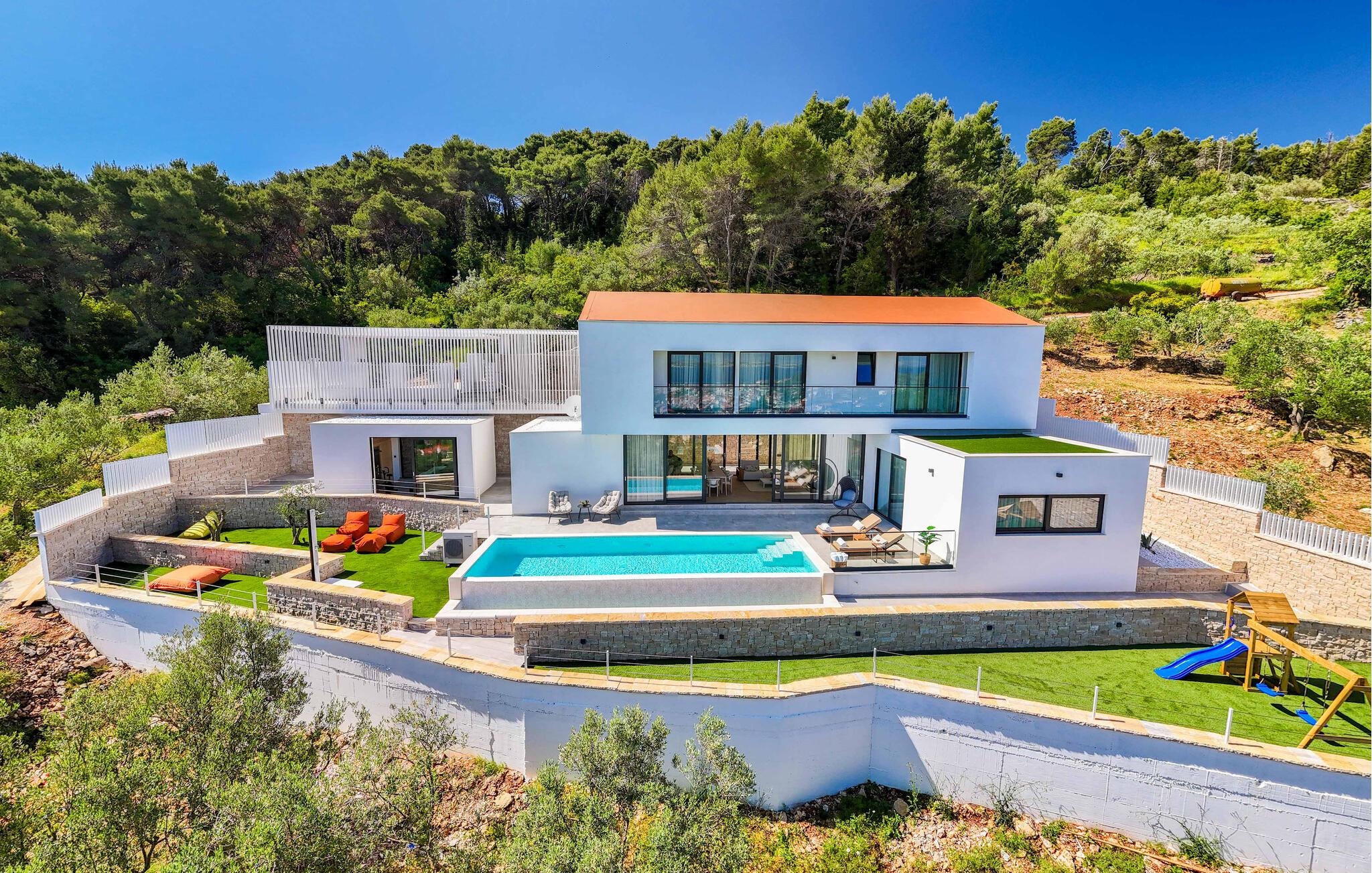 Glæd jer til en drømmeferie i dette sensationelle feriehus med pool og betagende panoramaudsigt over havet.