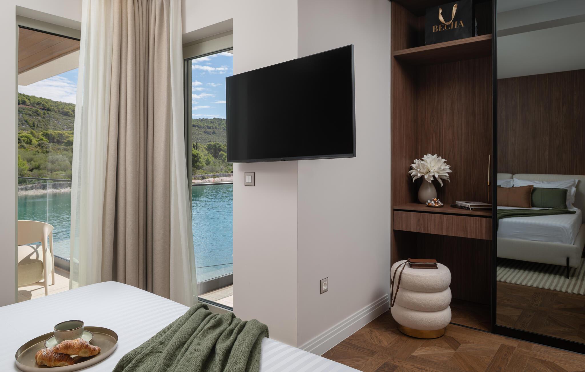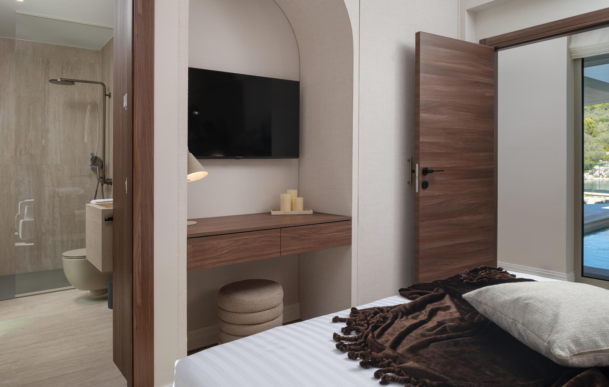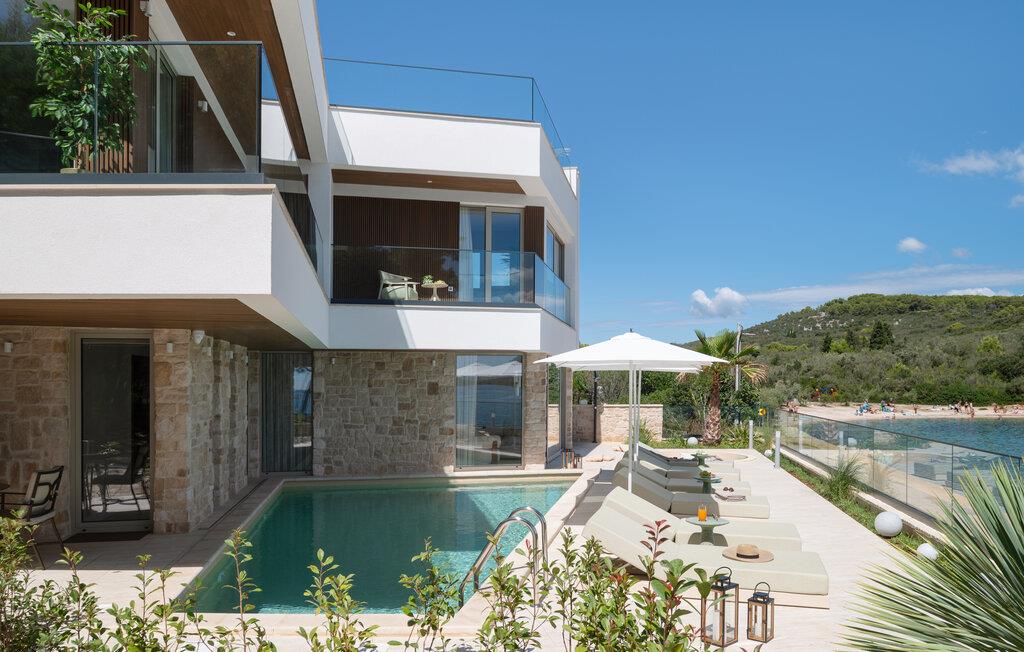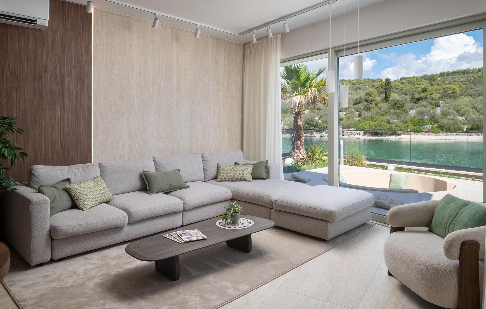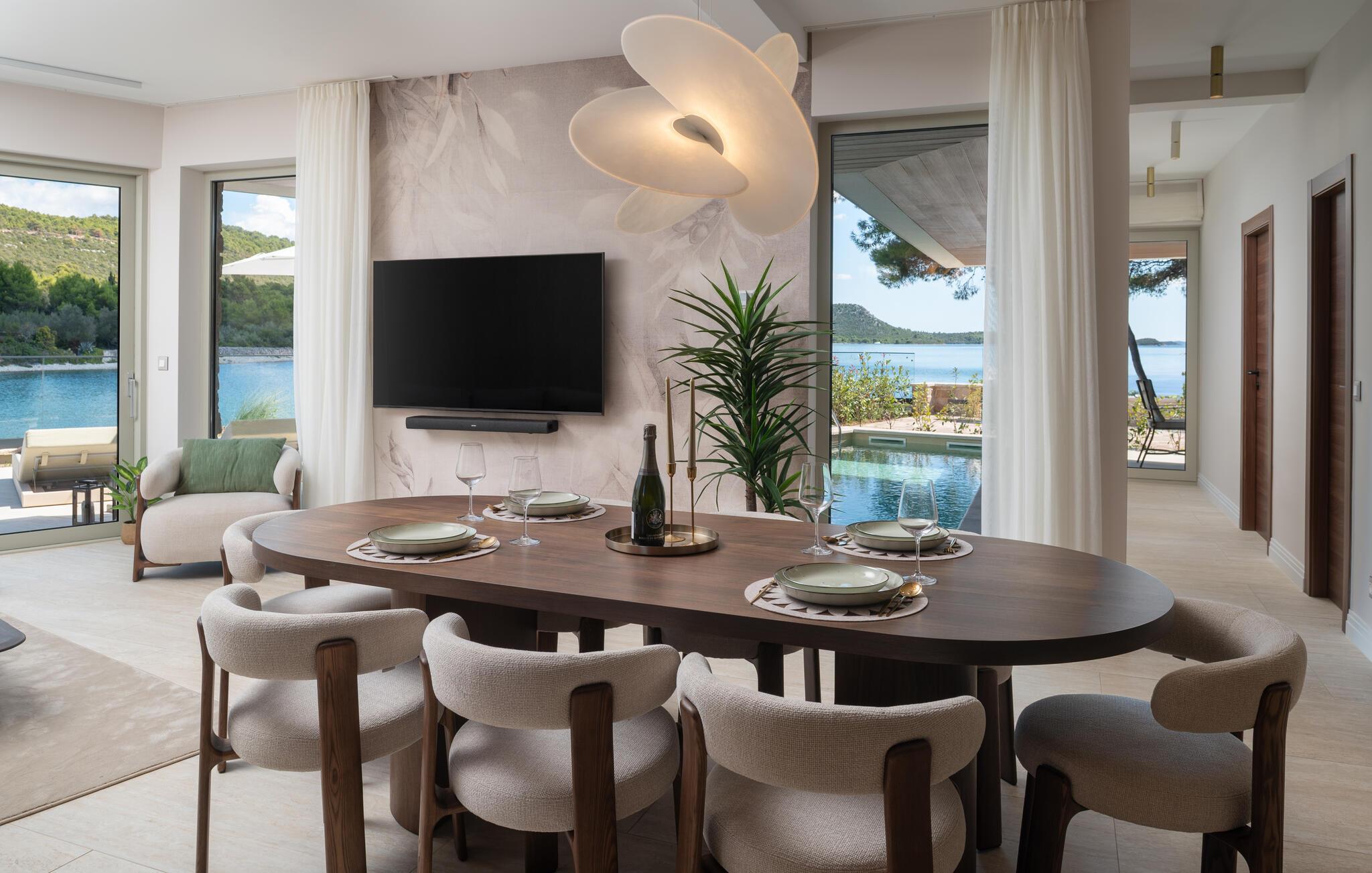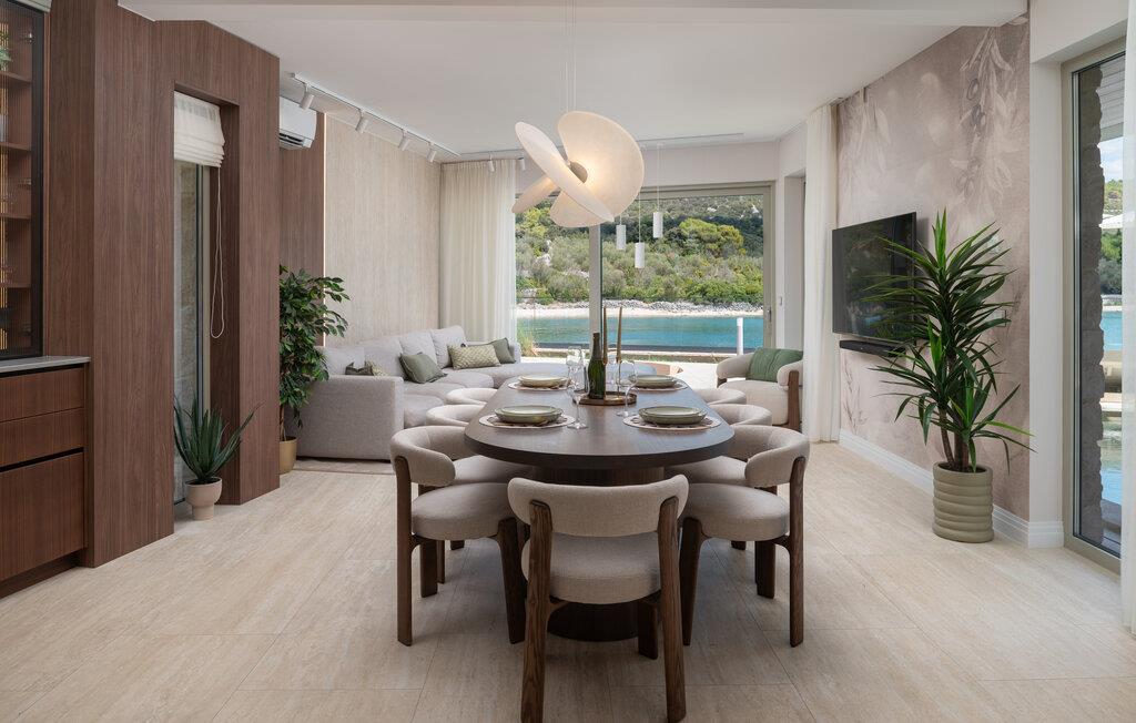 Velkommen til denne fortryllende villa, der har masser af plads og et smagfuldt møbleret interiør. Nyd hyggelige madlavningsaftener og stilfulde måltider i en hyggelig atmosfære, hvor møbler af høj kvalitet sikrer maksimal komfort. Snak over et glas vin med udsigt over det turkisblå vand, og stream en god serie efter en lang dag.
