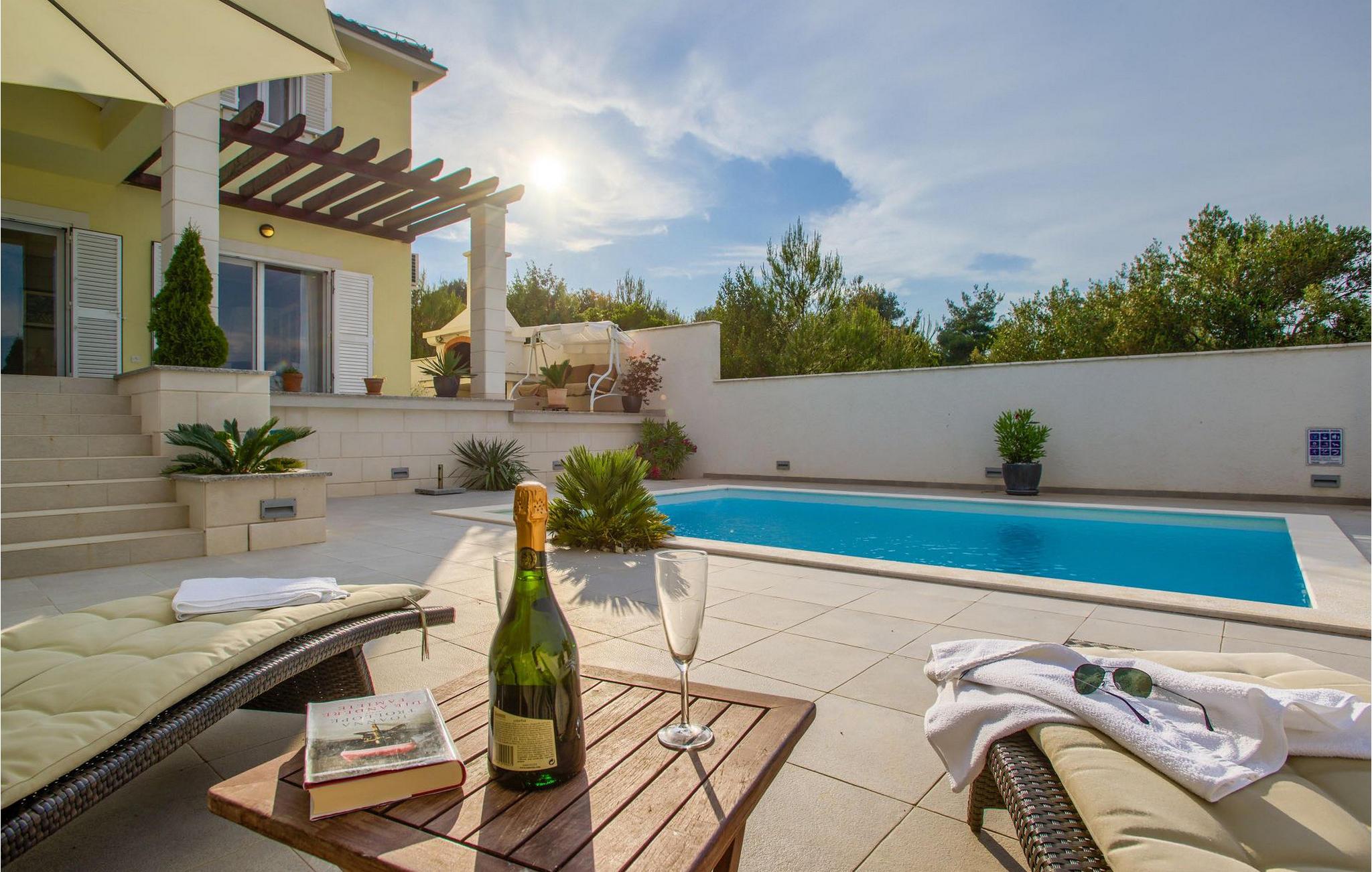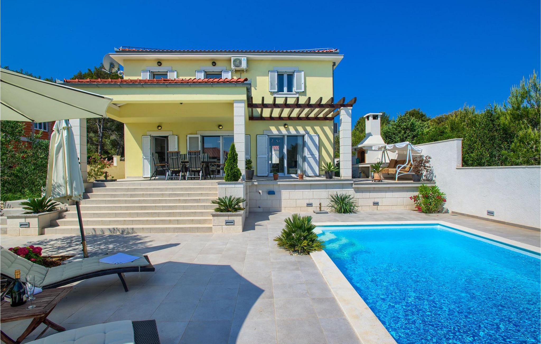Den smukke Villa Tatijana ligger på øen Ugljan, i umiddelbar nærhed af havet. Den kan rumme op til 8 personer og er ideel til familier, vennegrupper eller par. Udearealet byder på en velholdt have dekoreret med middelhavsplanter, en privat pool med liggestole og en fantastisk havudsigt, som du helt sikkert vil nyde! Der er en overdækket terrasse og en grill til din rådighed - perfekt til at tilberede lækre specialiteter og tilbringe sommeraftenen med dine kære. Den åbne plan stueetagen består af et fuldt udstyret køkken med spiseplads og en stue. Så snart du træder ind i rummet, vil du bemærke den stilrene indretning med enkle farver og pejsen, der giver rummet en hyggelig atmosfære. Der er også fire komfortable soveværelser (et i stueetagen og tre på første sal) og to badeværelser. Bordtennis og dart er til rådighed. Den fuldt klimatiserede villa har internetadgang, privat parkering til fire biler, og ejendommen er fuldt indhegnet. Villa Tatijana er det perfekte valg, hvis du ønsker at tilbringe din afslappende ferie nær havet. Du vil føle dig hjemme her! Villa er beliggende i Kukljica, en lille landsby på øen Ugljan. Fra Zadar er der daglige forbindelser til øen Ugljan med færge til havnen i landsbyen Preko. Zadar er en gammel by med historisk og kulturel arv, der er værd at se. Den berømte Alfred Hitchcock sagde, at Zadar har den smukkeste solnedgang i verden - gå ikke glip af det! Den gamle bydel i Zadar byder på monumenter fra oldtiden, middelalderen og renæssancen, og i dag er den berømt for symfoni af Havorgelet og lysinstallationen "Pozdrav Suncu" (Greeating the Sun). I Kukljica finder du tætte fyrreskove, sand- og klippestrande og det krystalklare Adriaterhav! Kukljica er perfekt til daglige ture til nationalparken Telašcica og nationalparken Kornati. Hvis du leder efter en mere aktiv ferie, så gå ikke glip af vandre- og cykelstier.