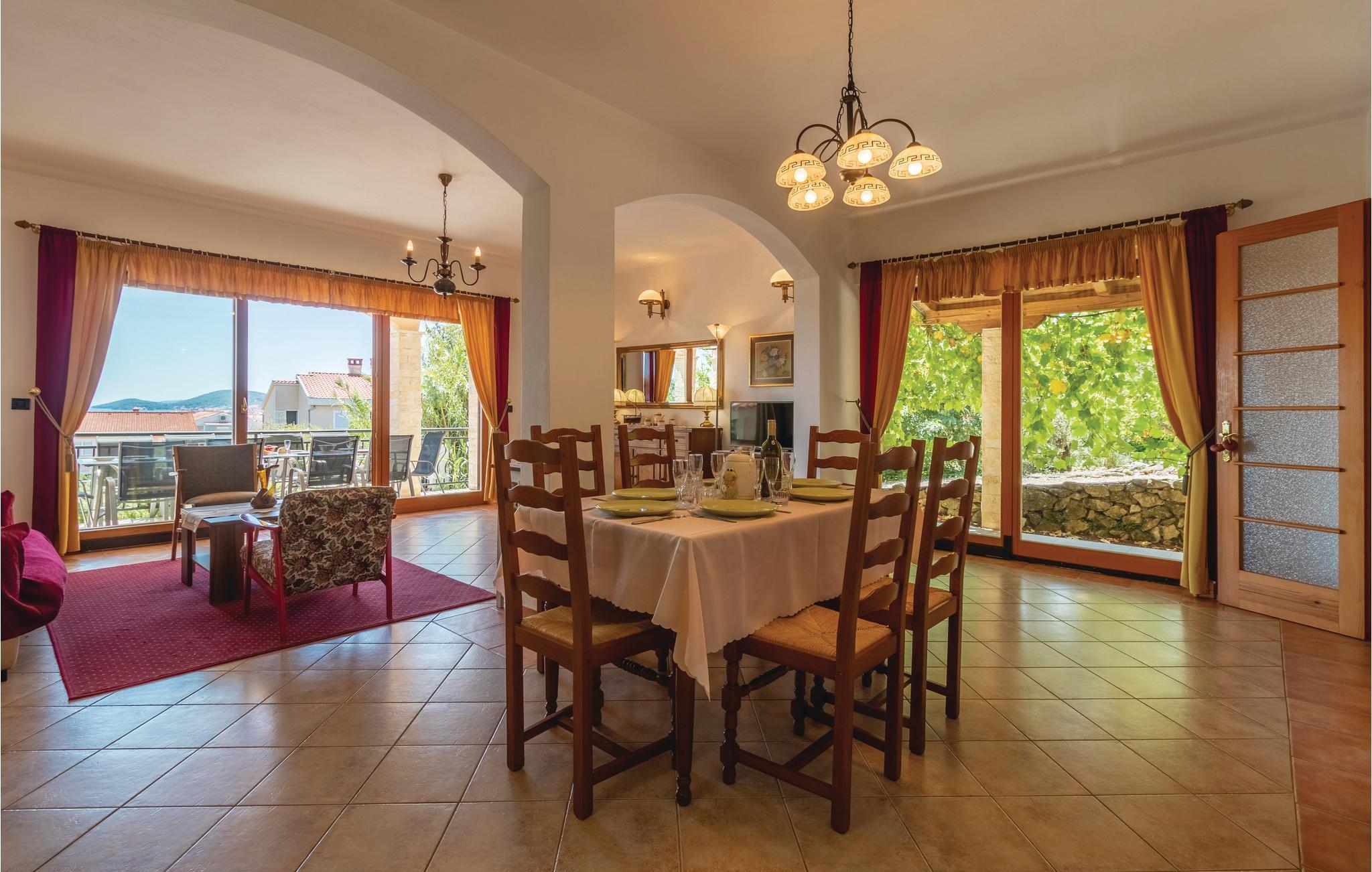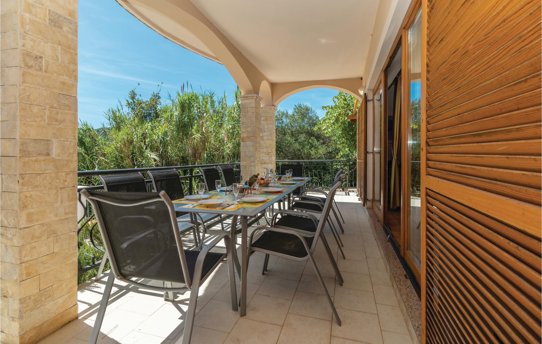 Dette rummelige feriehus er bygget i klassisk middelhavs-stil, og består af 3 boliger. Fra terrasserne er der en fantastisk udsigt over havet, Zadar og øen Galovac. Husets parkeringsplads ligger ca. 60m fra huset. Prøv de mange lokale restauranter der er i byen Preko, der i sommermånederne er en meget levende by. Øen Ugljan er kendt for sine fantastisk flotte klippe- og sandstrande. Tag på en dykkertur eller besøg den smukkeste øgruppe i verden - Nationalparken i Kornati. Ugljan har bro-forbindelse til øen Pasman, der også er en meget smuk ø. Fra Pasman er der færge-forbindelse til Beograd og fastlandet - der er med andre utallige udflugtsmuligheder her. Det er også let, at komme med færge til den spændende by Zadar. Zadar har mange interessante kultur- og kunstskatte. På Zadars promenade finder i de berømte kunstværker: 'Havets orgel' og 'monument til solen'.