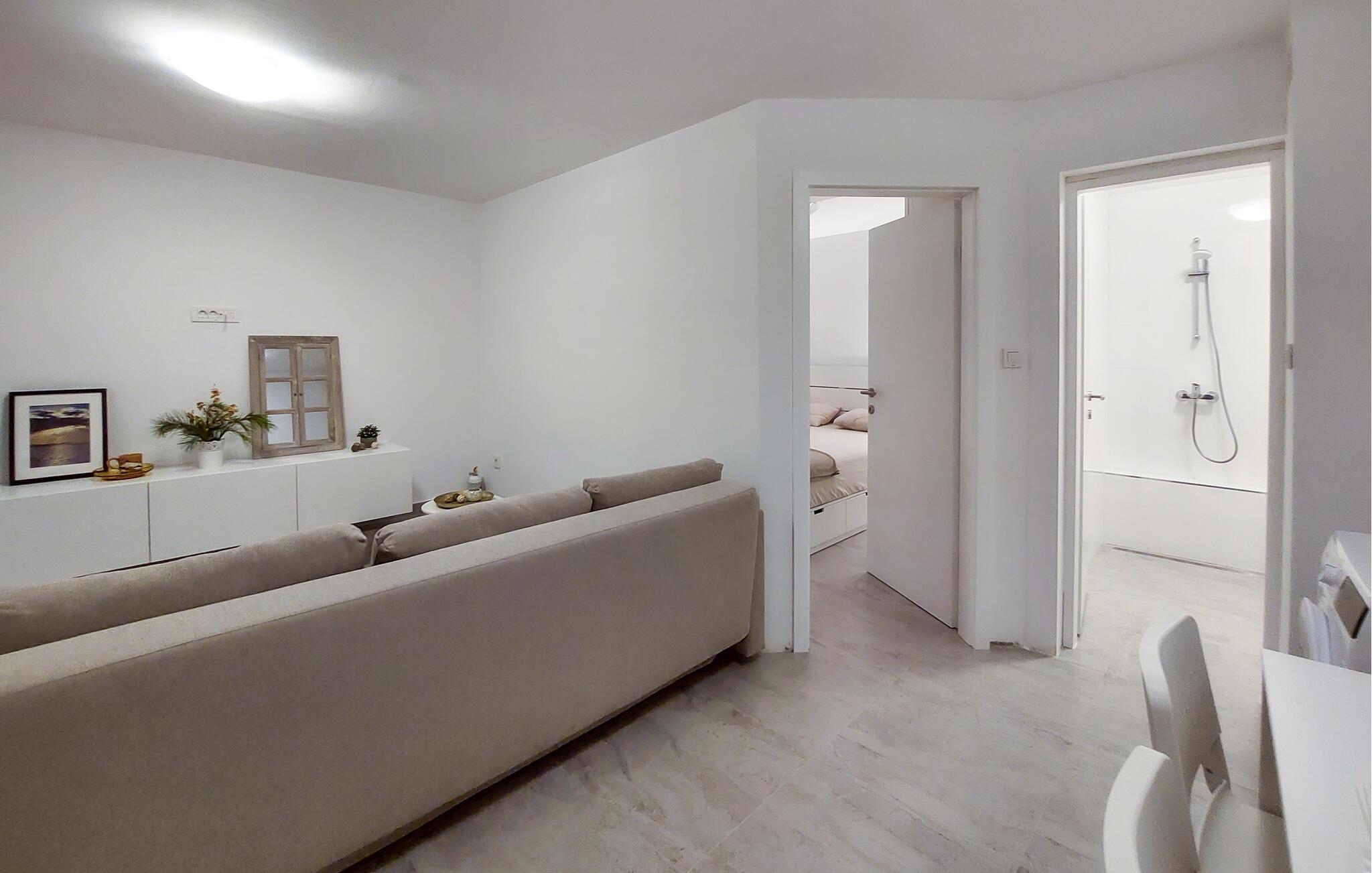 Denne komfortable ferielejlighed byder jer velkommen kun få skridt fra havet, hvor I kan nyde en afslappende pause ved Adriaterhavet. Indenfor kan I forvente en venlig, diskret møbleret atmosfære med moderne accenter. Efter lange dage på stranden kan I slappe af på det rummelige sofaområde, streame en spændende serie eller arrangere en hyggelig spilleaften.