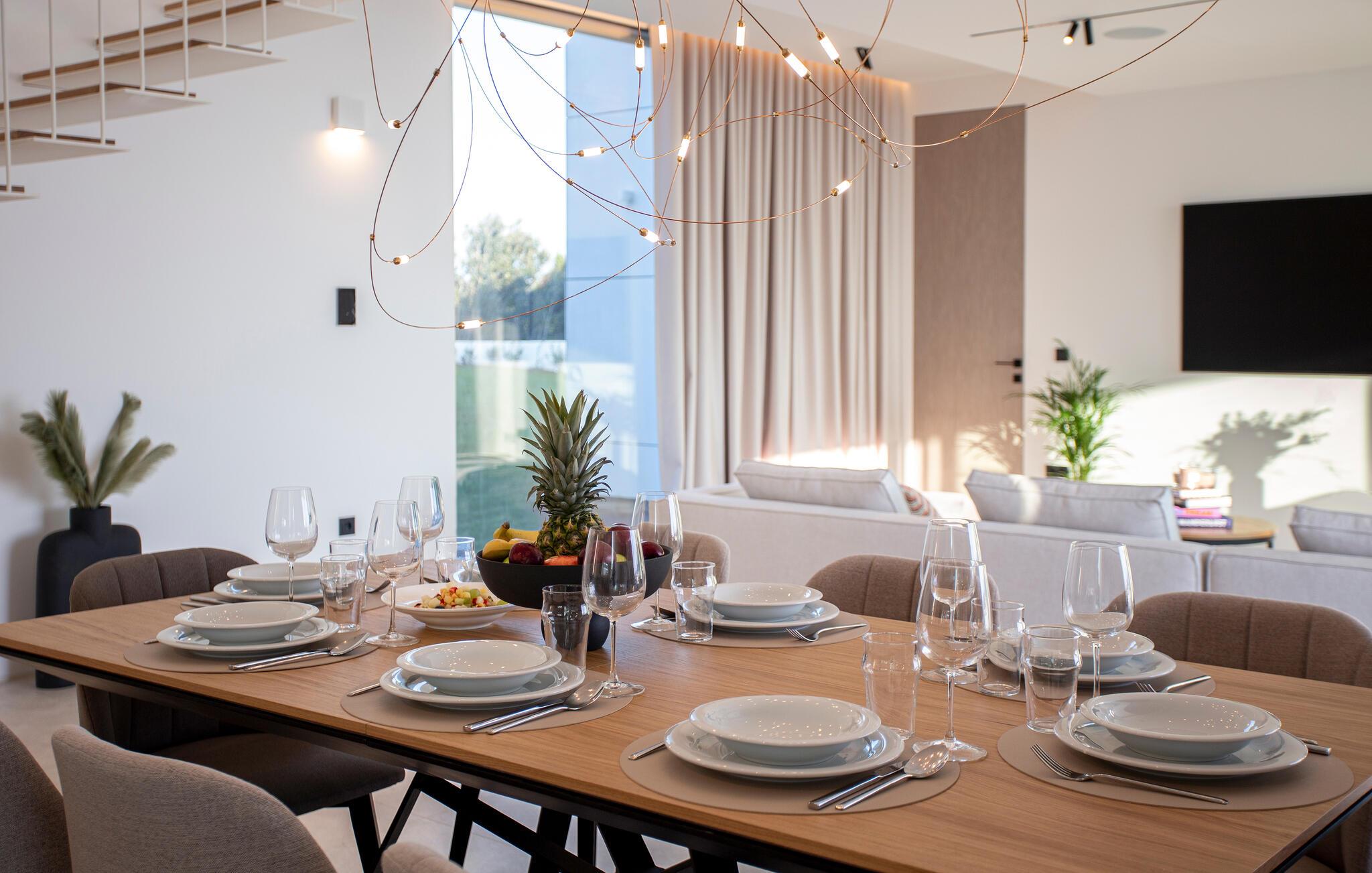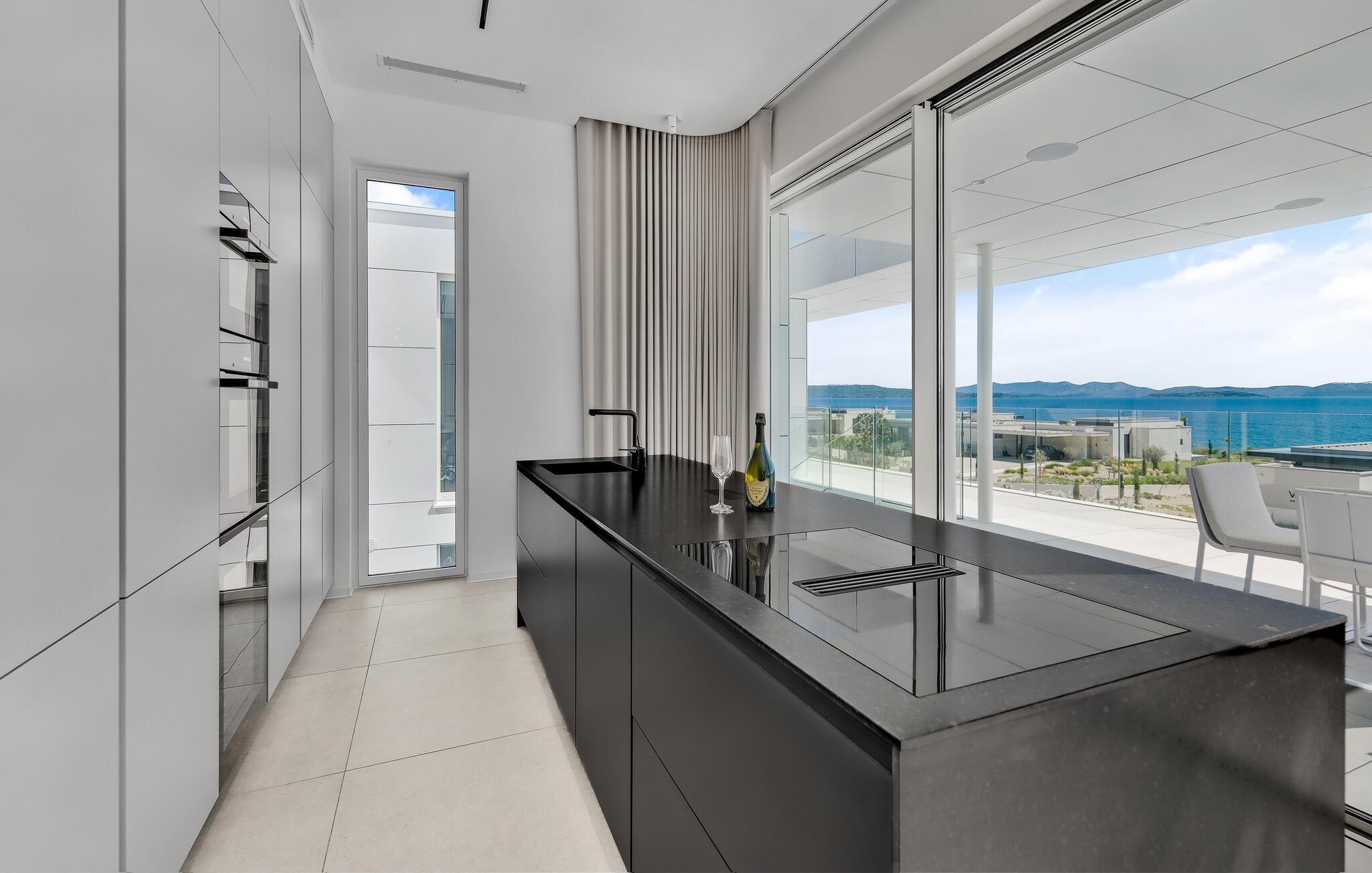 Dette hus er ikke kun noget særligt på grund af sin fantastiske beliggenhed ved stranden, men også med sit moderne interiørdesign. Diskrete farver og stilfulde møbler vil hurtigt sætte jer i ferietilstand. Nyd den vidunderlige havudsigt med en kølig drink, stream en god serie eller tilbered friske måltider i det veludstyrede køkken.