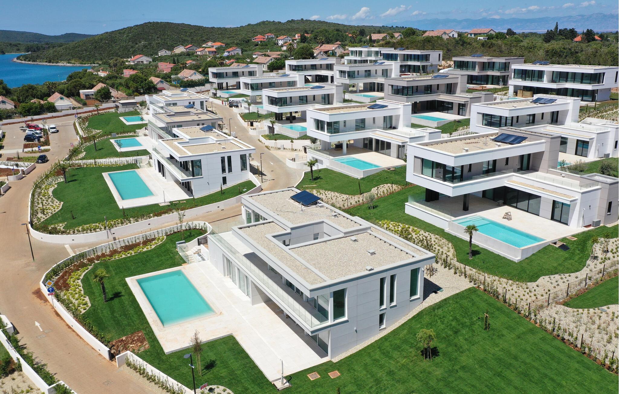 Dette feriehus ligger i et strandresort, der også har en restaurant, en legeplads, et udendørs fitnesscenter, paddletennis- og tennisbaner samt cykler til leje. På Ugljan kan I opdage de rolige kyststier, der fører jer gennem duftende fyrreskove og til små bugter med krystalklart vand. Svøm og snorkel ved afsidesliggende strande, hvor havet glitrer i bløde grønne nuancer. Bestig Sv. Mihovil-fæstningen og nyd panoramaudsigten over øerne.