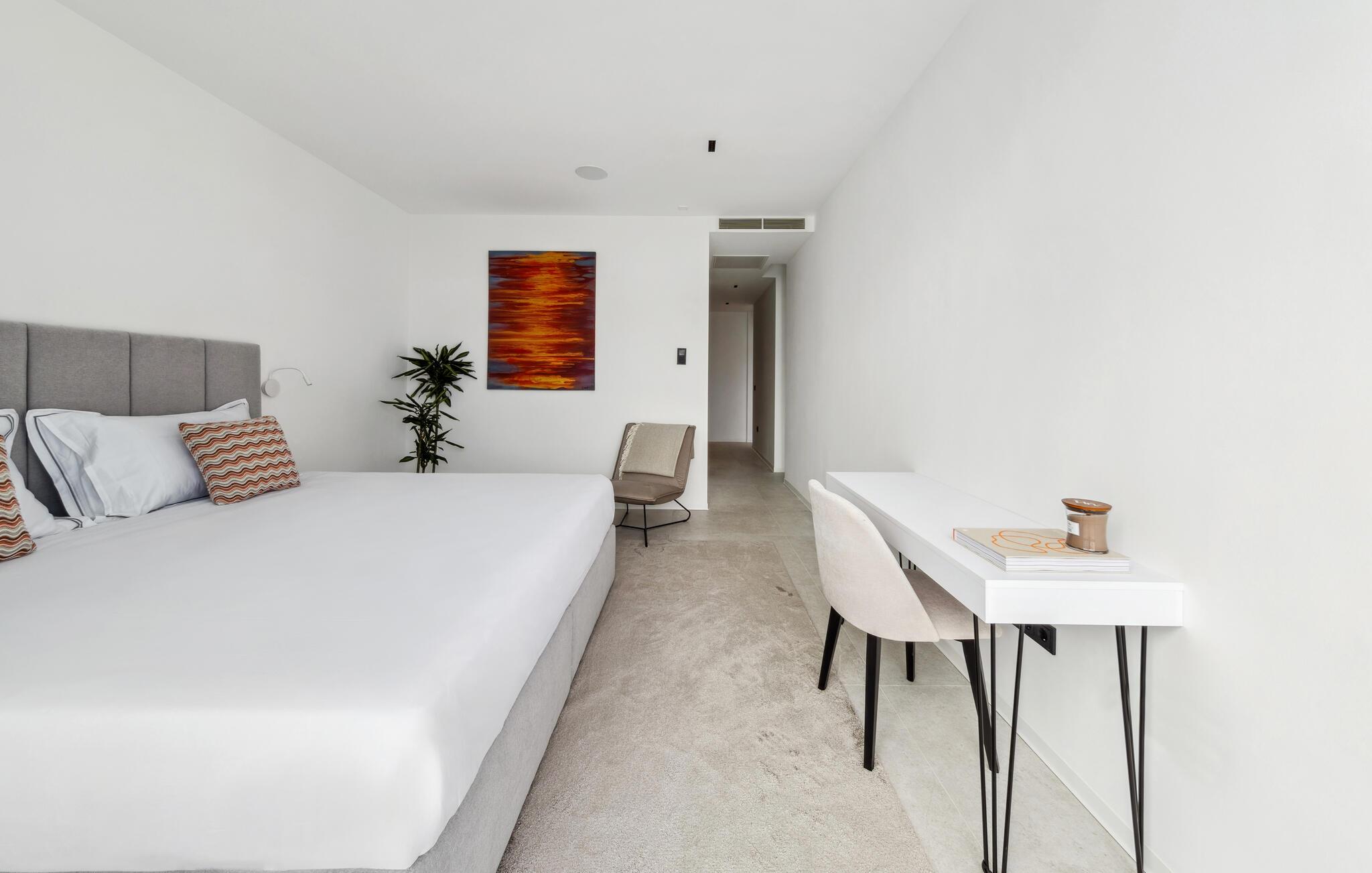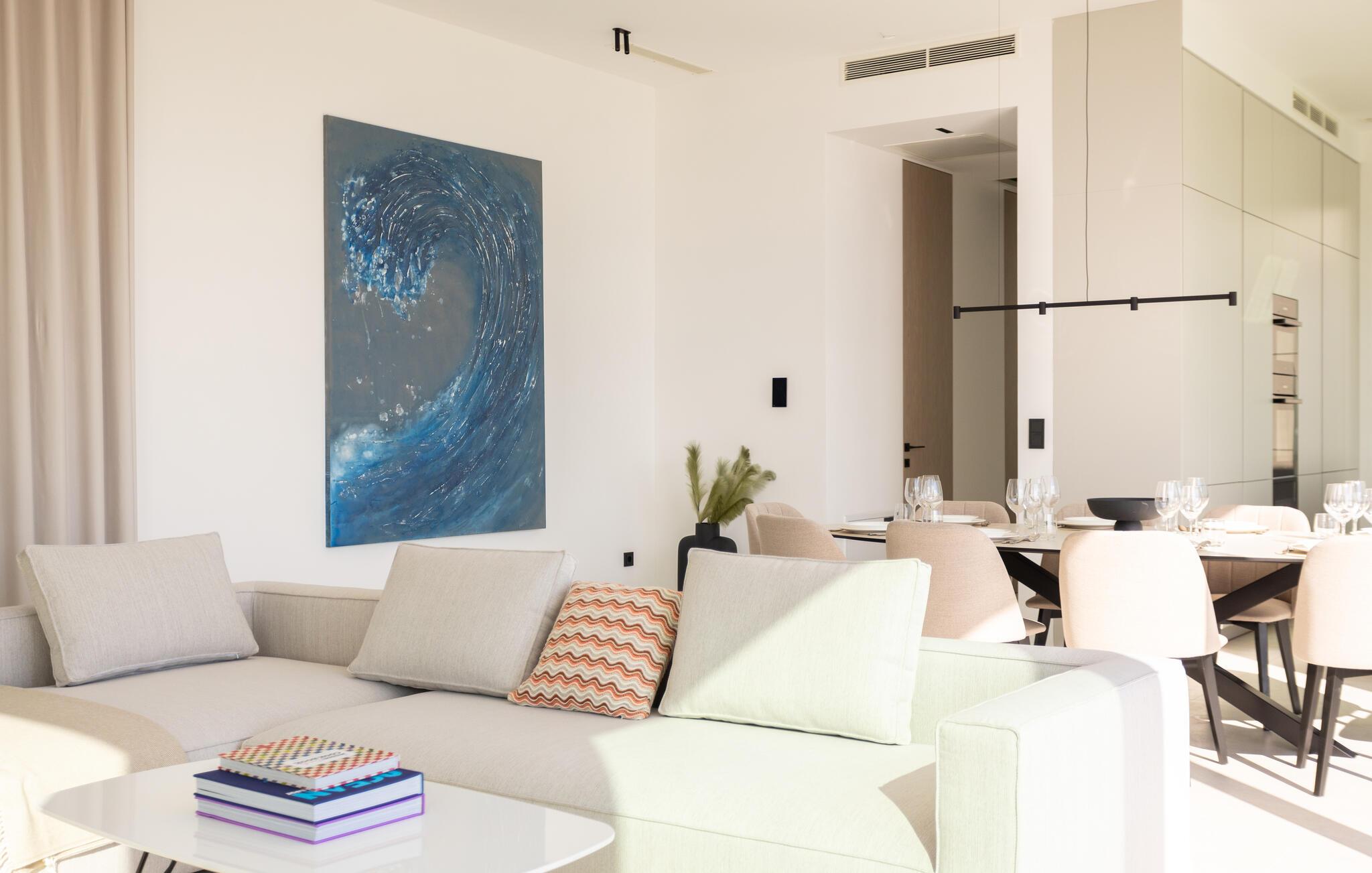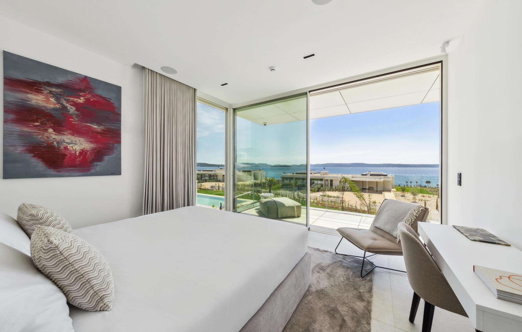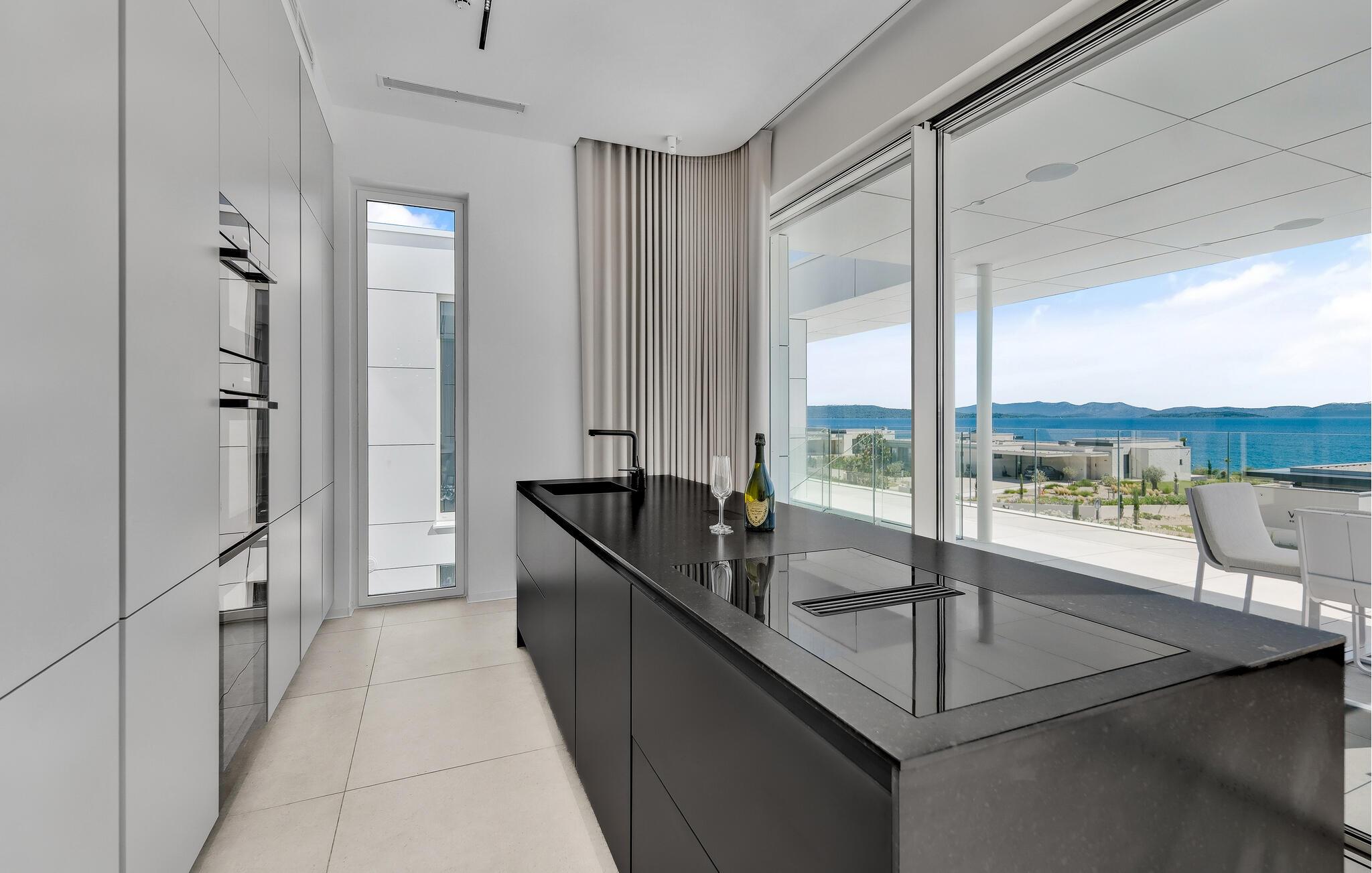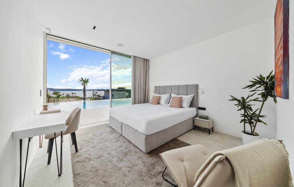Dette hus er ikke kun noget særligt på grund af sin fantastiske beliggenhed direkte ved havet, men også med sit moderne interiørdesign. Diskrete farver og stilfulde møbler vil hurtigt sætte jer i ferietilstand. Nyd den vidunderlige havudsigt med en kølig drink, stream en god serie eller tilbered friske måltider i det veludstyrede køkken.