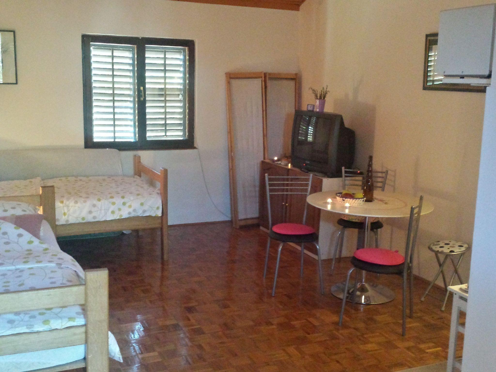 Studio bietet Platz für 2 Gäste. Die Betten sind in Schlafzimmern, die es 1 gibt, innerhalb einer Gesamtfläche von 20m2, angeordnet. Das Studio-Apartment bietet Meerblick. Es ist erlaubt, Speisen auf dem Gemeinschafts-Grill vorzubereiten. Die reservierte Unterkunftseinheit verfügt über einen gemeinsamen Balkon. IM PREIS INBEGRIFFEN: Kurtaxe, Endreinigung, Klimatisierung, Parkplatz, Internet, Bügeleisen, Föhn. VERBINDLICHE ZUSÄTZLICHE KOSTEN: Aufzahlung für Kurzaufenthalte (prozentualer Zuschlag pro Nächtigungsanzahl: 30% - 1, 20% - 2, 10% - 3). UNVERBINDLICHE ZUSÄTZLICHE KOSTEN: Wäschewaschen (10,00 € Waschen). Die Verfügbarkeit zusätzlicher Dienstleistungen in Ihrem reservierten Termin und die Preise derselben (falls nicht aufgeführt) müssen im Voraus überprüft werden. Zusätzliche Dienstleistungen die in der Zahlungsaufforderung nicht aufgeführt sind werden direkt beim Vermieter bezahlt, angenommen der Gast nutzt auch diese. Ermäßigung auf den Grundpreis: Gratistag 14=13 (bei einem Aufenthalt von 14 Tagen oder mehr erhalten Sie einen Gratistag für den Aufenthalt bis 31.12.26).