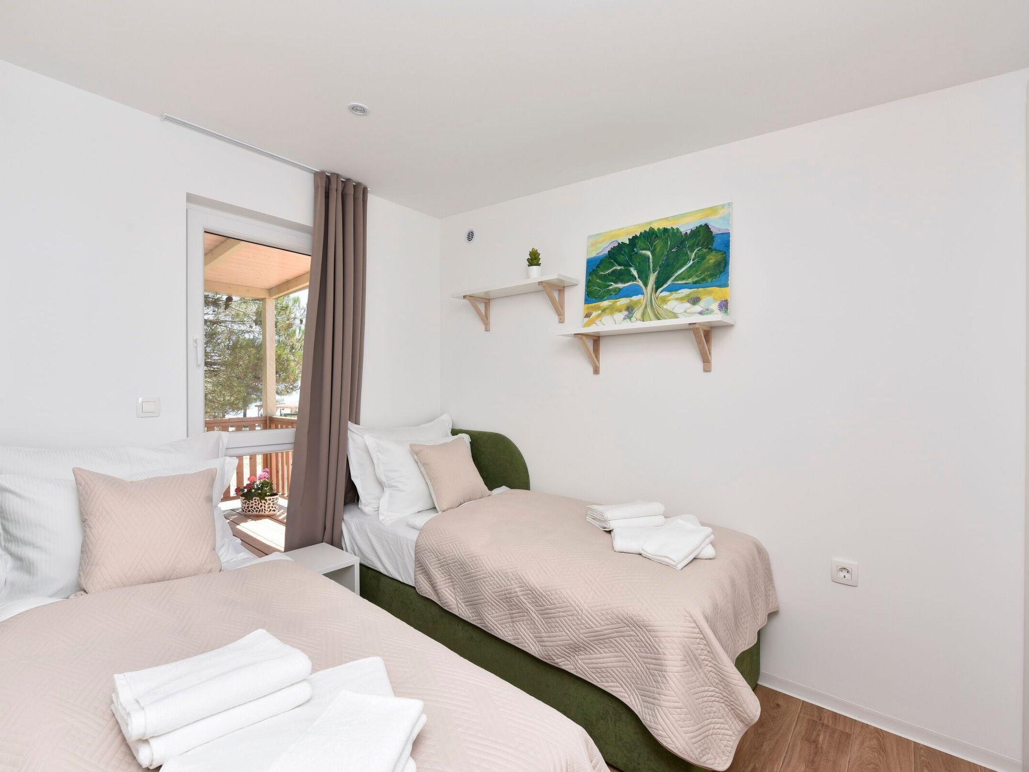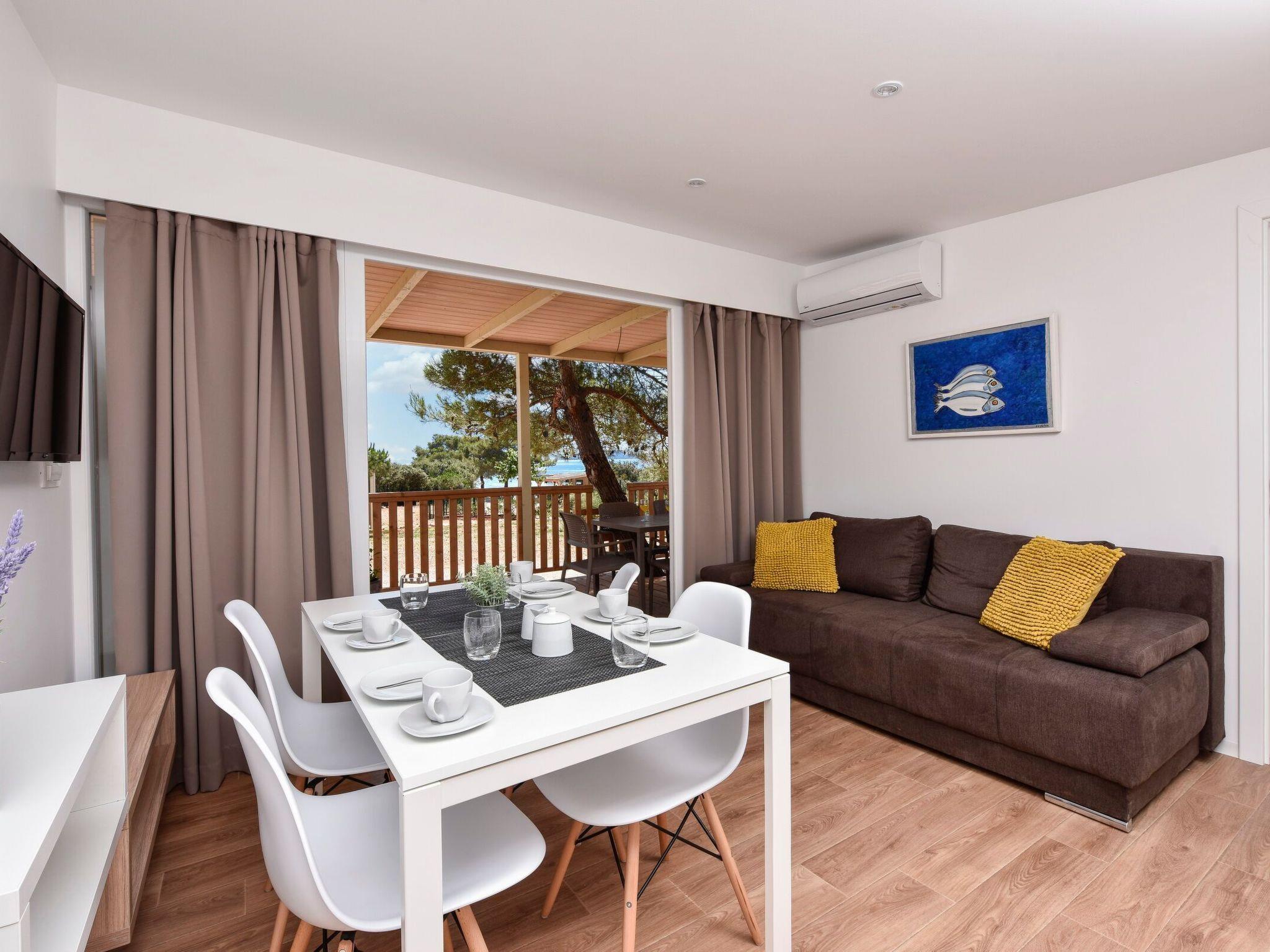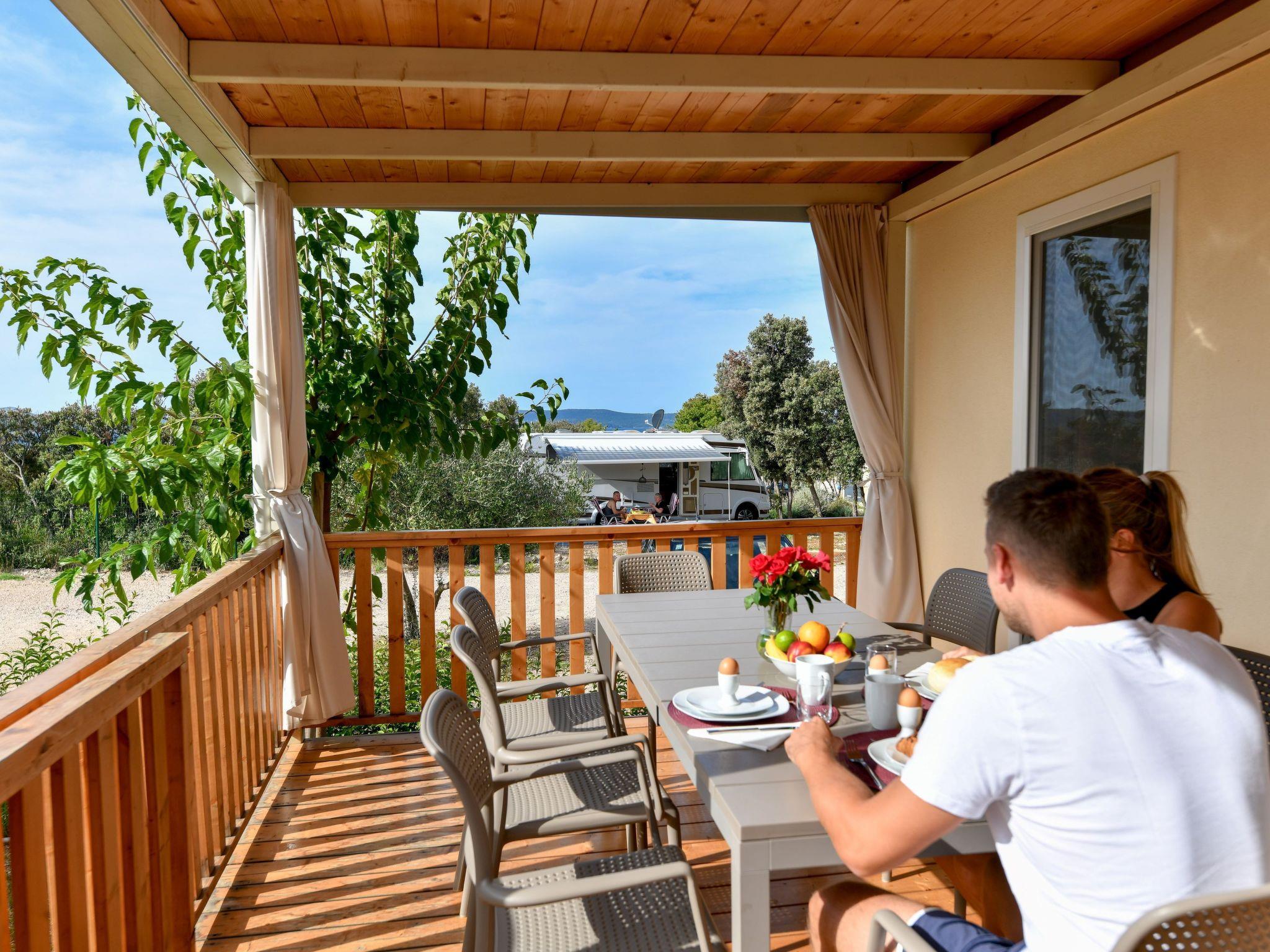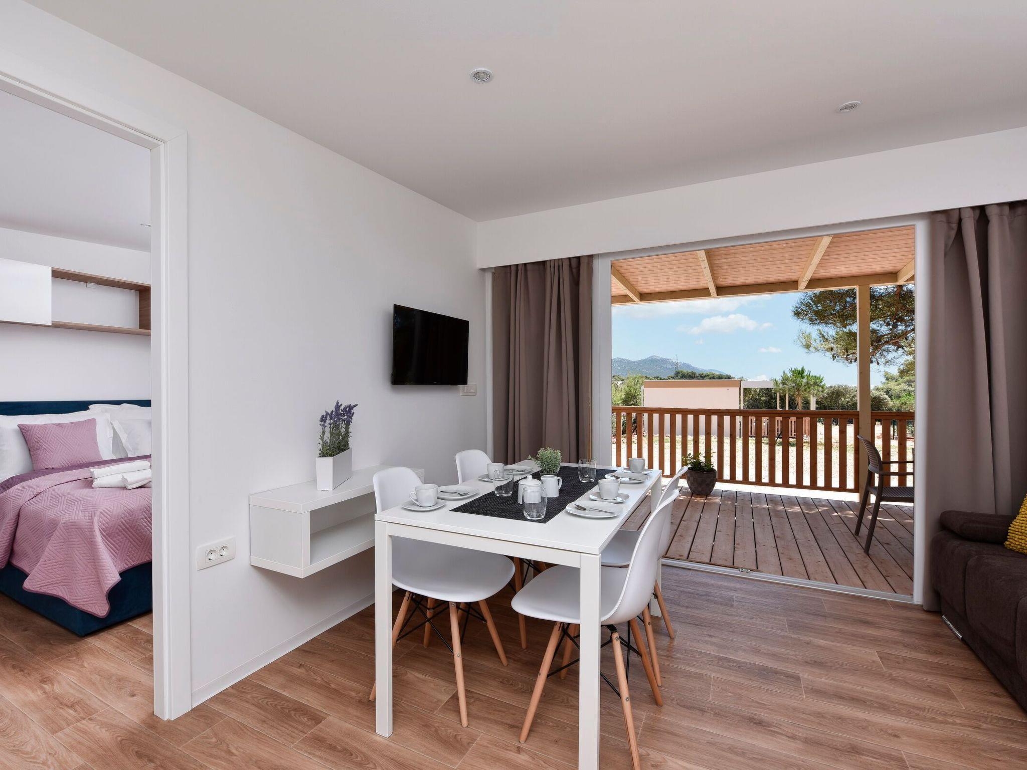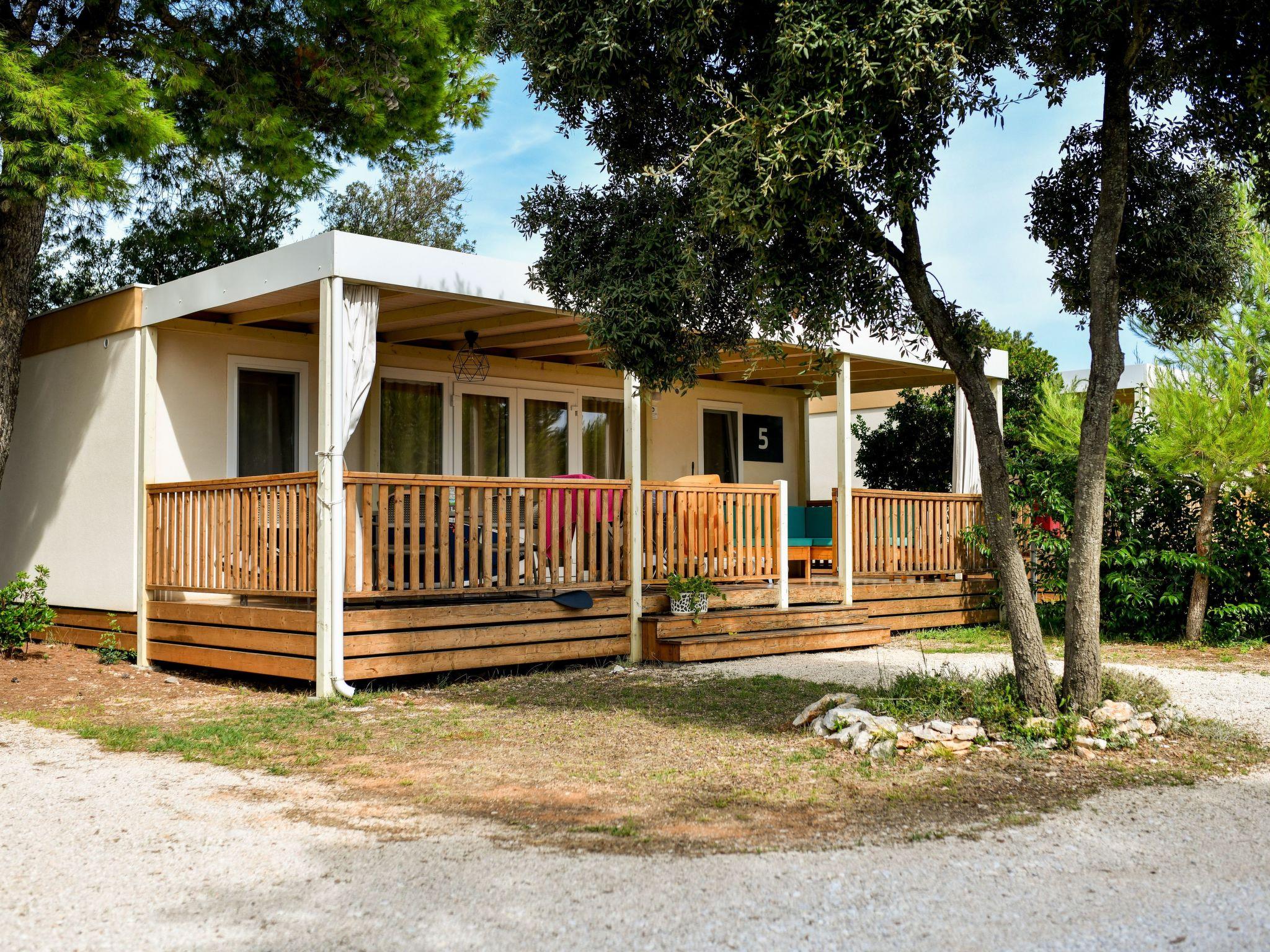 Mobile homes are situated in 4* Camping Ugljan Resort in quite area on sooth west part of Island Ugljan. Mobile homes are situated 10-80 m from the heated outdoor pool and 10-110 m from the beach. Each mobile home has 40 m2 with additional 30 m2 covered terrace and they have 2 bedrooms (one with king-size bed and one with 2 single beds) and 2 bathrooms plus sofa in the leaving room- total 4 + 2 beds.